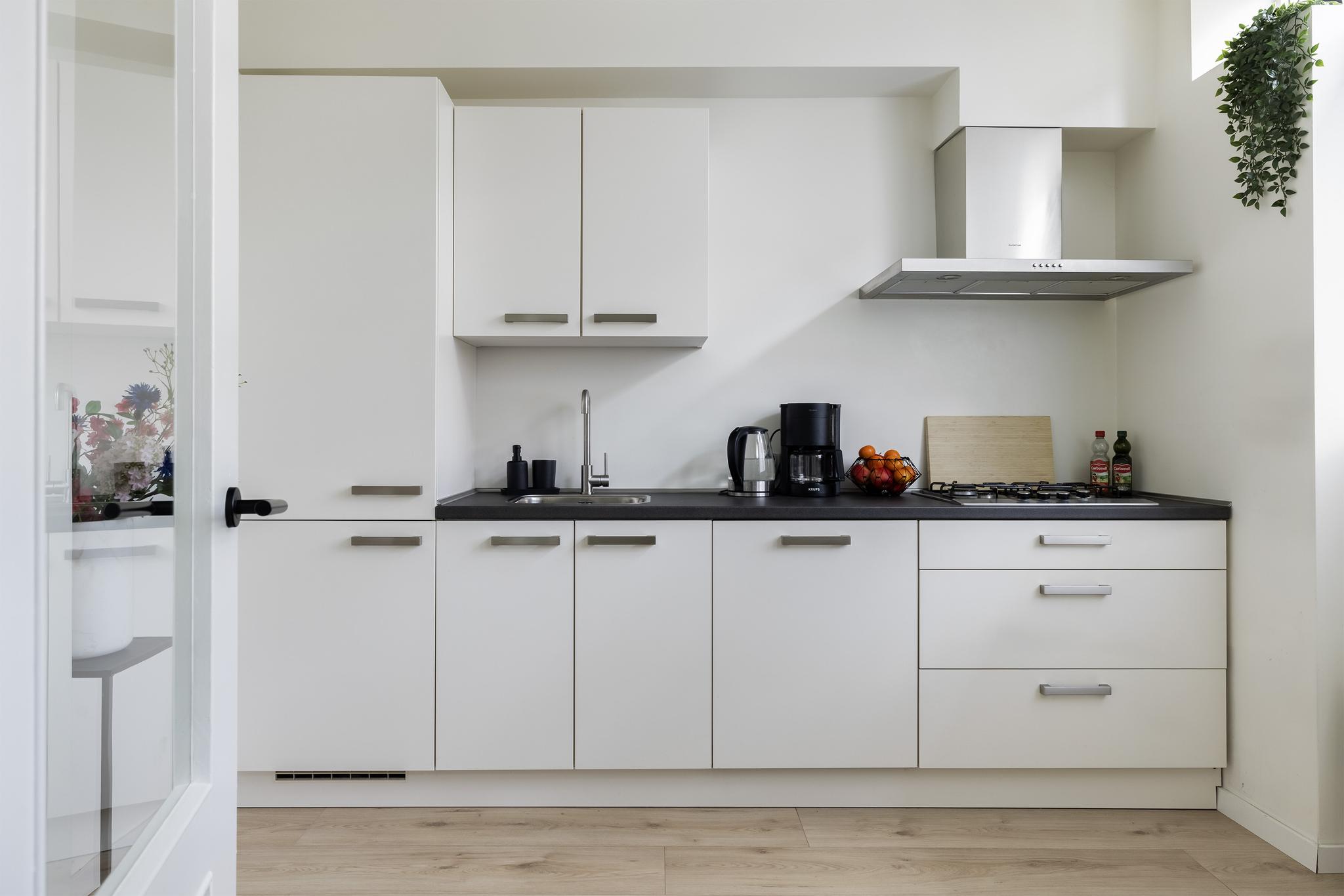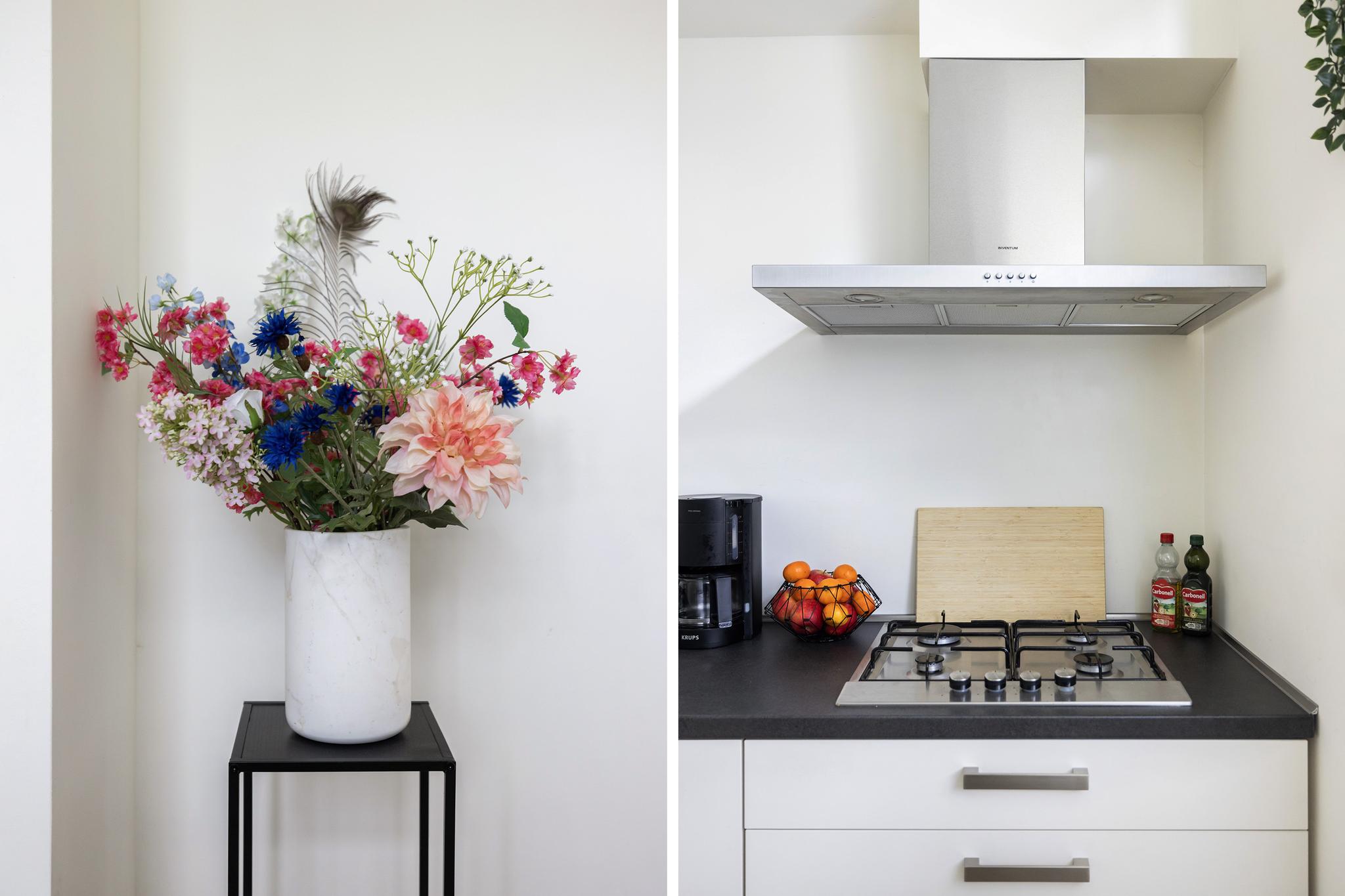 Binnen is het helemaal af: een moderne strakke badkamer om jaloers op te worden, een keurig nette keuken waarin je zo aan de slag kunt, én een slaapkamer waar de kasten gewoon achterblijven. Da’s toch ideaal voor je sneakercollectie, je jurken, of gewoon allebei?