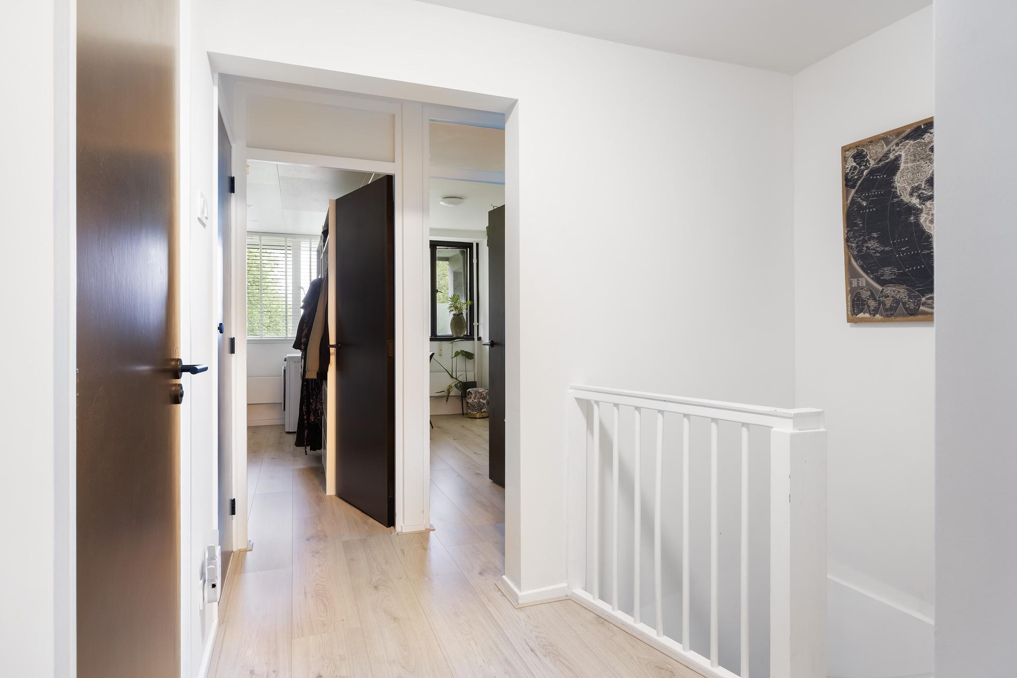 Overloop met toegang tot alle vertrekken. Ook hier valt weer op dat echt ALLES strak is, mooi stucwerk, nette laminaat vloeren, frisse badkamer, je kunt zien dat dit pas een paar jaar geleden nieuw geplaatst is.