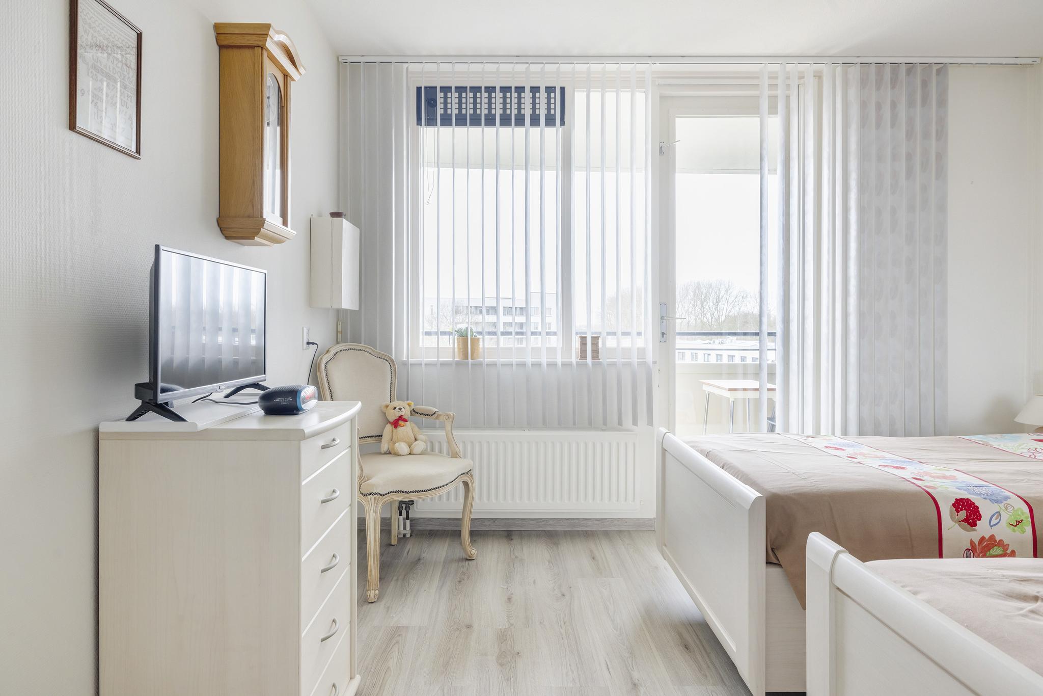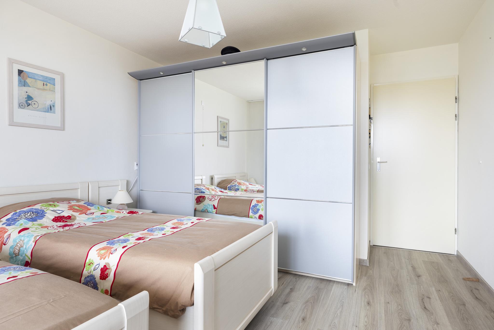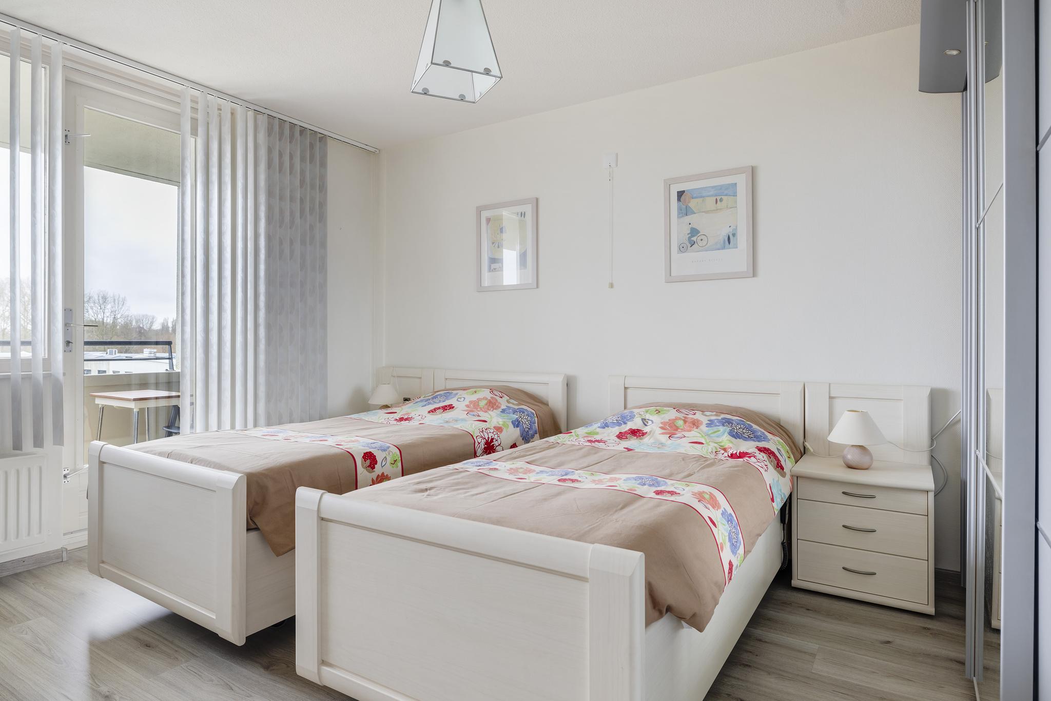 Slaapkamer 1, gelegen aan het balkon, met deur naar het balkon.