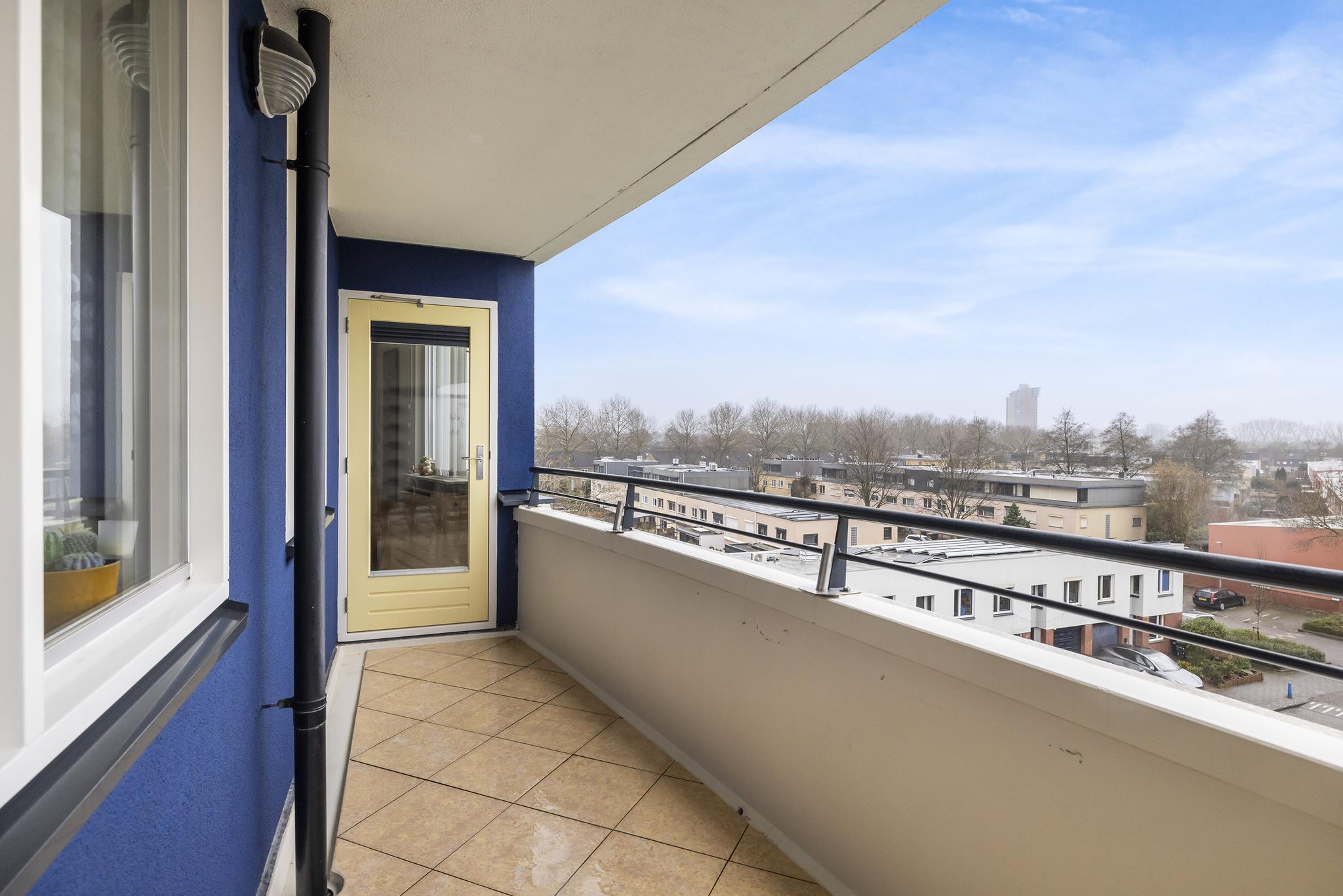 Het balkon heeft 's middags de zon, je kijkt ruim uit over de straat en zelfs over het Wantij!