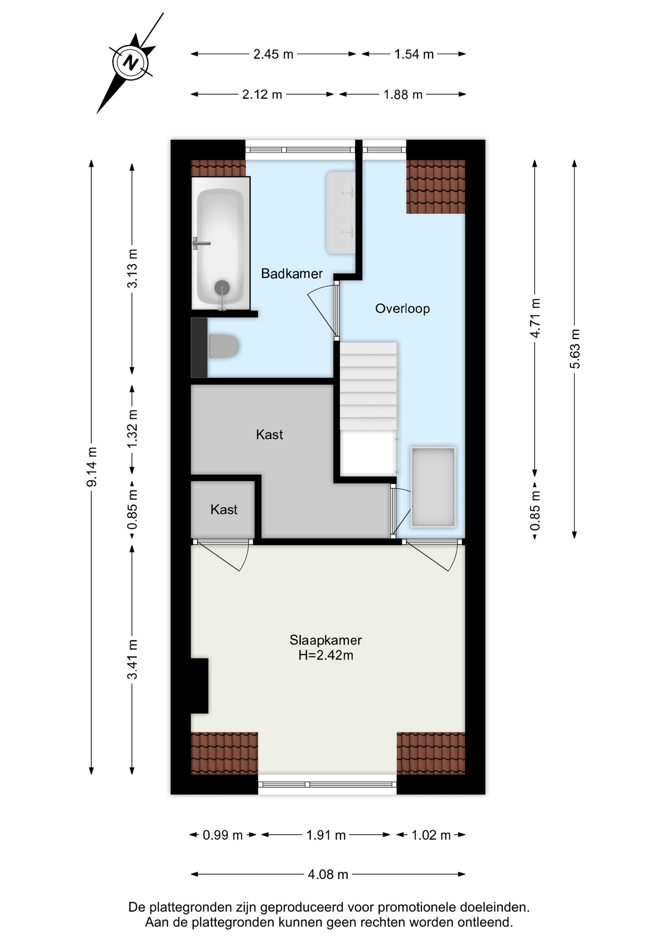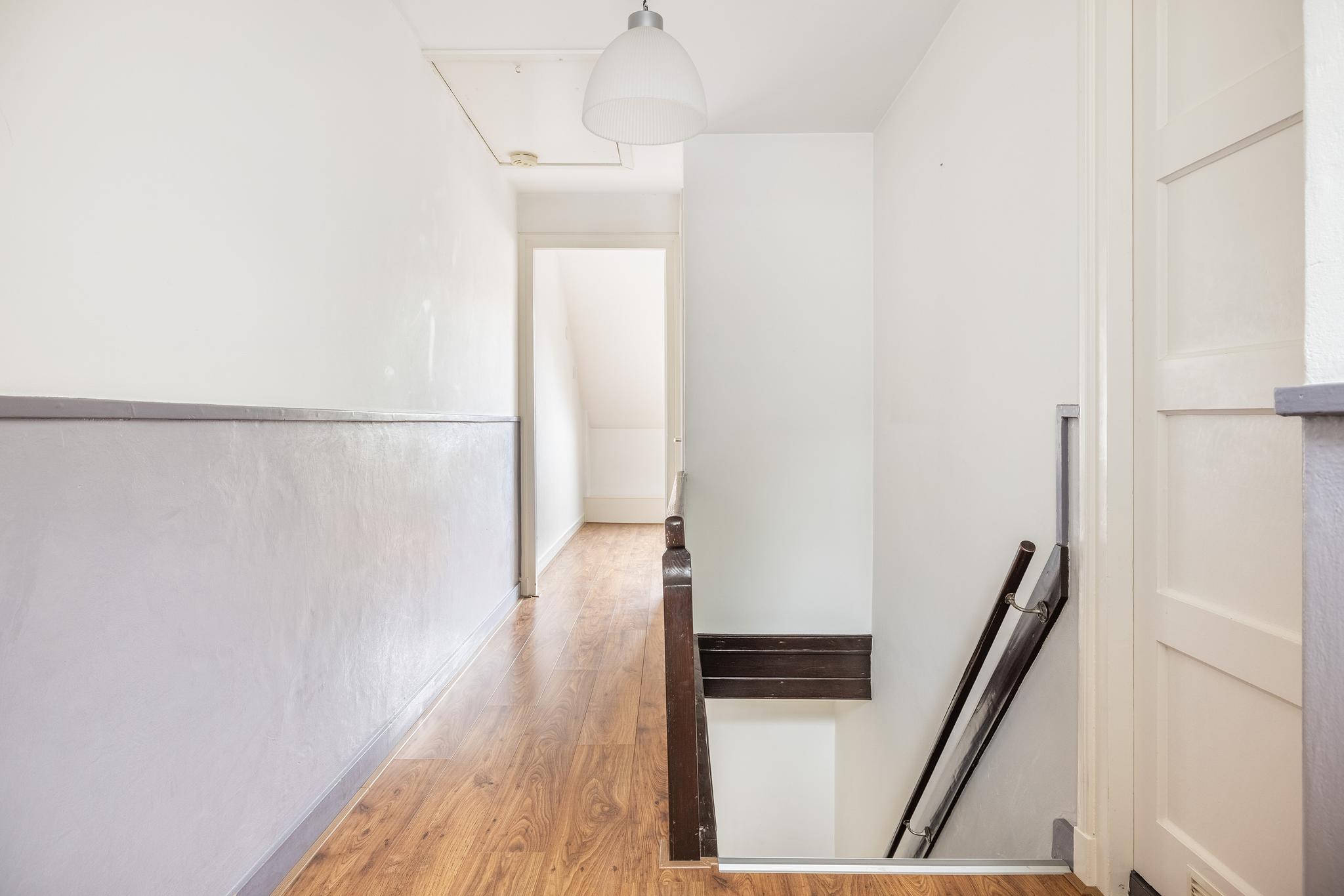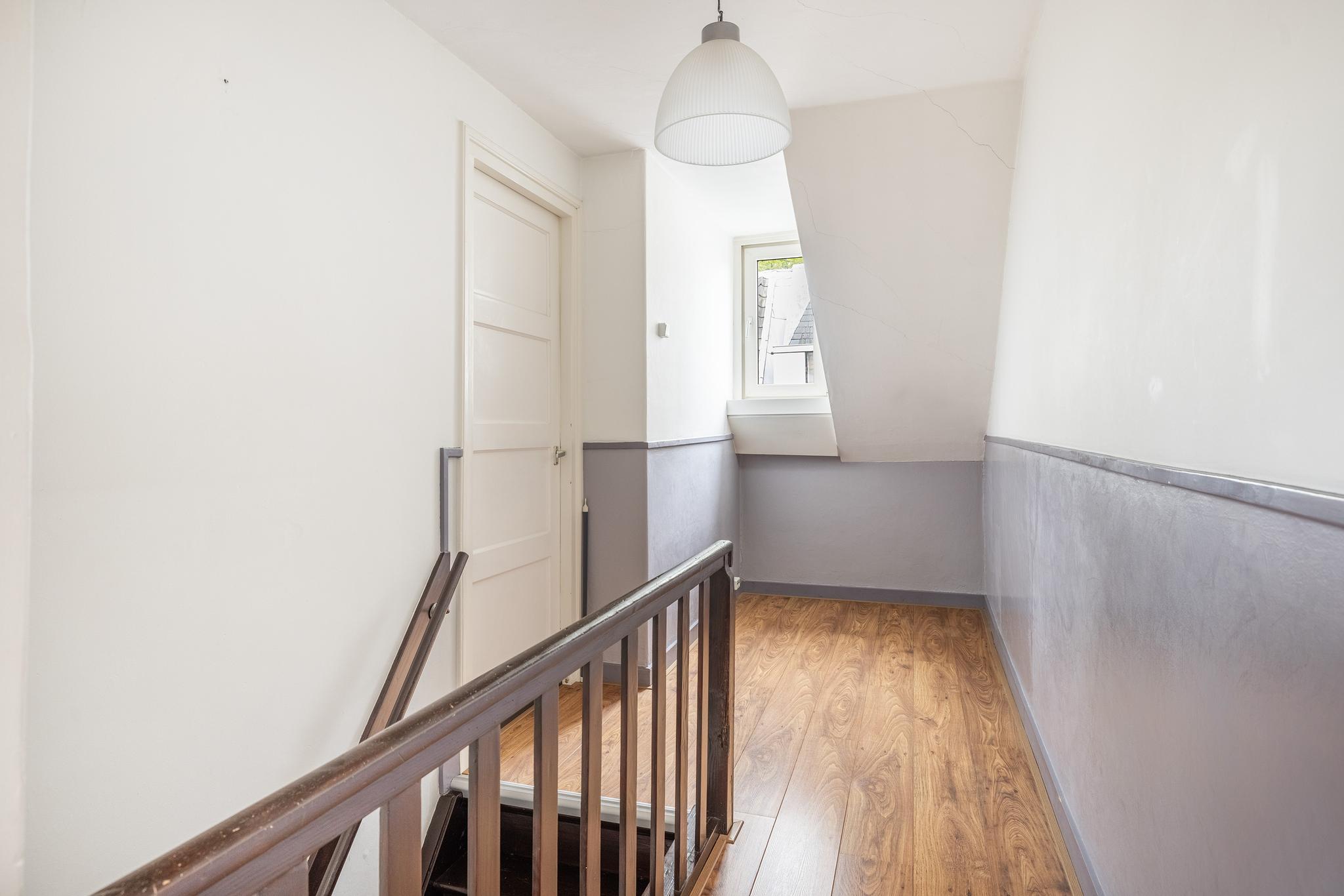 Vanuit de hal op de begane grond is tevens de verdieping bereikbaar. Vanaf de overloop heb je toegang tot de slaapkamer, inloopkast, badkamer en vlizotrap naar de zolder.