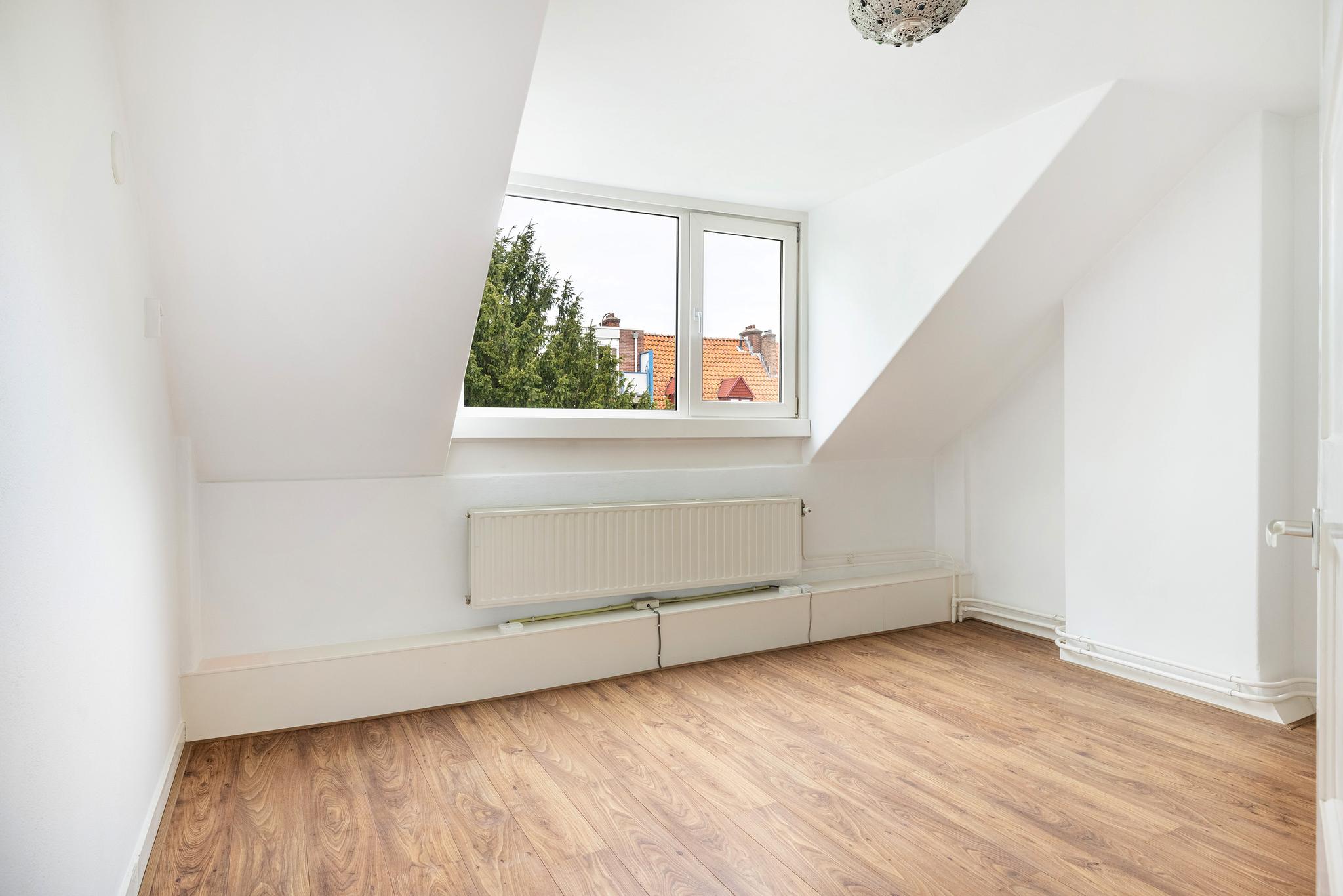 De royale slaapkamer is gelegen aan achterzijde en beschikt over een dakkapel met kunststof kozijnen, vaste kast en een laminaatvloer.