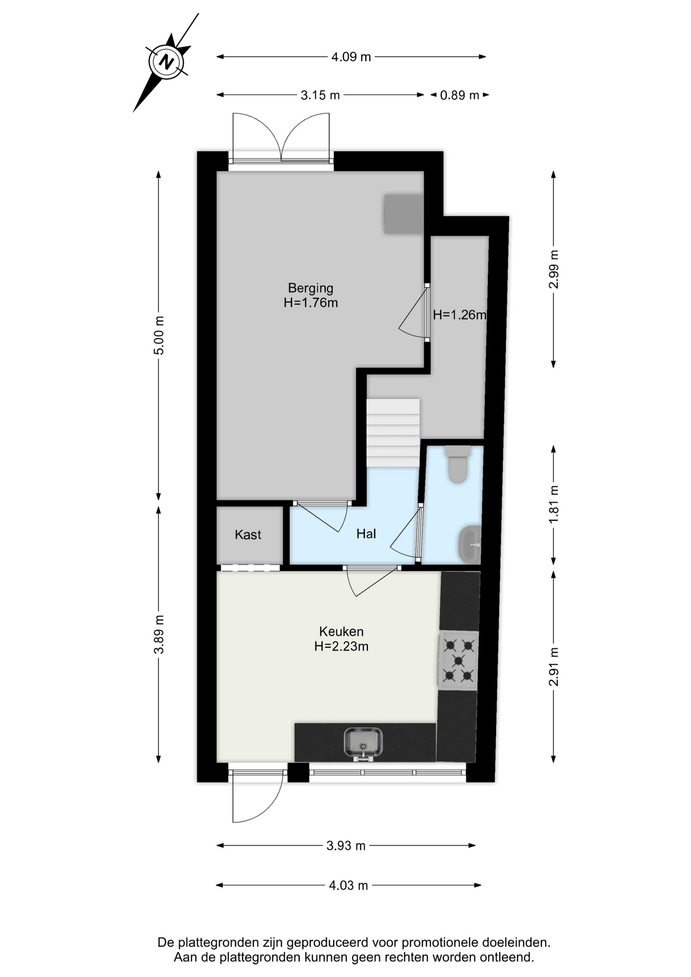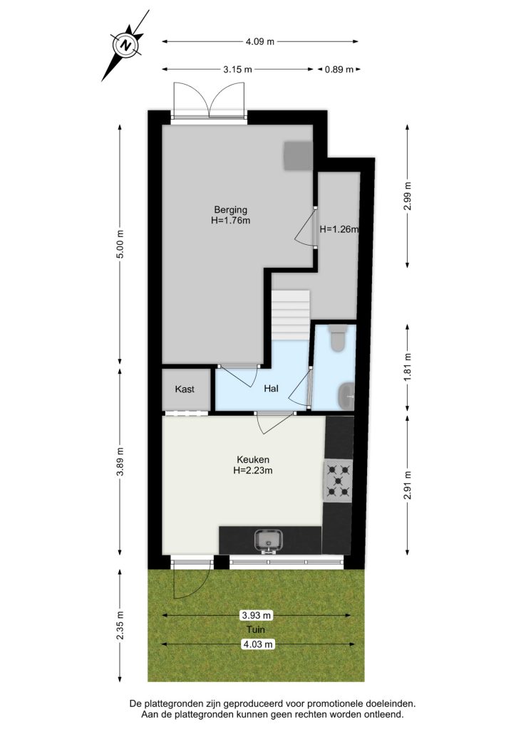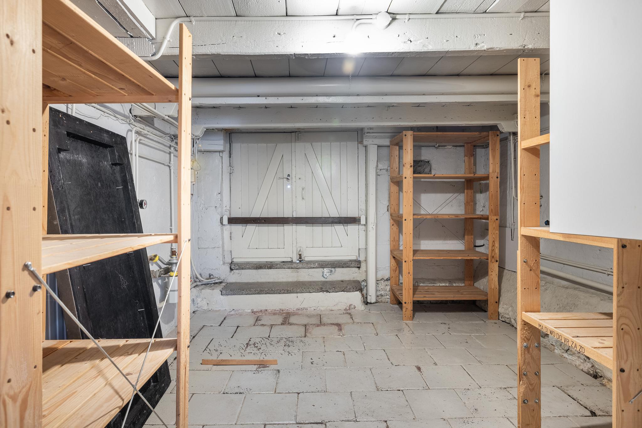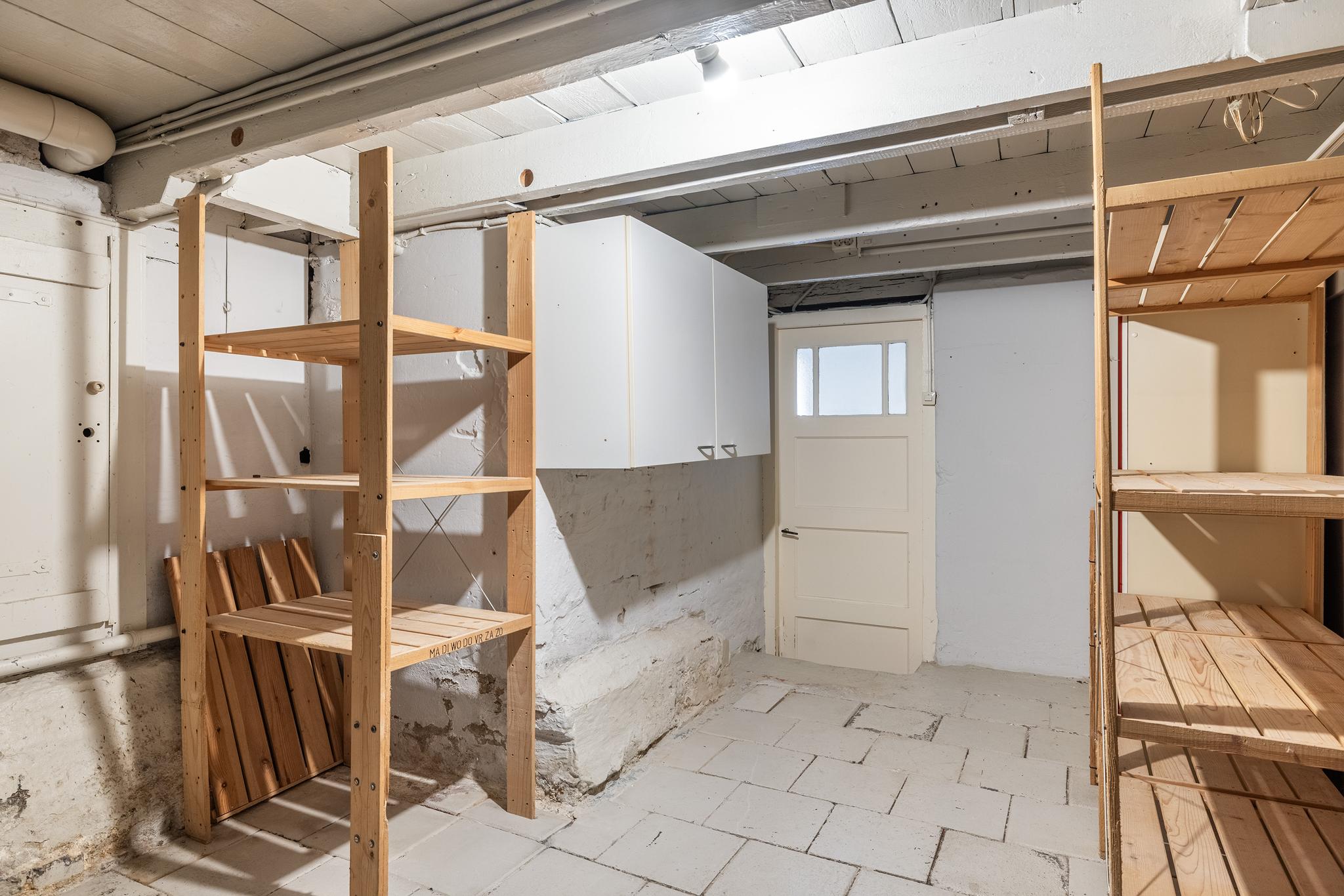 In het souterrain vinden we tevens een fijne inpandige berging, gelegen aan de voorzijde. Deze berging is eveneens toegankelijk vanaf de straat middels dubbele deuren. Ideaal om hier bijvoorbeeld je fiets te stallen, maar ook voor de wasmachine, droger en voorraden biedt het voldoende ruimte.