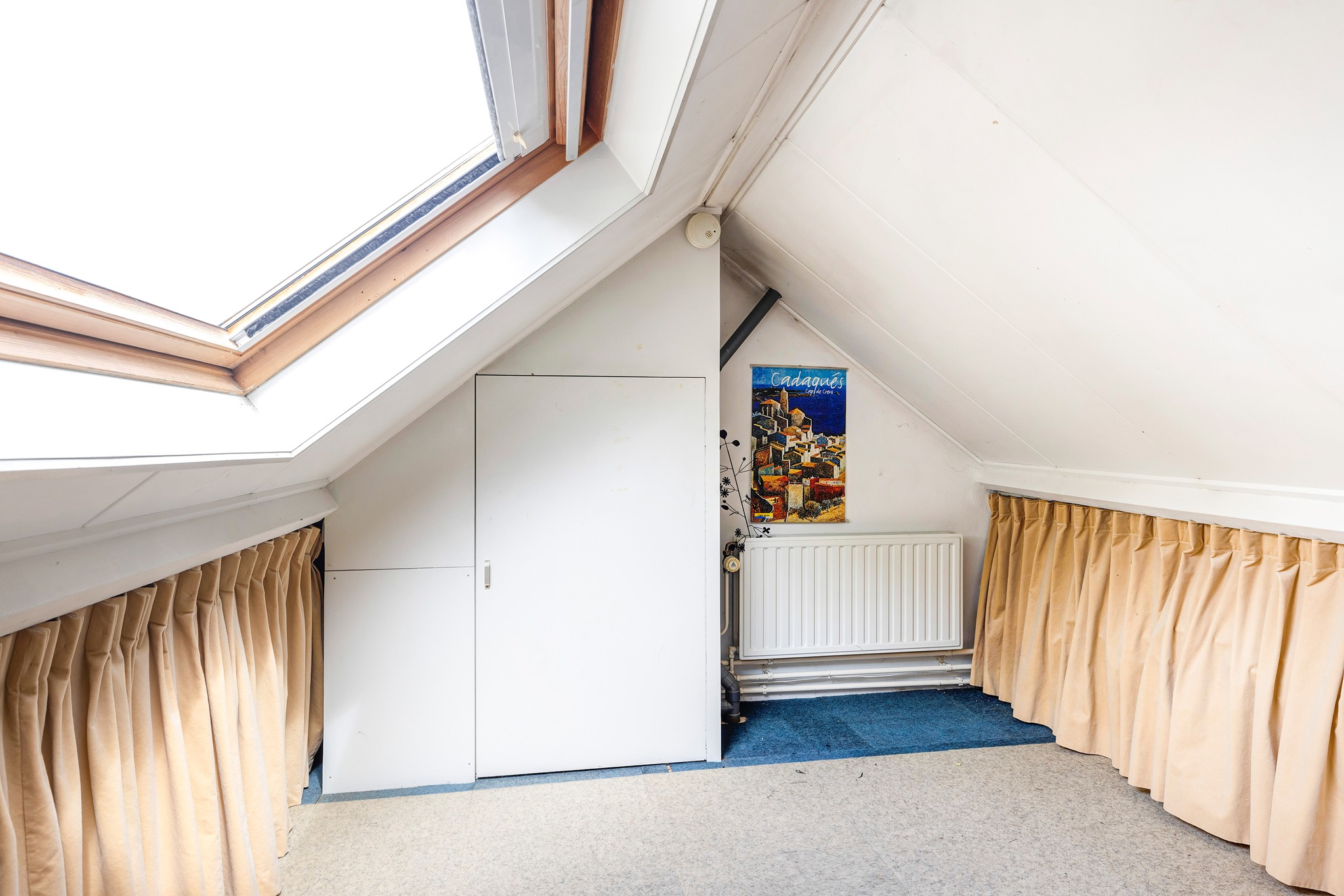 Via een vlizotrap is de zolder bereikbaar. Een goede bergruimte met opstelplaats CV-ketel (Remeha, 2012). Verder is de zolder voorzien van verwarming en een Veluxraam, waardoor het eventueel ook als logeerruimte gebruikt kan worden.