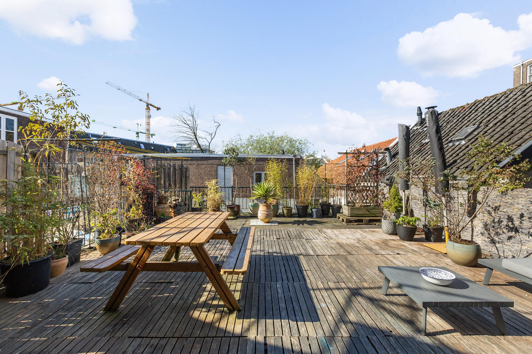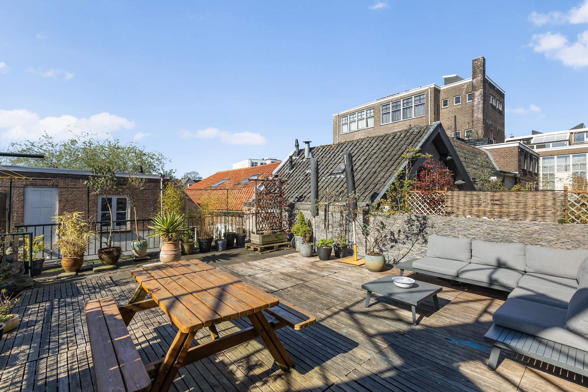 Het dakterras is echt uniek te noemen: groot, zonnig en heerlijk beschut, dit is een echt een oase van rust zo midden in de binnenstad.