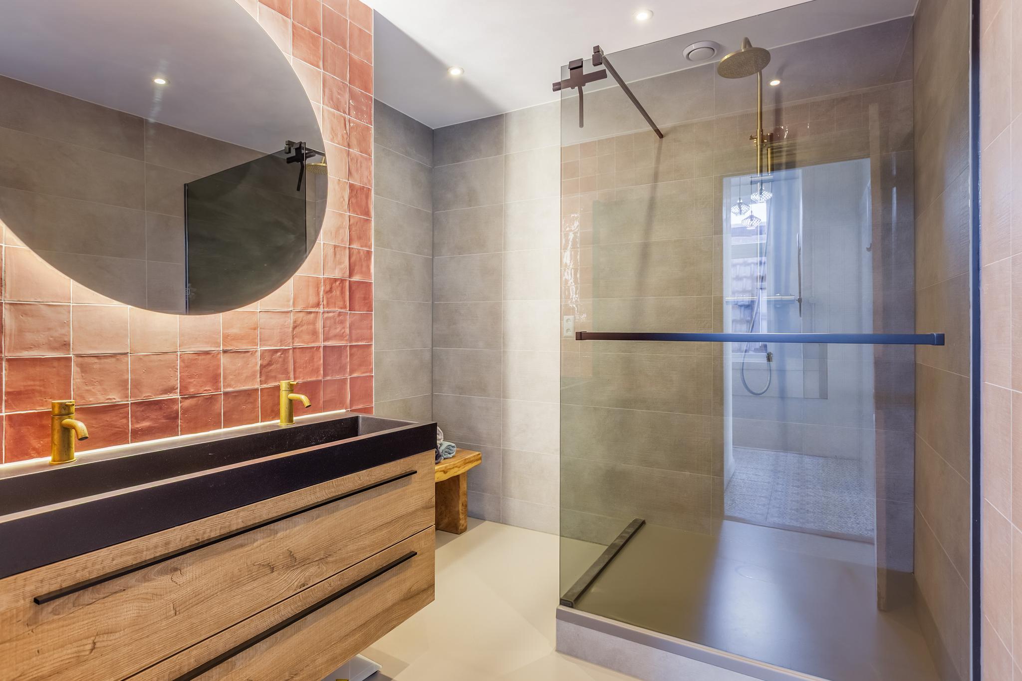 De badkamer is ca. 3 jaar gelegen geplaatst en voorzien van een wastafel en meubel, design radiator, inloopdouche, thermostaatkraan, verlaag plafond en spots, mechanische ventilatie.