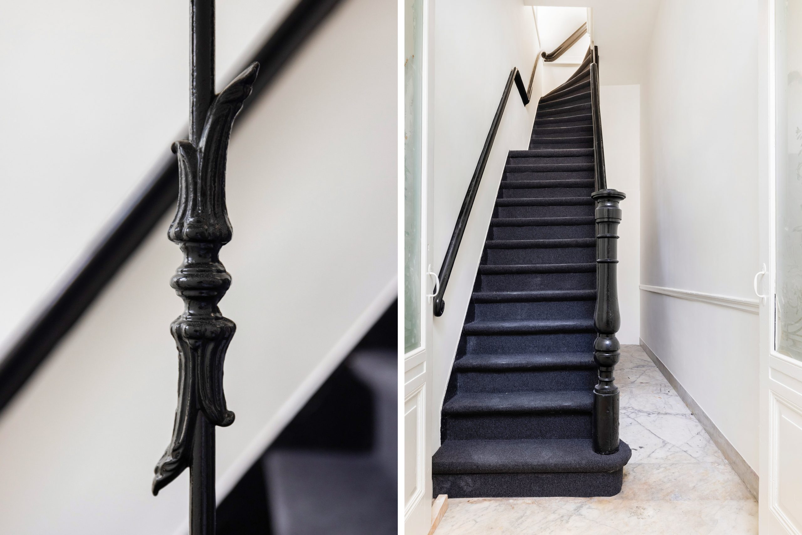 Op de eerste verdieping ligt de woonkamer in twee delen, gescheiden door een voormalige en-suite. Wil je liever één lange living? Die is eenvoudig weer te openen. Aan zowel voor- als achterzijde pronken authentieke marmeren schouwen.