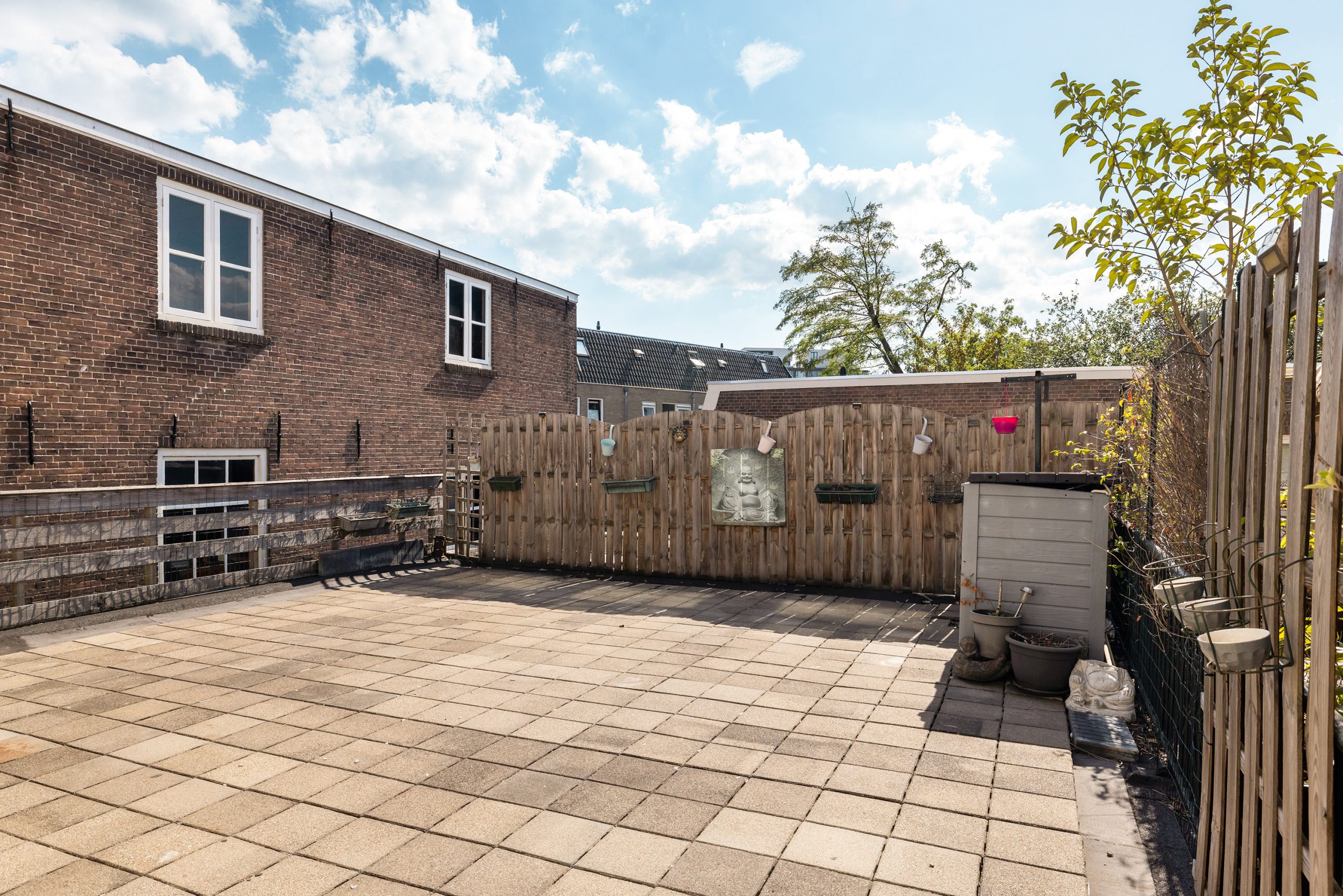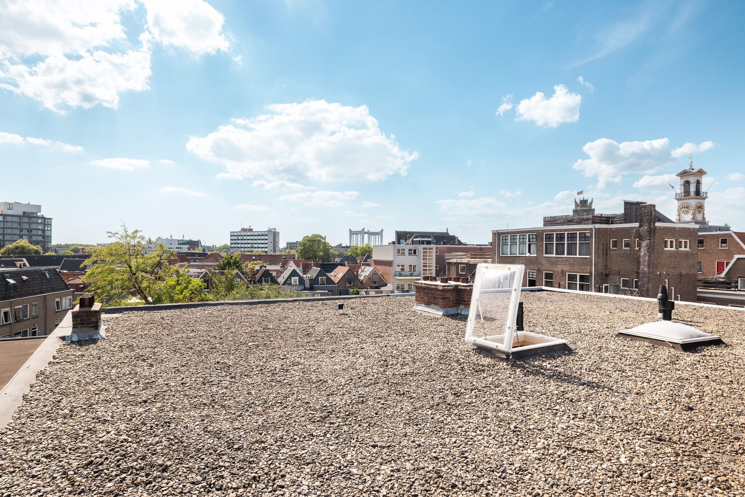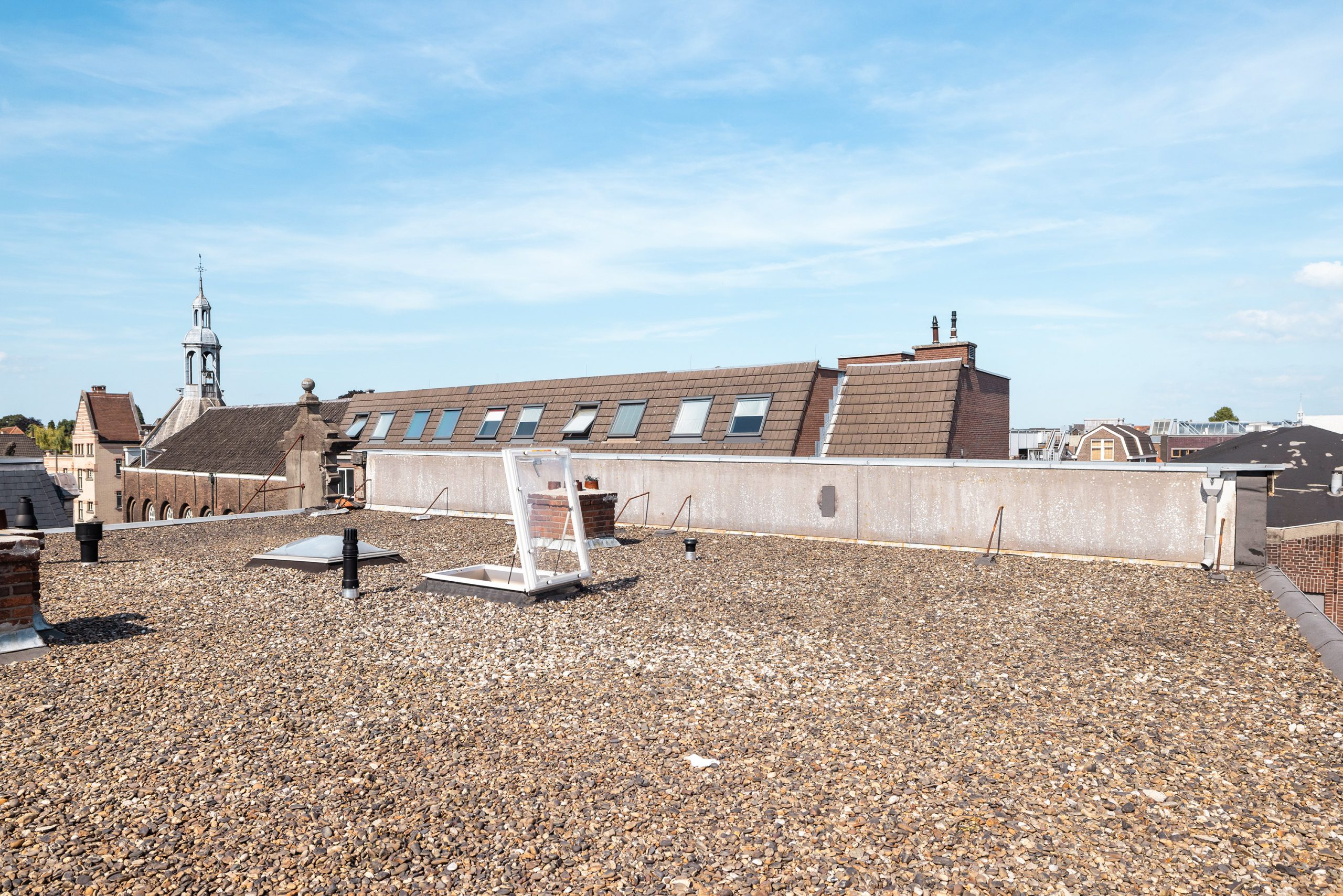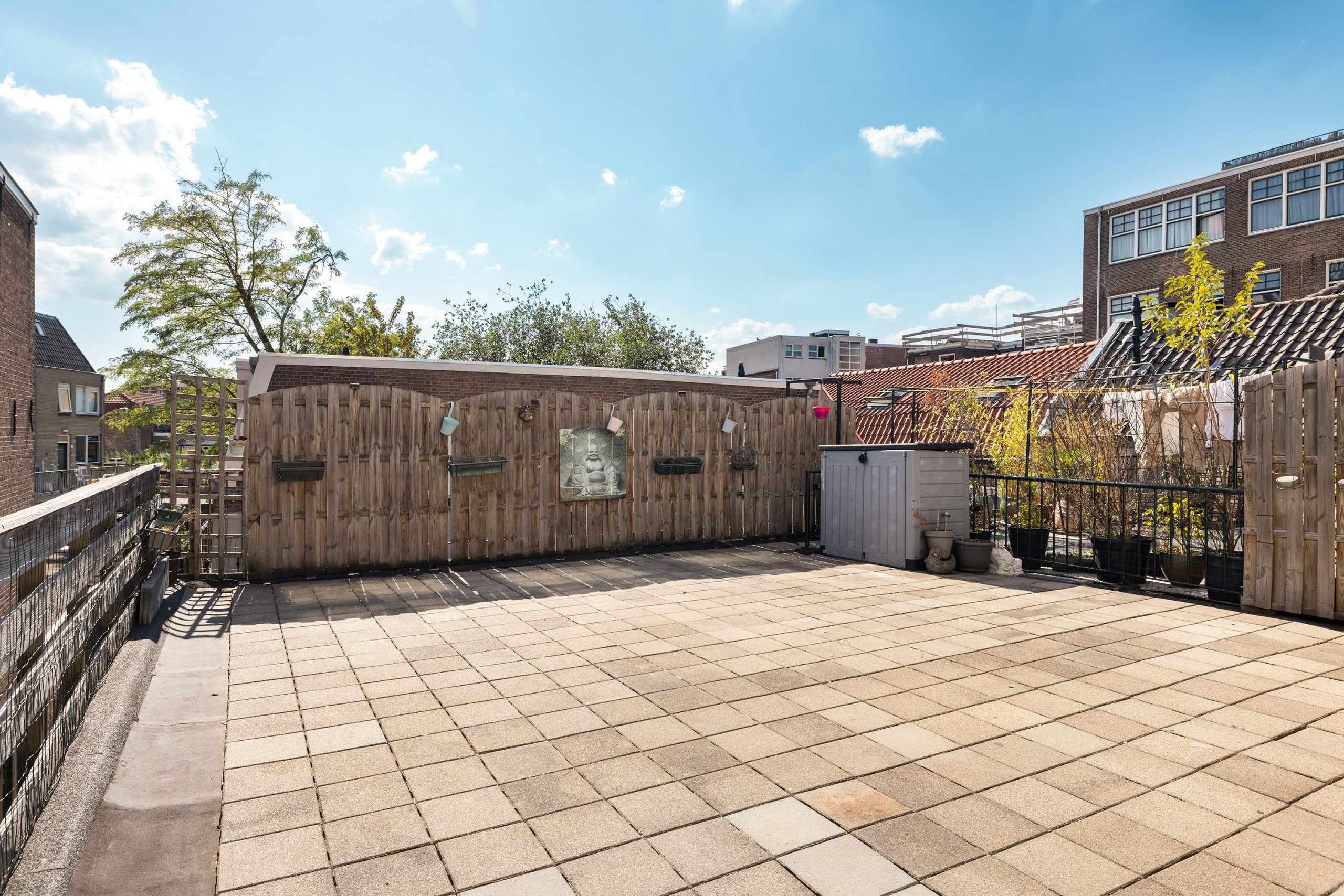Het dak is nu niet in gebruik maar biedt zeker nog mogelijkheden! Zonnepanelen plaatsen en een dakterras bijvoorbeeld? Uiteraard zijn er vergunningen nodig maar dan heb je ook wat!