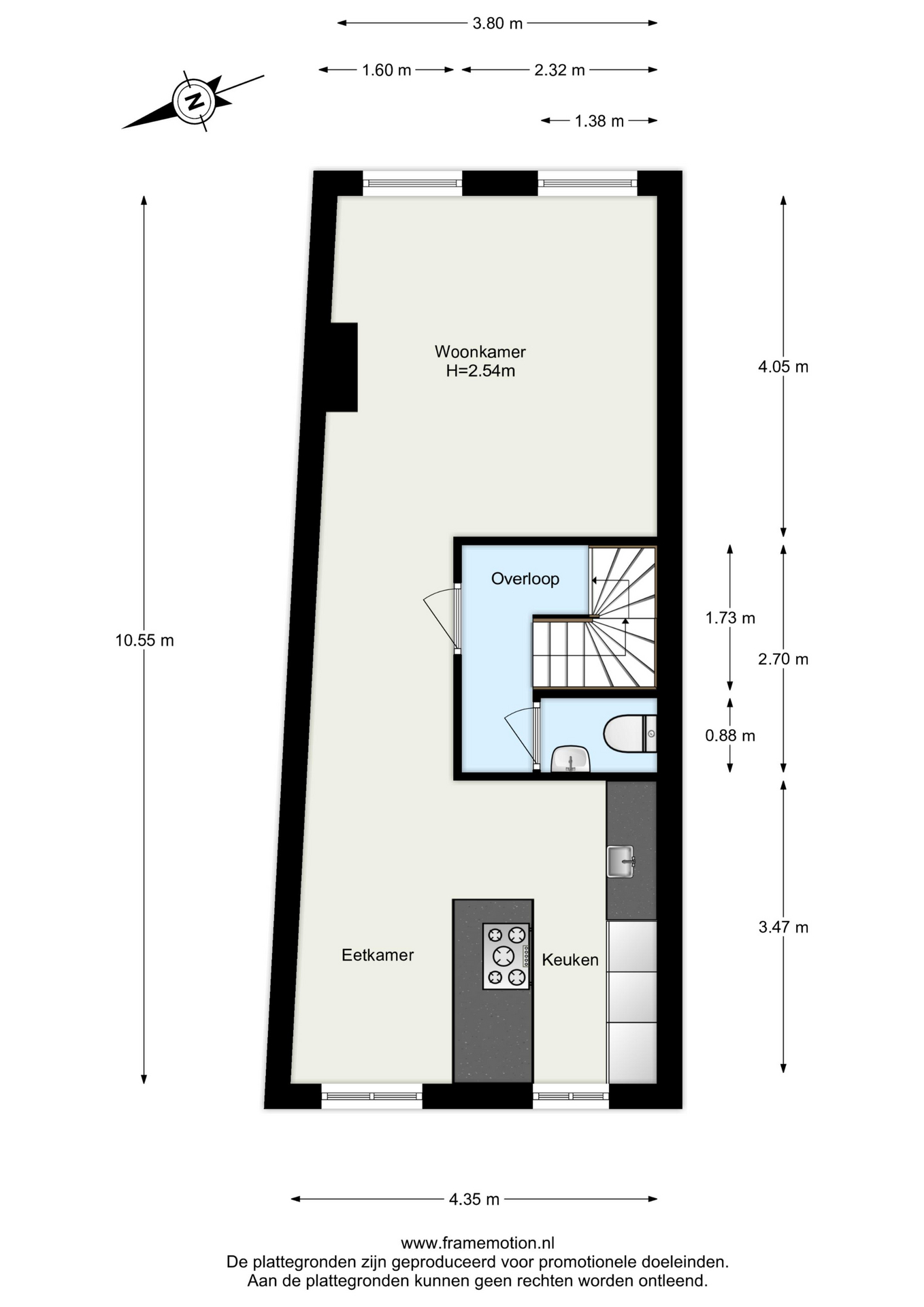 De 2e verdieping van dit appartement is een heerlijke leefruimte met een gezellige woonkamer aan voorzijde en een ruime leefkeuken aan de achterzijde.
