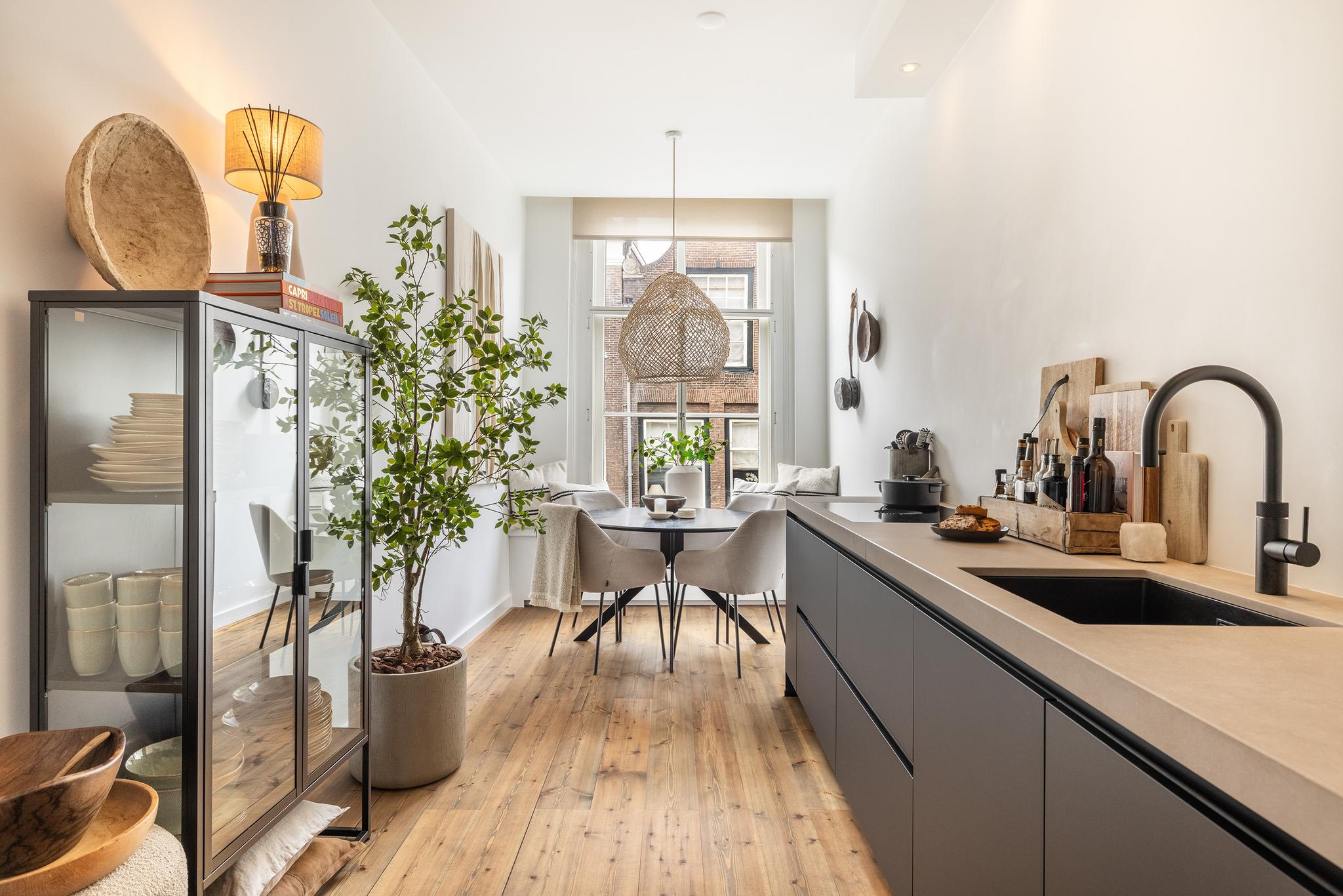 Deze droomkeuken biedt ruimte aan een eettafel waar vandaan je perfect de straat in kijkt en geloof ons, er is echt altijd wat te beleven! Een heerlijke plek ook om in het raamkozijn te genieten met de ramen open, heerlijk in de middag zon.