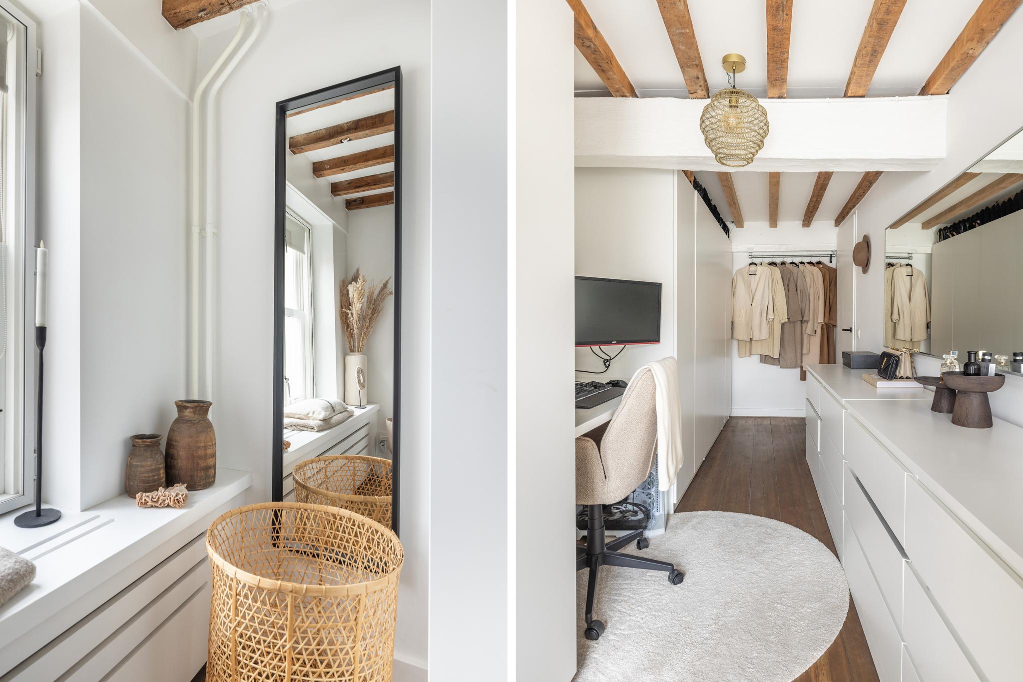 Slaapkamer 2, nu ingericht als kastenkamer met vast bureau (alle kasten en het bureau zijn ter overname, nieuw geplaatst tussen december 2024 en januari 2025) een heerlijke kamer om vol te hangen met je mooiste kledingstukken.