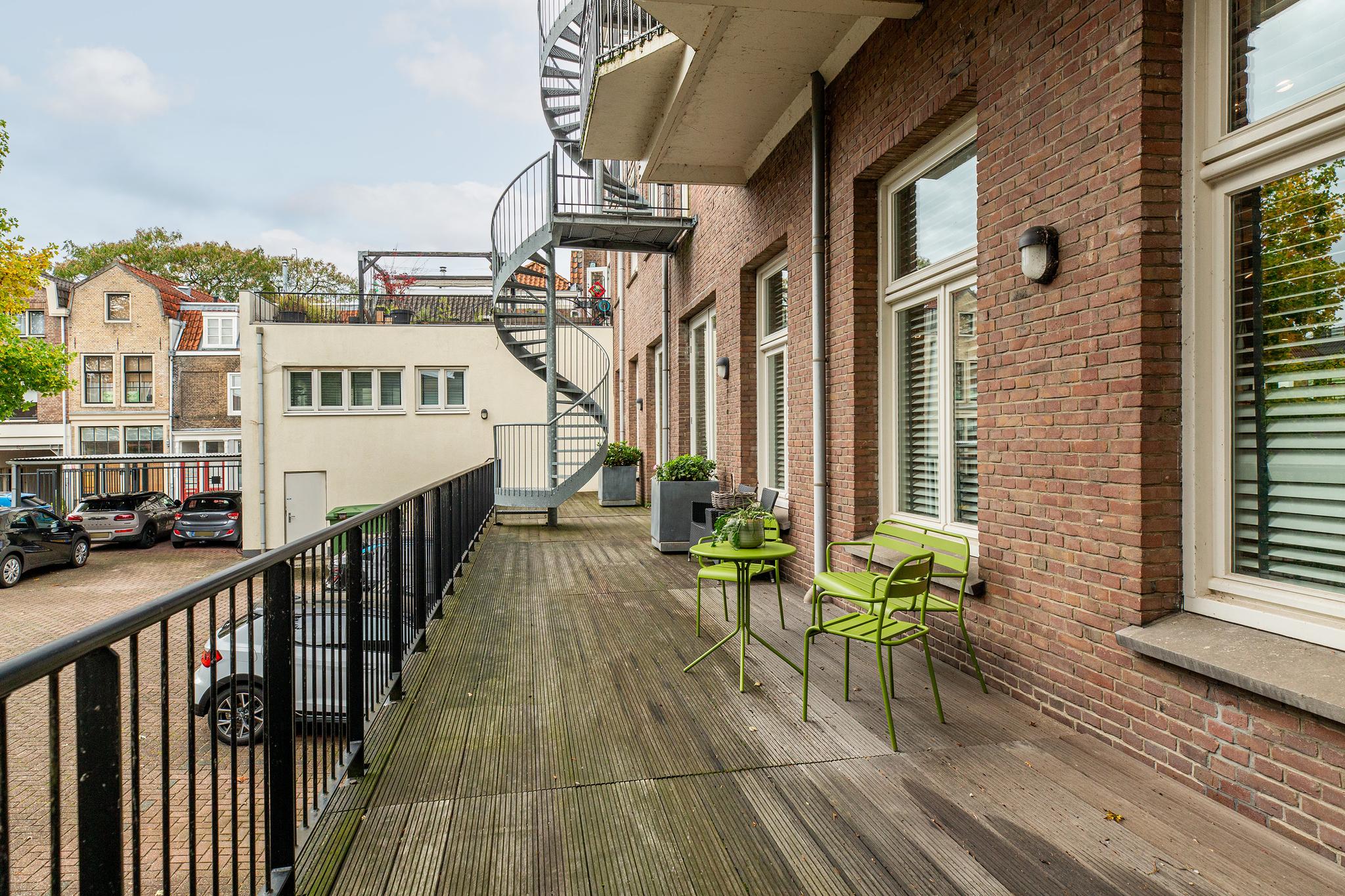 Er is een groot gezamenlijk terras aan de achterzijde van het gebouw (op een afgesloten eigen terrein) waar je de hele dag kan genieten van de zon.
