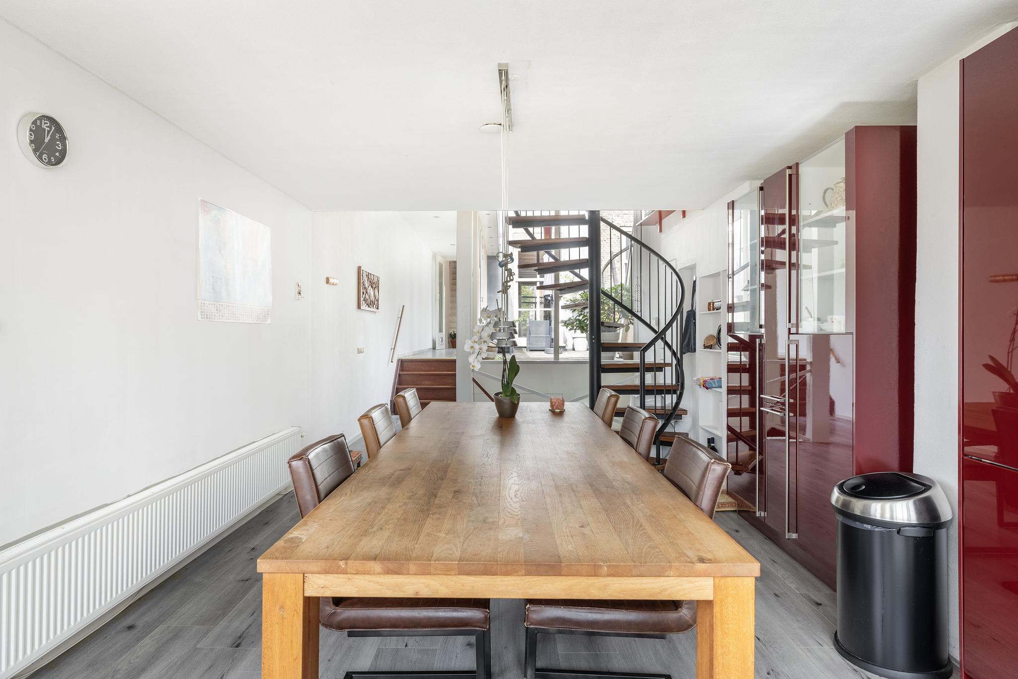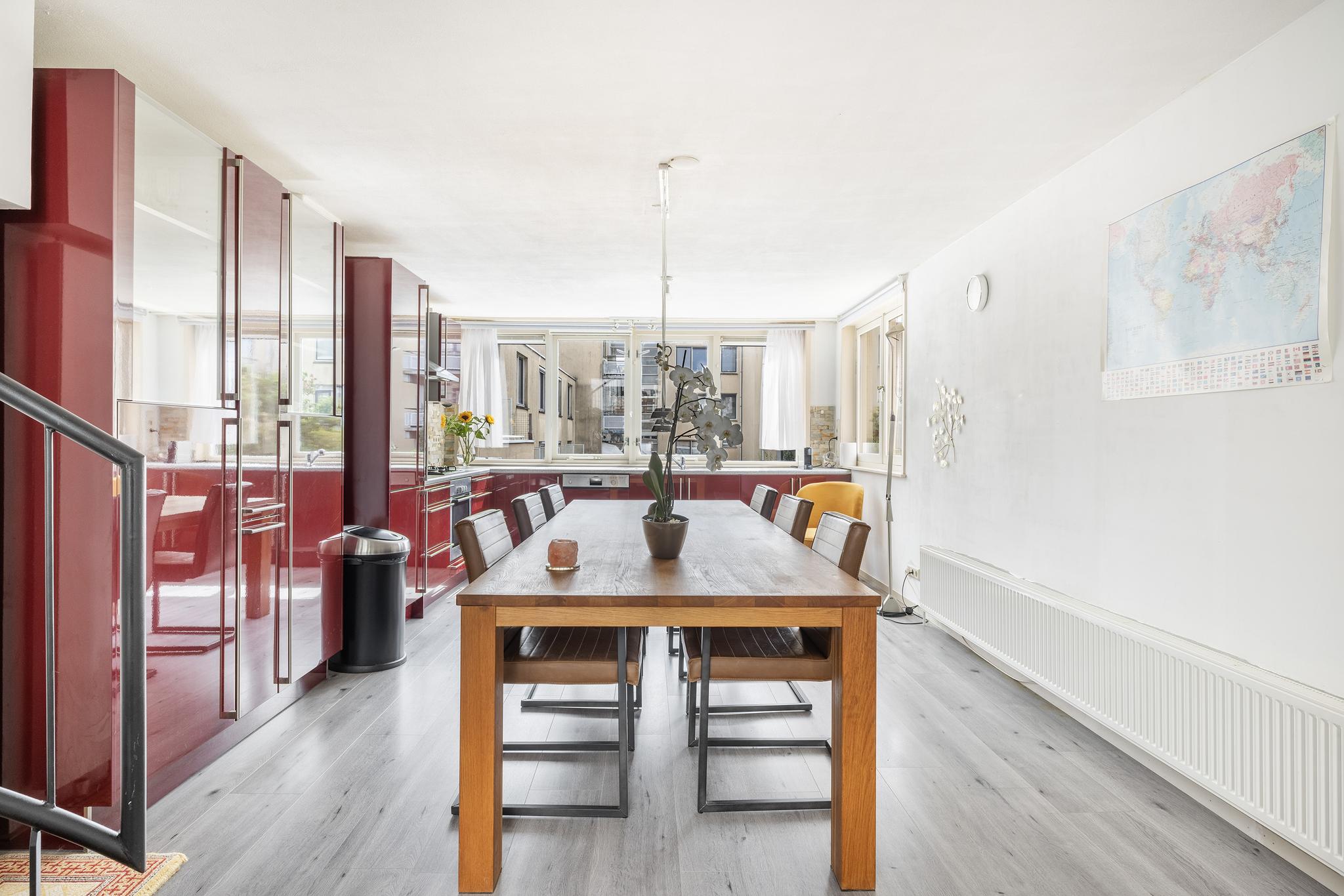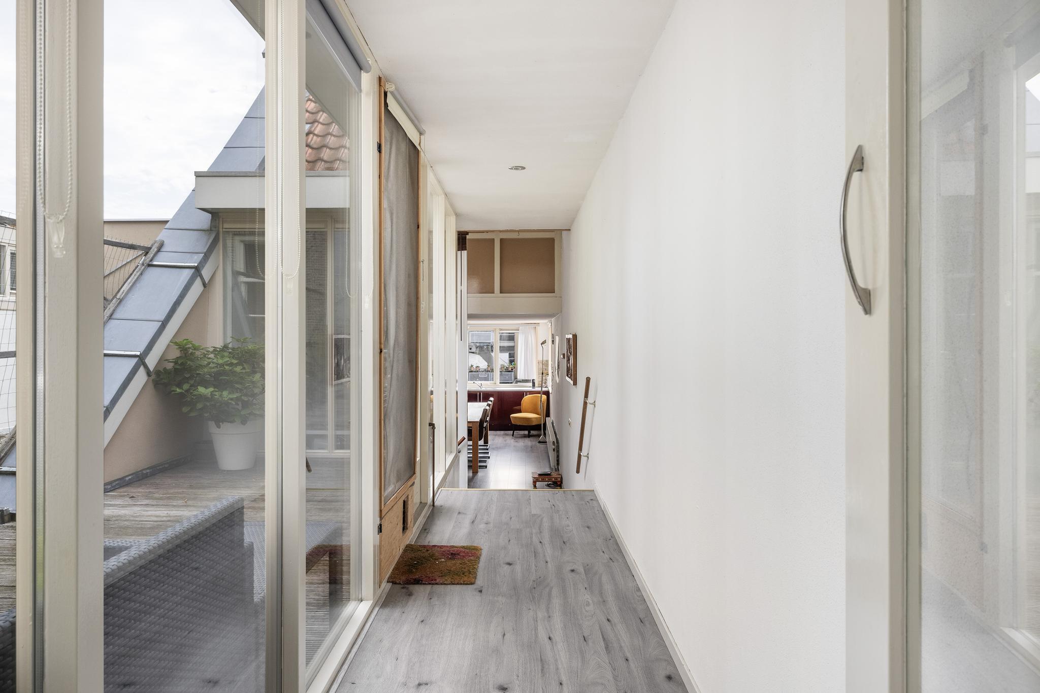 Hal naar woonkeuken met toegang tot het dakterras middels dubbele deuren. In 2007 is het gehele kozijn inclusief glas vernieuwd.