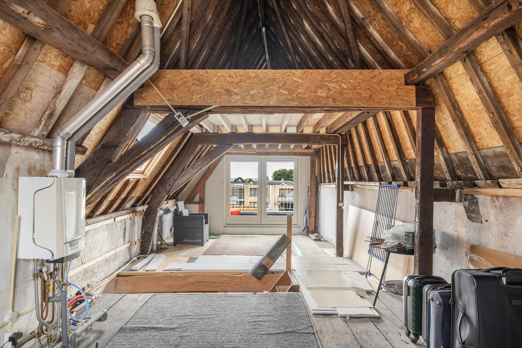 Deze verdieping is momenteel een grote open zolderruimte met prachtige oude sporenkap waarvan een balk dateert uit 1383! Huidige eigenaren hadden het idee om hier twee slaapkamers en een badkamer te creëren, hiervoor is reeds een wateraansluiting en rioolafvoer aanwezig. Aan de voorzijde is de zolder voorzien van een dakkapel met dubbel glas, aan de achterzijde dubbele deuren naar het tweede dakterras. Verder beschikt deze ruimte over een dakraam, opstelplaats CV-ketel (Remeha Tzerra, 2015) welke dient voor de bovenwoning en toegang tot de bergvliering in de nok.