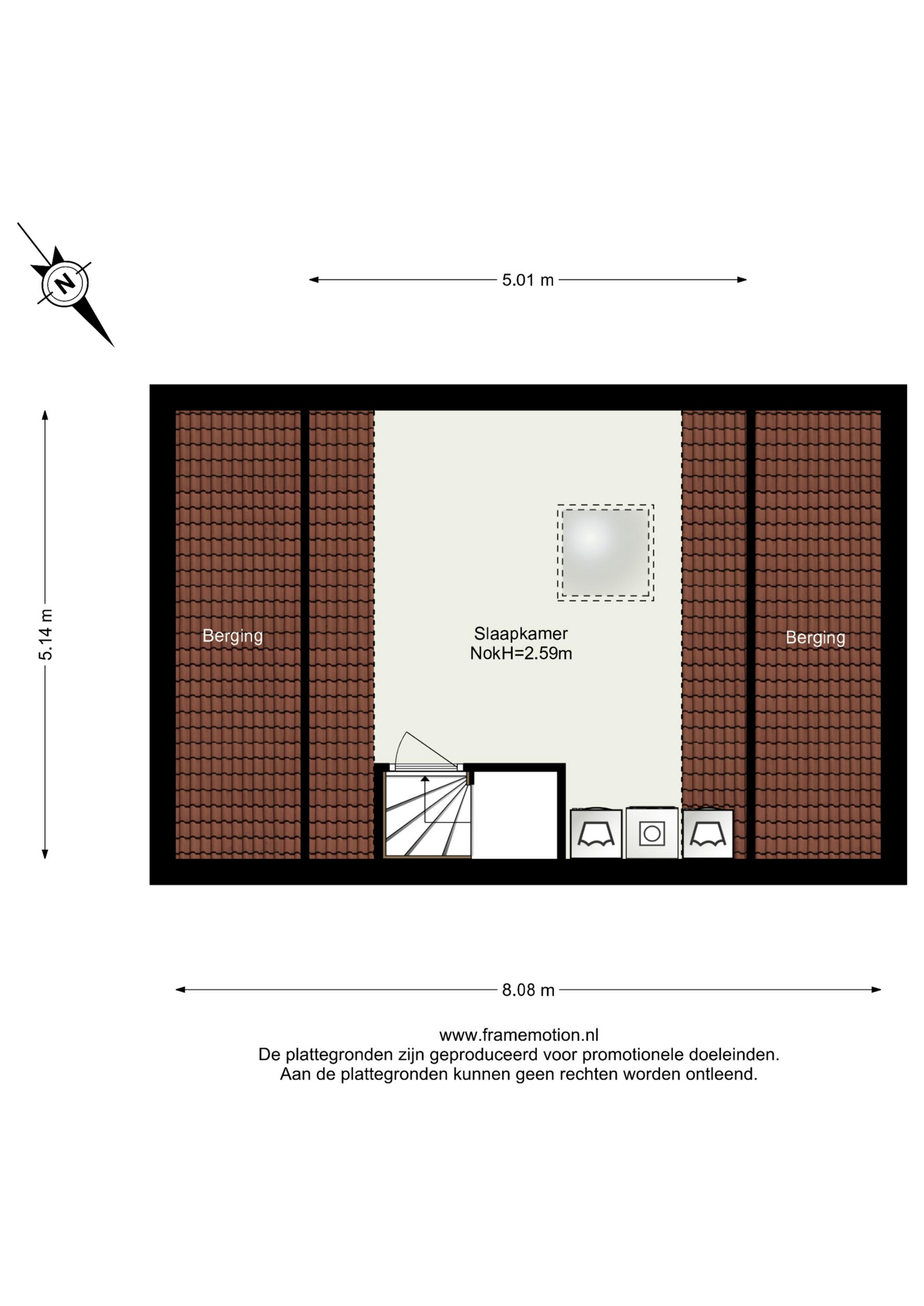 - Zolderverdieping kan middels een dakkapel worden uitgebreid, waardoor twee slaapkamers kunnen worden gerealiseerd.