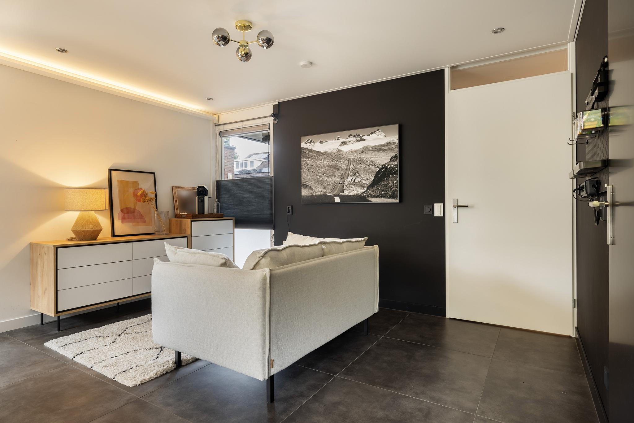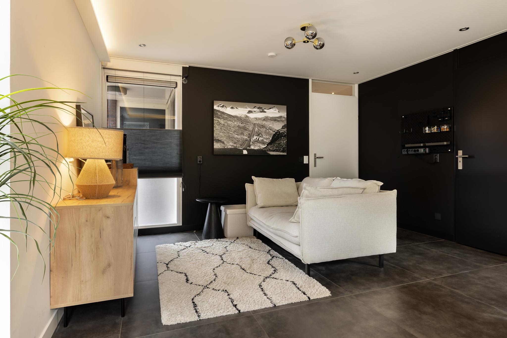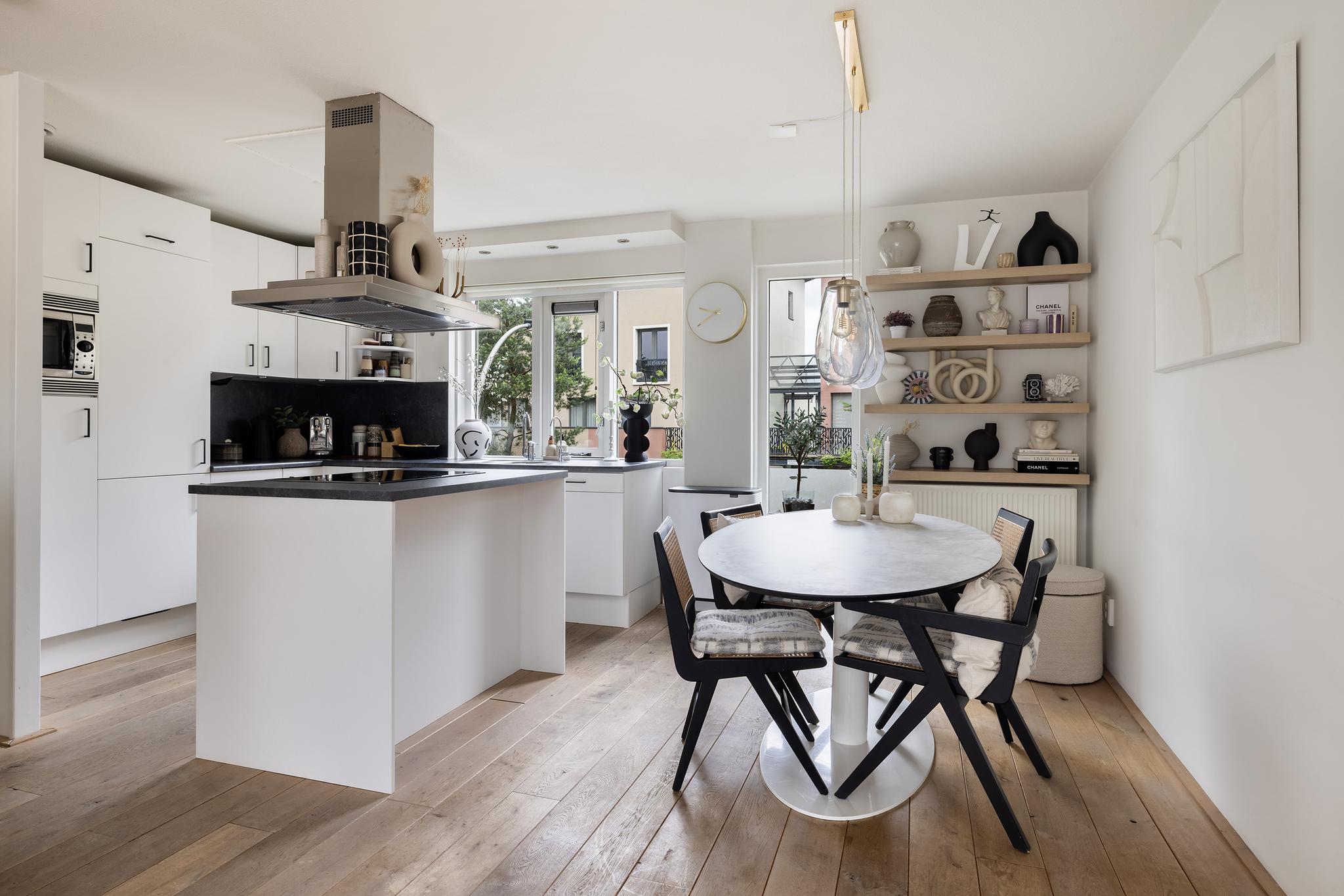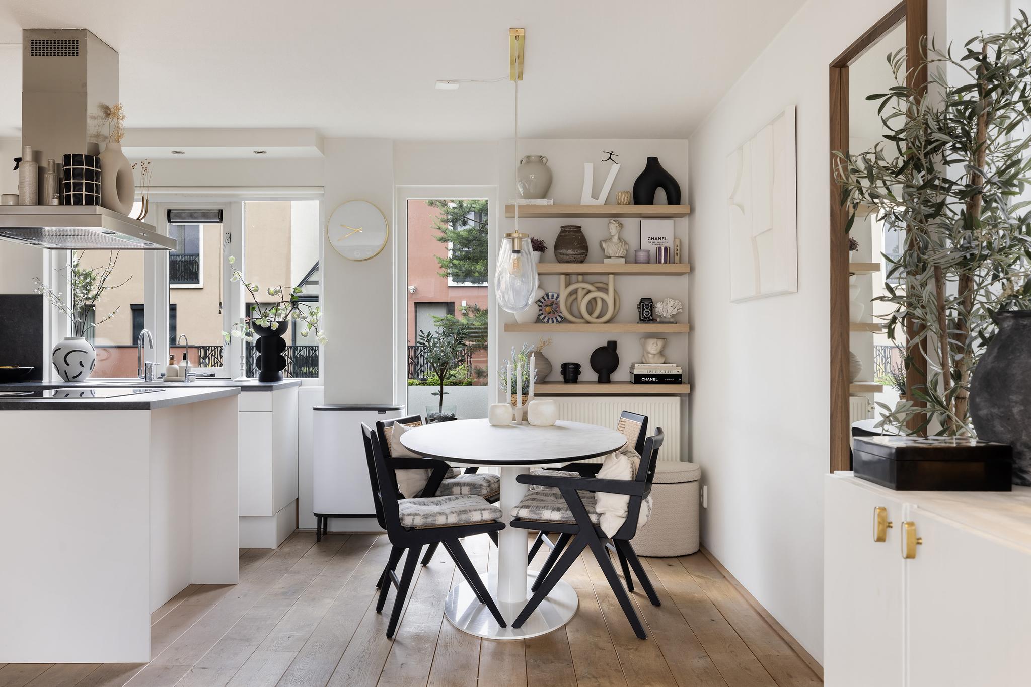Een heerlijk lichte en ruime woonverdieping met aangrenzend dakterras. De gehele verdieping is voorzien van een eikenhouten parketvloer en stucwerk wandafwerking.