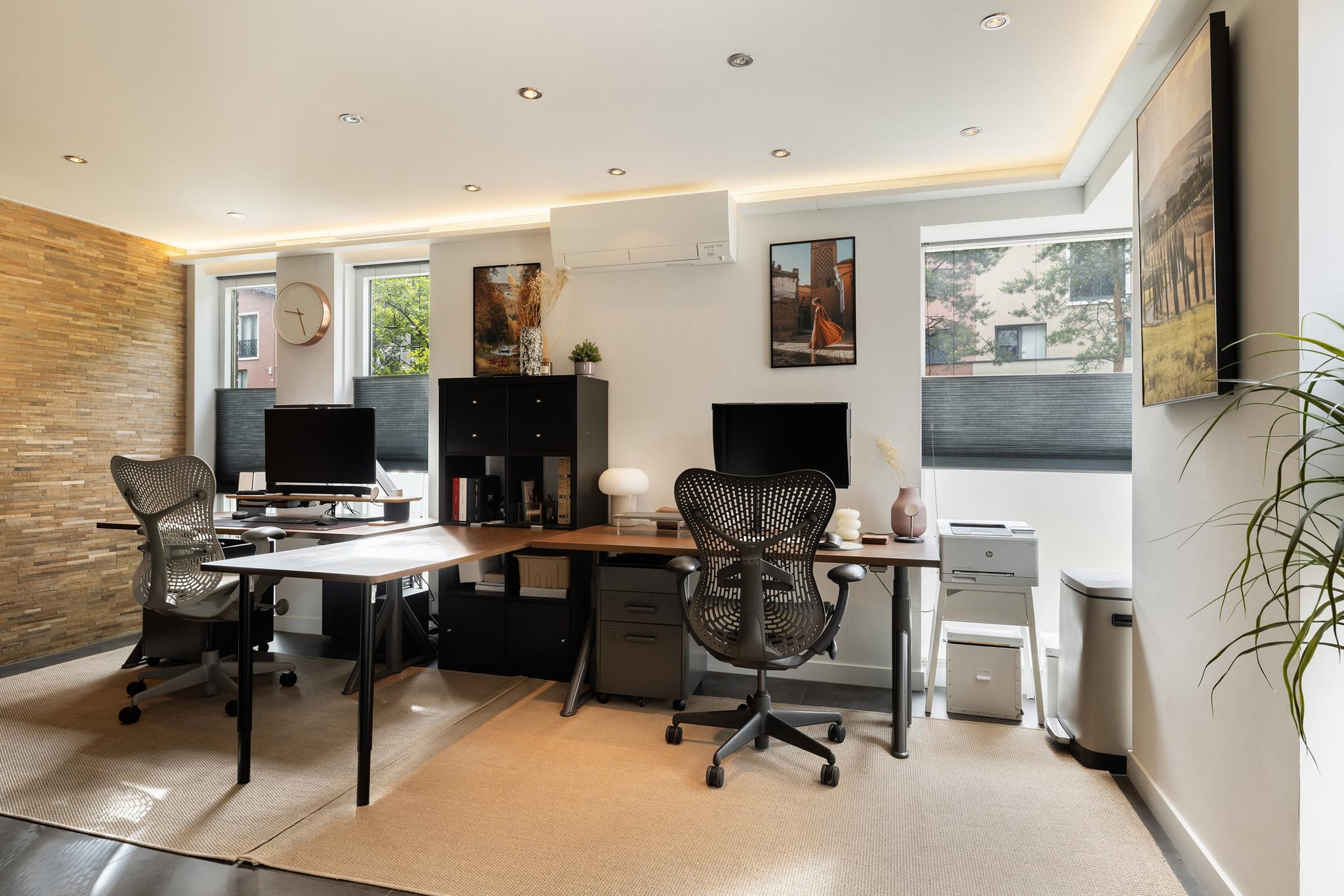 De kamer aan voorzijde is momenteel in gebruik als thuiskantoor, maar biedt daarnaast ook nog andere mogelijkheden. Je kunt er uiteraard een royale slaapkamer of gastenverblijf van maken, maar in het verleden is deze ruimte ook als praktijkruimte gebruikt, ook daar is het goed voor geschikt! De ruimte is afgewerkt met een mooie tegelvloer met vloerverwarming (ook in de hal!) en stucwerk wandafwerking en voorzien van airconditioning (2019), een ruime trapkast en inbouwspots.