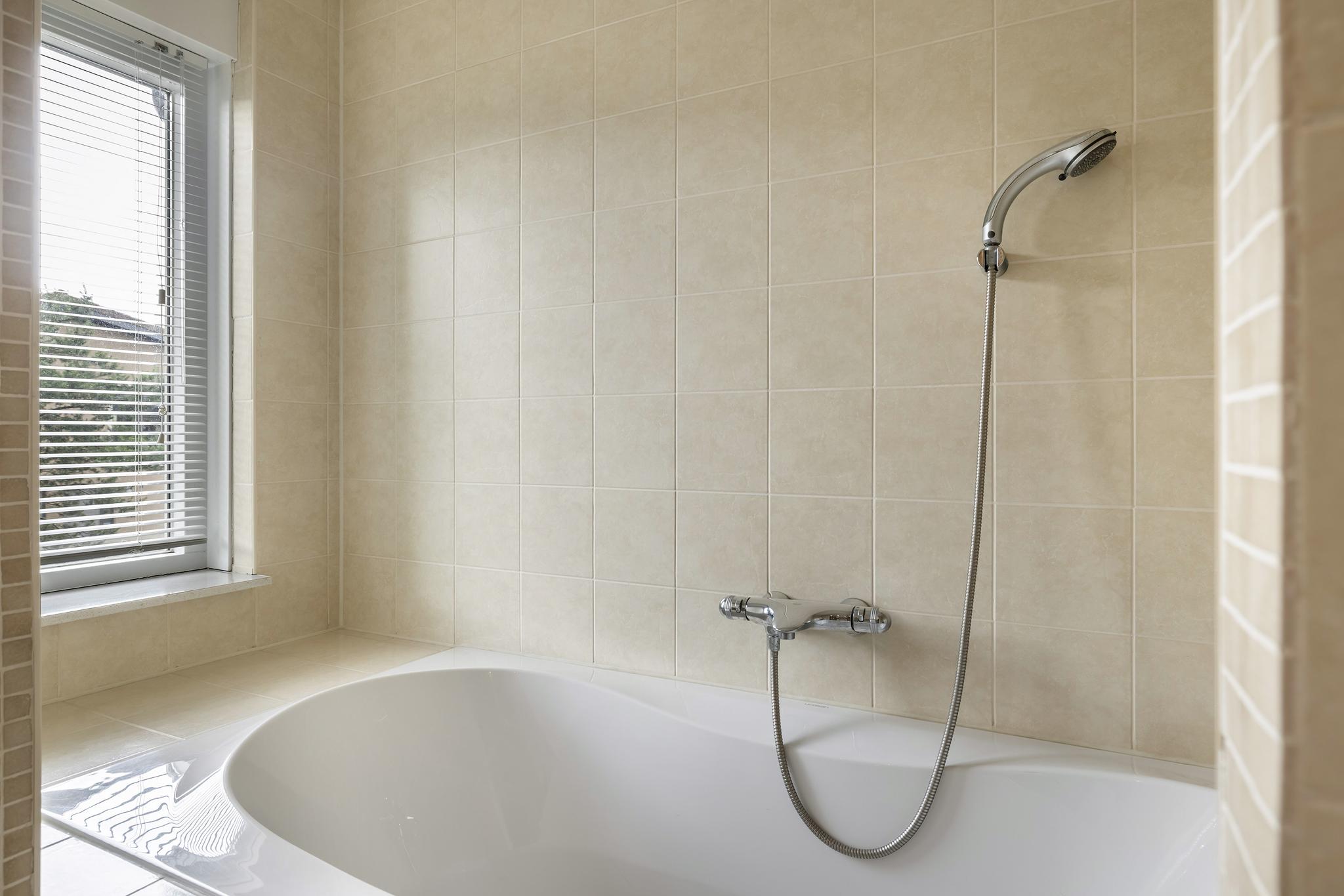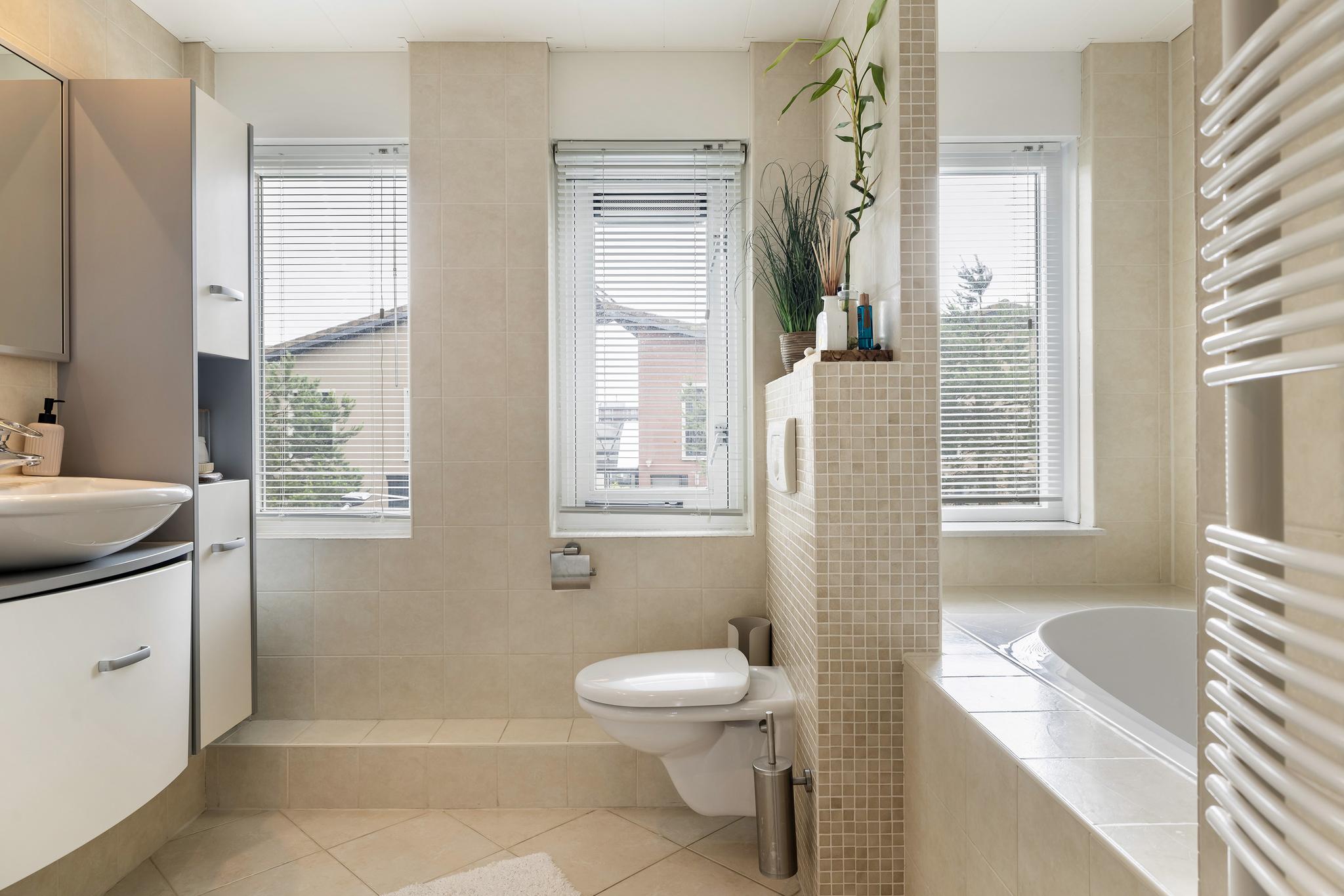 De badkamer is zeer ruimtelijk en van alle gemakken voorzien. Zo beschikt deze over een ruim ligbad met thermostaatkraan, douchecabine met thermostaatkraan, wastafel op meubel met kolomkast, toilet, designradiator en inbouwspots.
