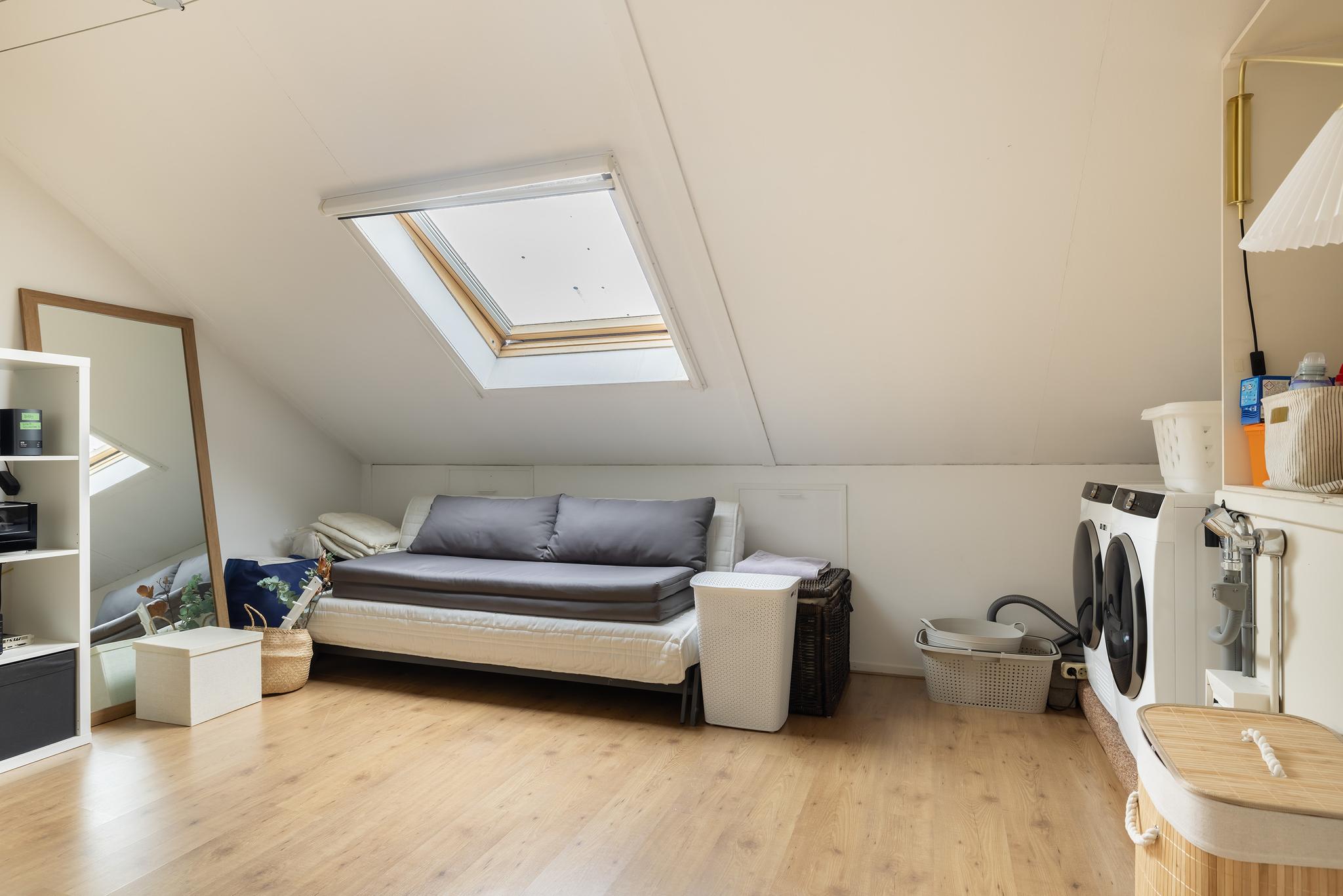 De grote zolderruimte wordt momenteel vooral gebruikt als berging en wasruimte, maar er kan met gemak een extra slaapkamer van worden gemaakt en met het plaatsen van een dakkapel zelfs twee slaapkamers! De verdieping is voorzien van een laminaatvloer, dakraam, wasaansluiting, opstelplaats CV-ketel (Remeha, 2019), mechanische ventilatie unit, omvormer zonnepanelen en bergruimte achter knieschotten.