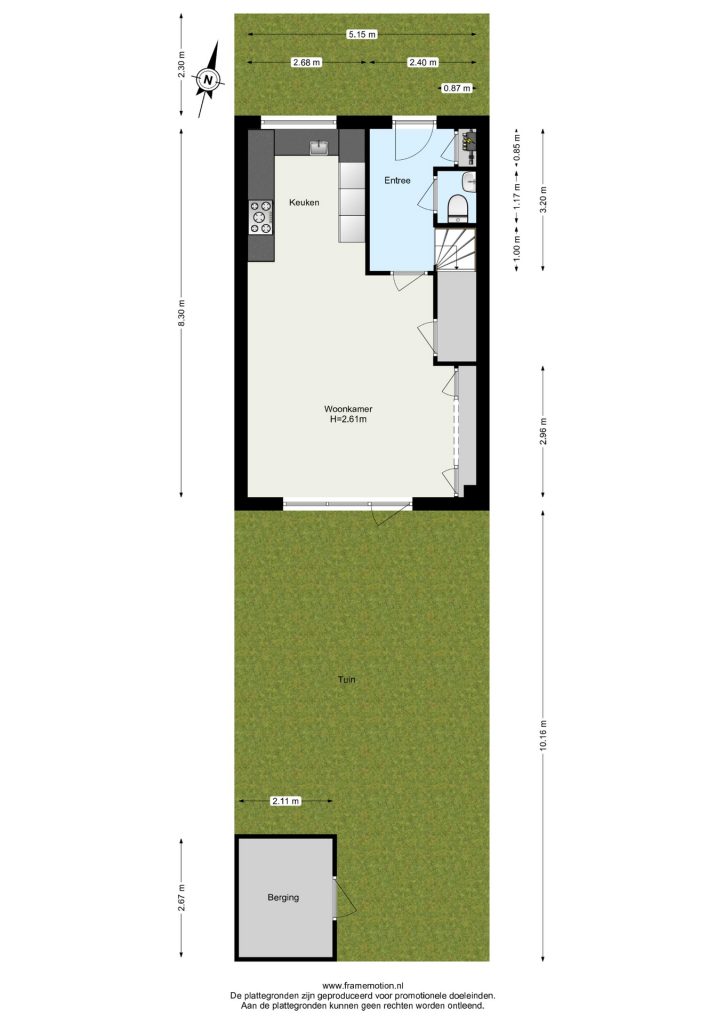 Begane grond voorzien van vloerverwarming.