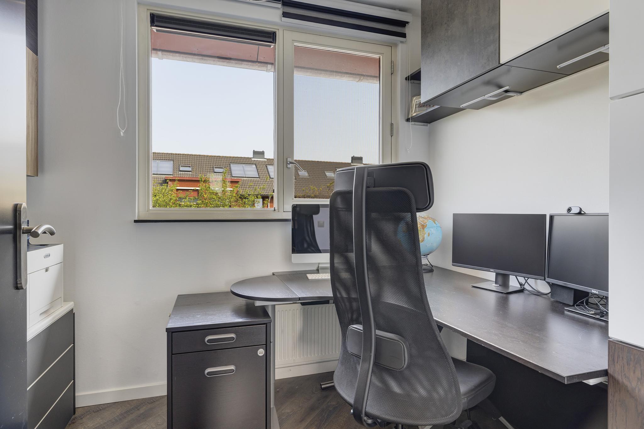 Op eerste en tweede verdieping is achterzijde voorzien van sunscreens.