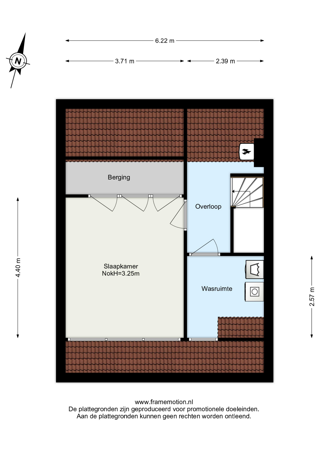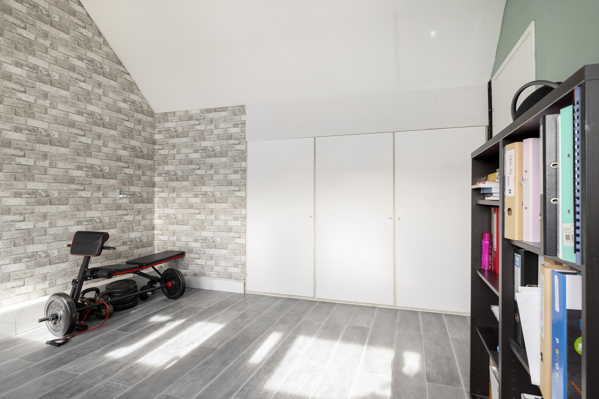 Slaapkamer met dakkapel, bergruimte onder schuin dak en een drie deurs inbouwkast.