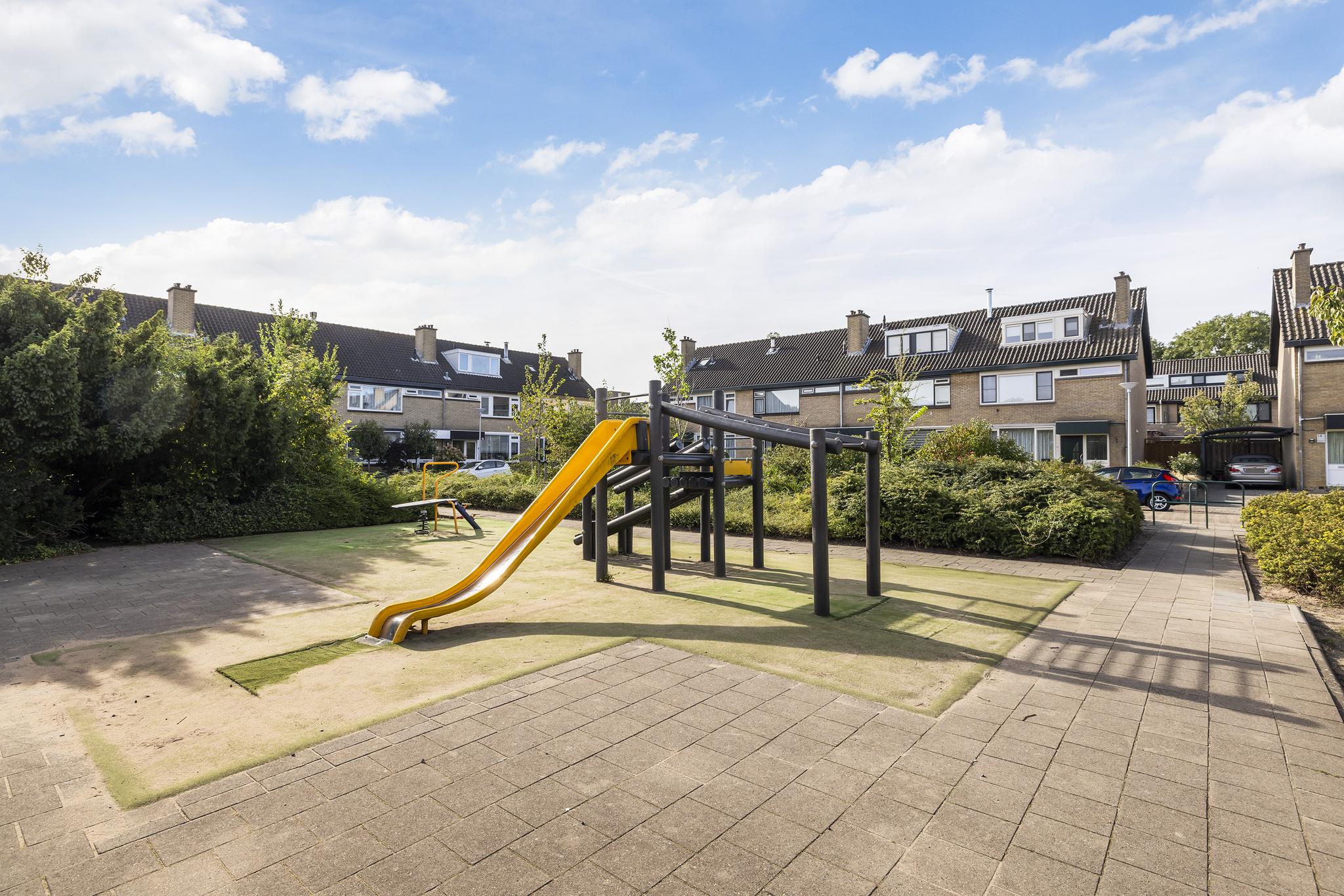 Voor de woning is een grote groenvoorziening met speelplein, in de aankomende tijd gaat dit volledig op de schop. Het wordt een volledig nieuwe indeling met natuurspeeltuin en veel groen. Dus kies je voor deze woning dan kies je niet alleen een heel leuk huis maar ook een zeer leuke omgeving.