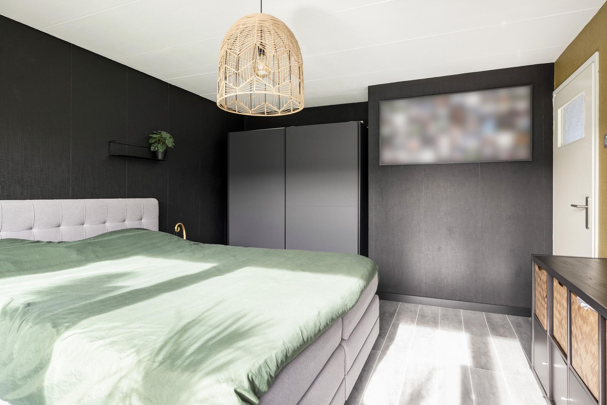 Slaapkamer 1, gelegen aan de voorzijde met elektrisch screen.