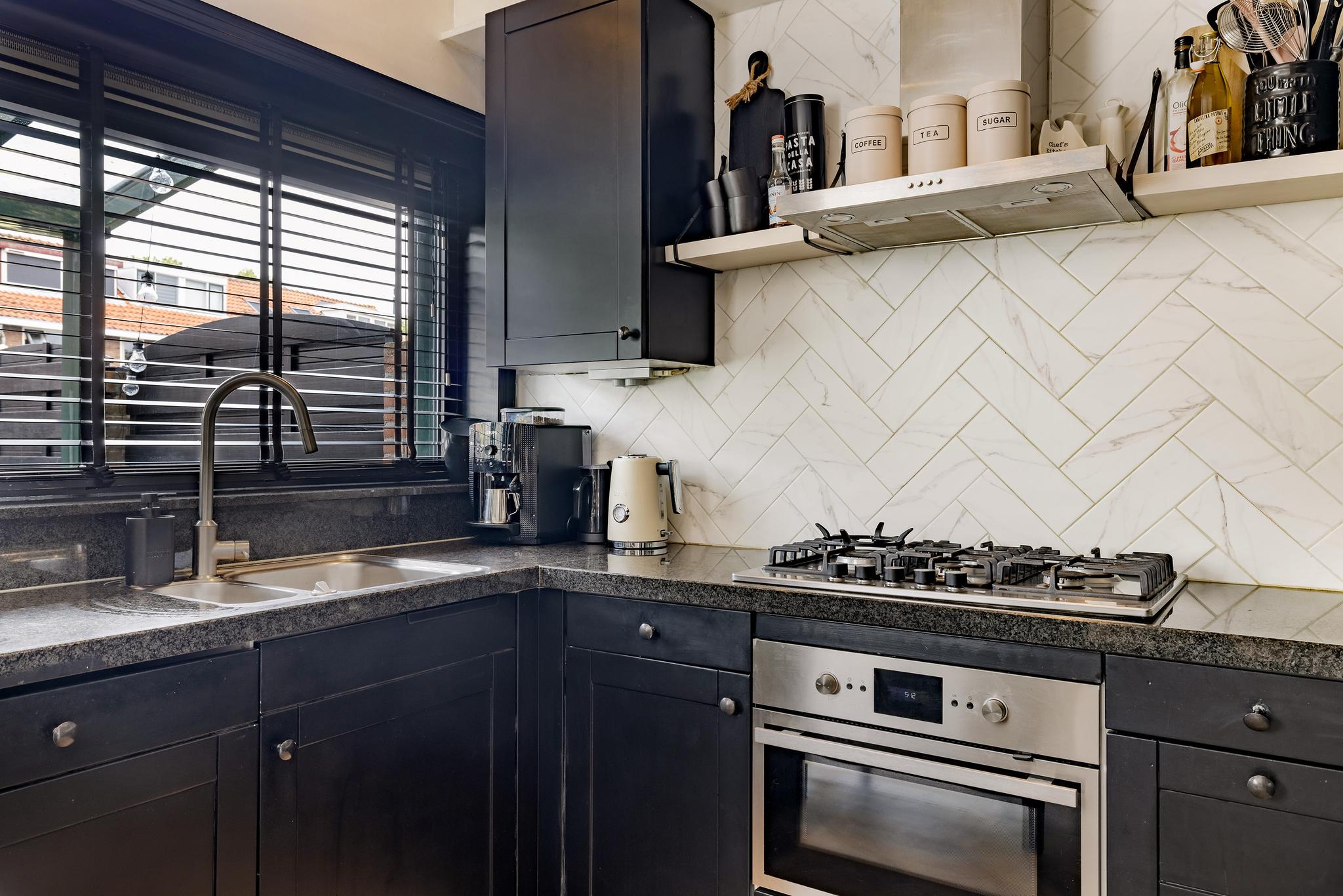De keuken is eenvoudig maar bruikbaar en door de jaren heen gepimpt: spoelbak, close-in-boiler, 5 pits gaskookplaat, combi oven, vaatwasser, koelkast, vriezer, rvs afzuigschouw.