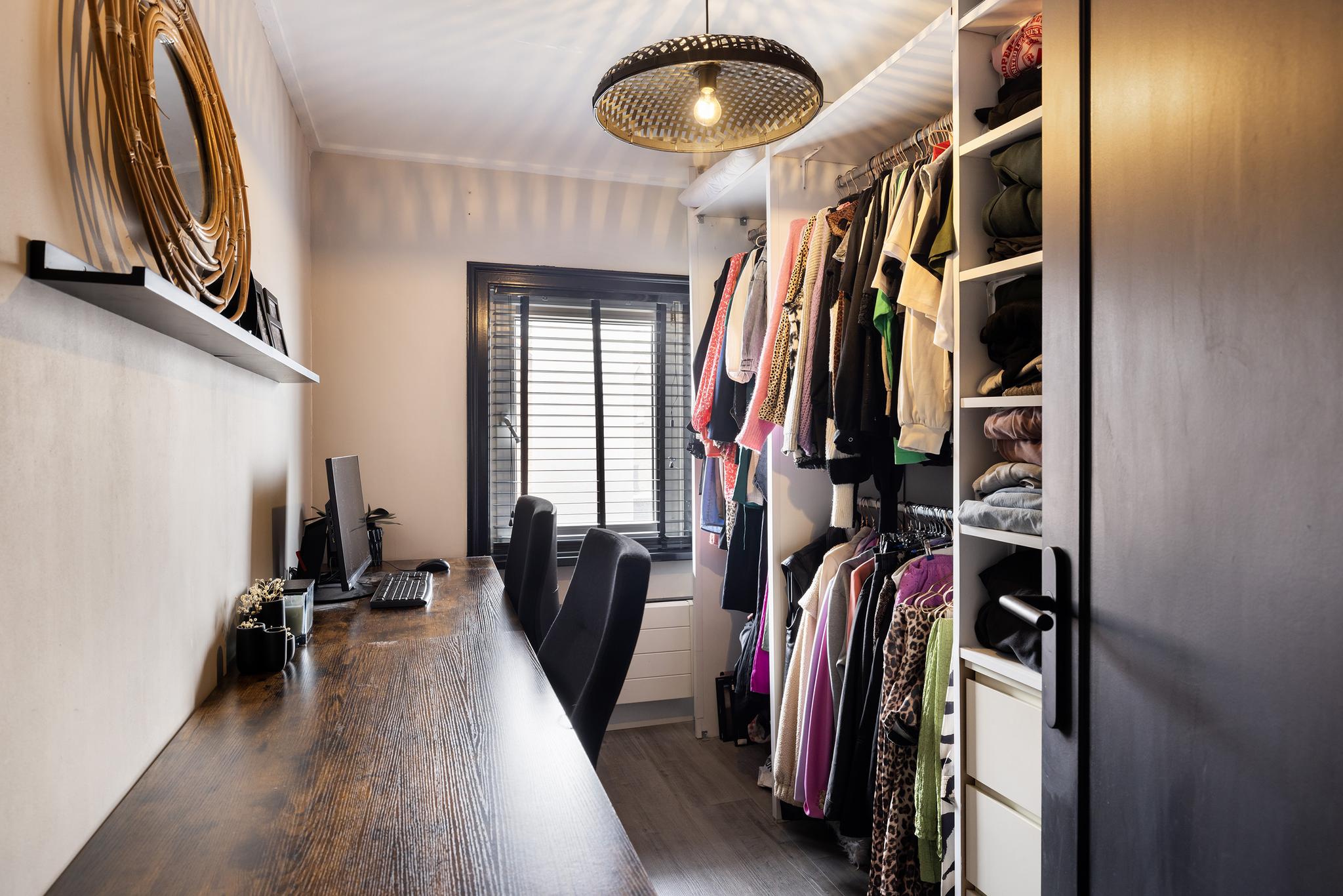 Slaapkamer 3, nu in gebruik als inloop kast met vaste kasten. Uiteraard is de ruimte een slaapkamer van origine.