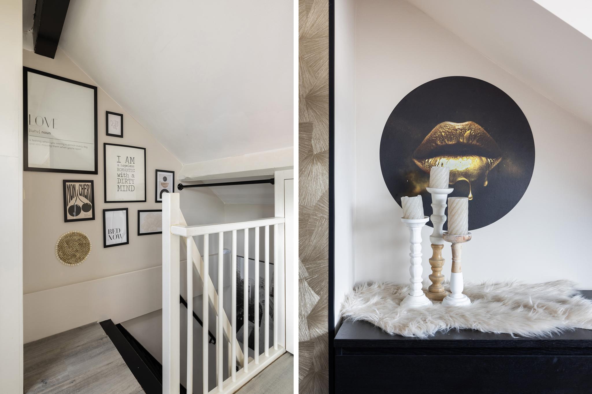 Overloop met wasaansluiting, dakraam, opstelling van de CV ketel (merk Nefit, bouwjaar 2017) en bergruimte onder het schuine dak.
