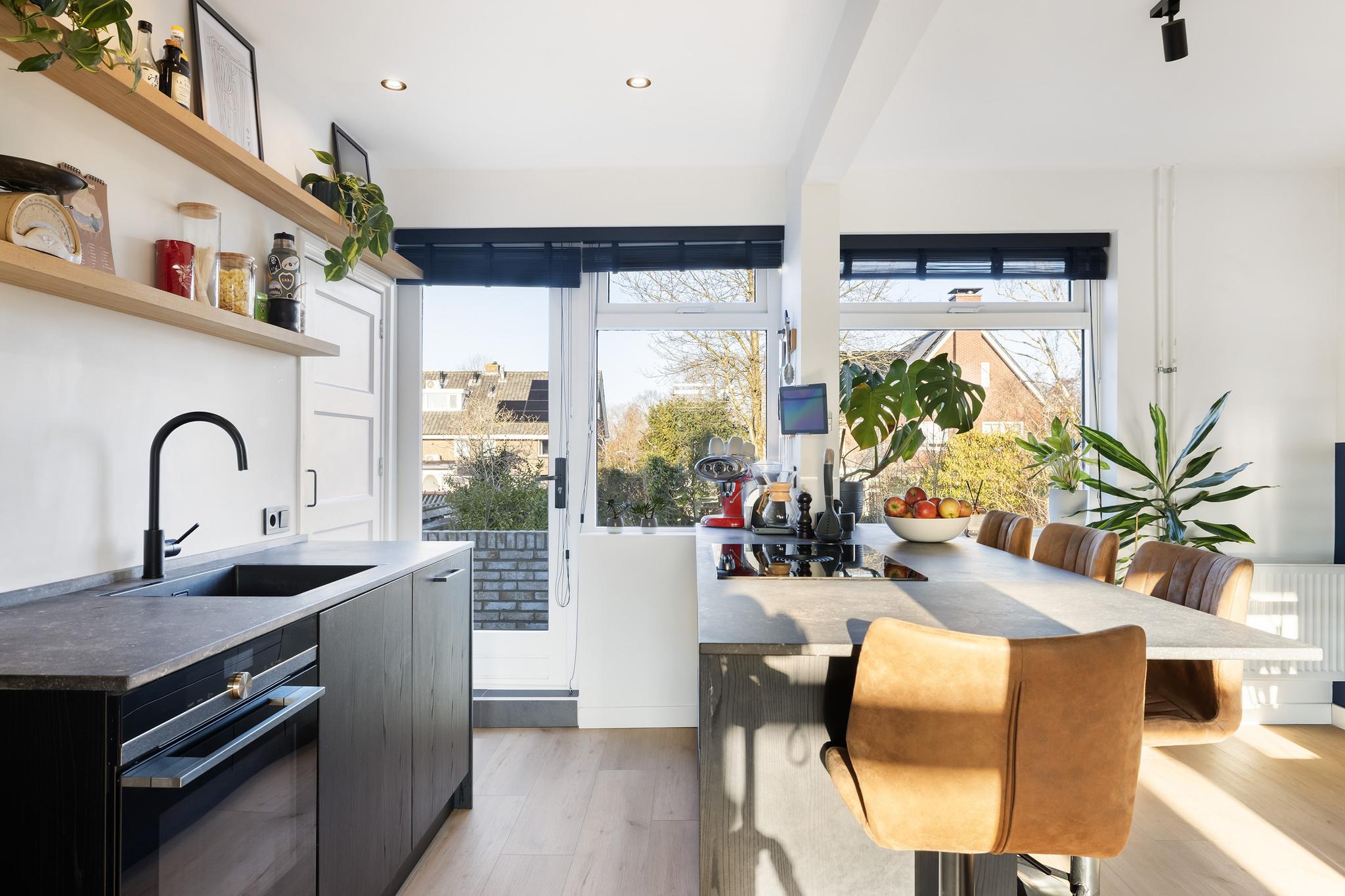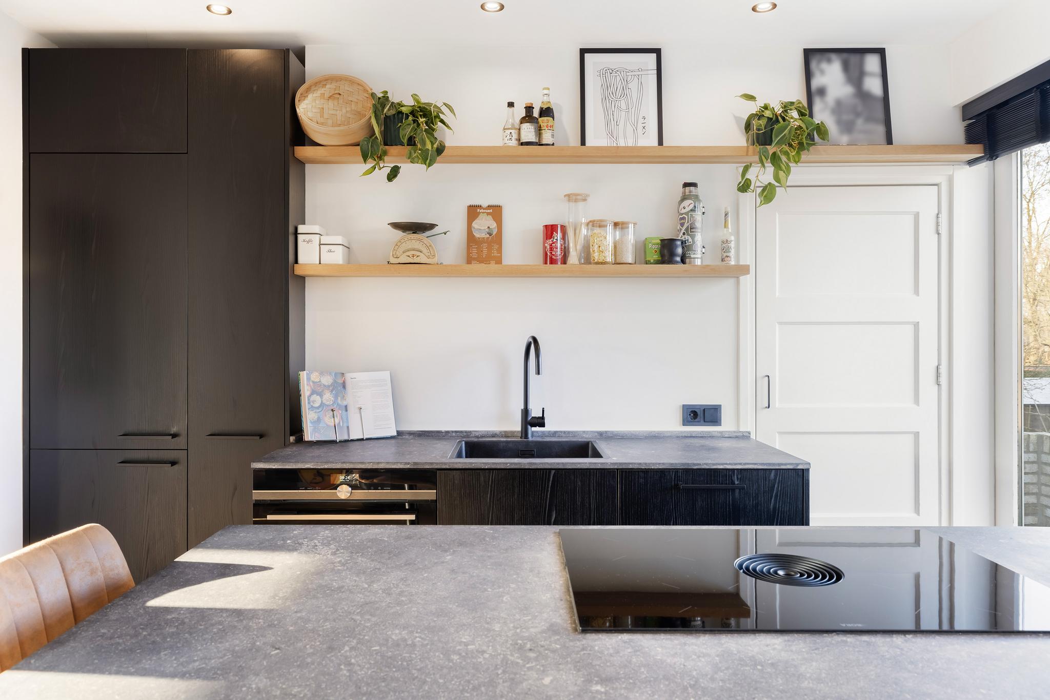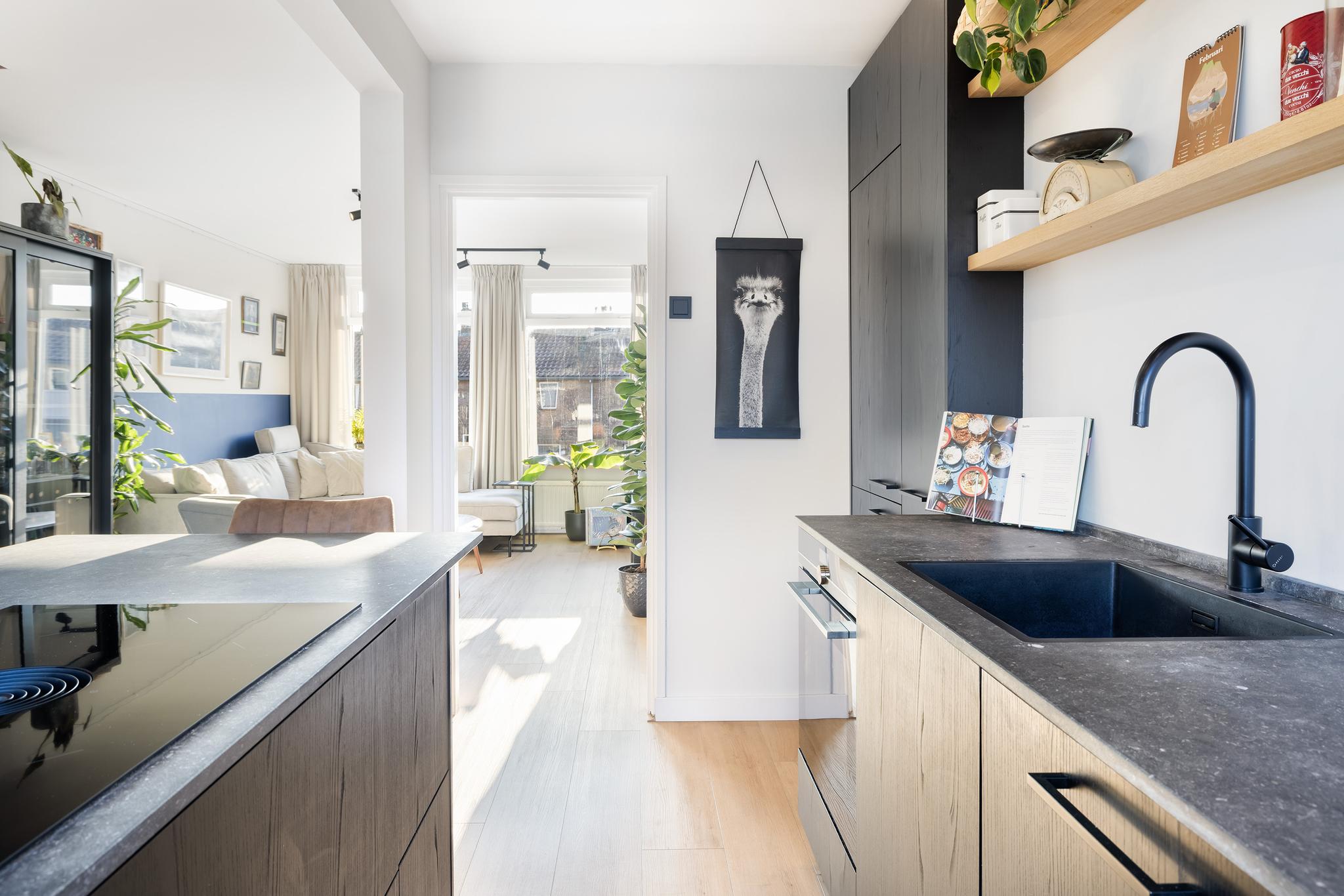 De keuken is door de huidige eigenaar met veel liefde ontworpen en door een meubelmaker op maat gemaakt. Hierdoor zijn alle ruimtes super goed benut zonder dat dit ten koste gaat van sfeer en stijl! In de keuken is een spoelbak aanwezig, Bora inductie kookplaat inclusief afzuigsysteem, Bosch vaatwasser, koel-vriescombinatie, apothekerskast en een Siemens oven met wifi en Pyrolyse. Het geheel is afgewerkt met een Belgisch hardstenen blad, touch laden en veel kastjes. Verlaagd plafond met spots, vanuit de keuken is er toegang tot het balkon en de badkamer. Zie jij je al hier al ontbijten aan de keukentafel?