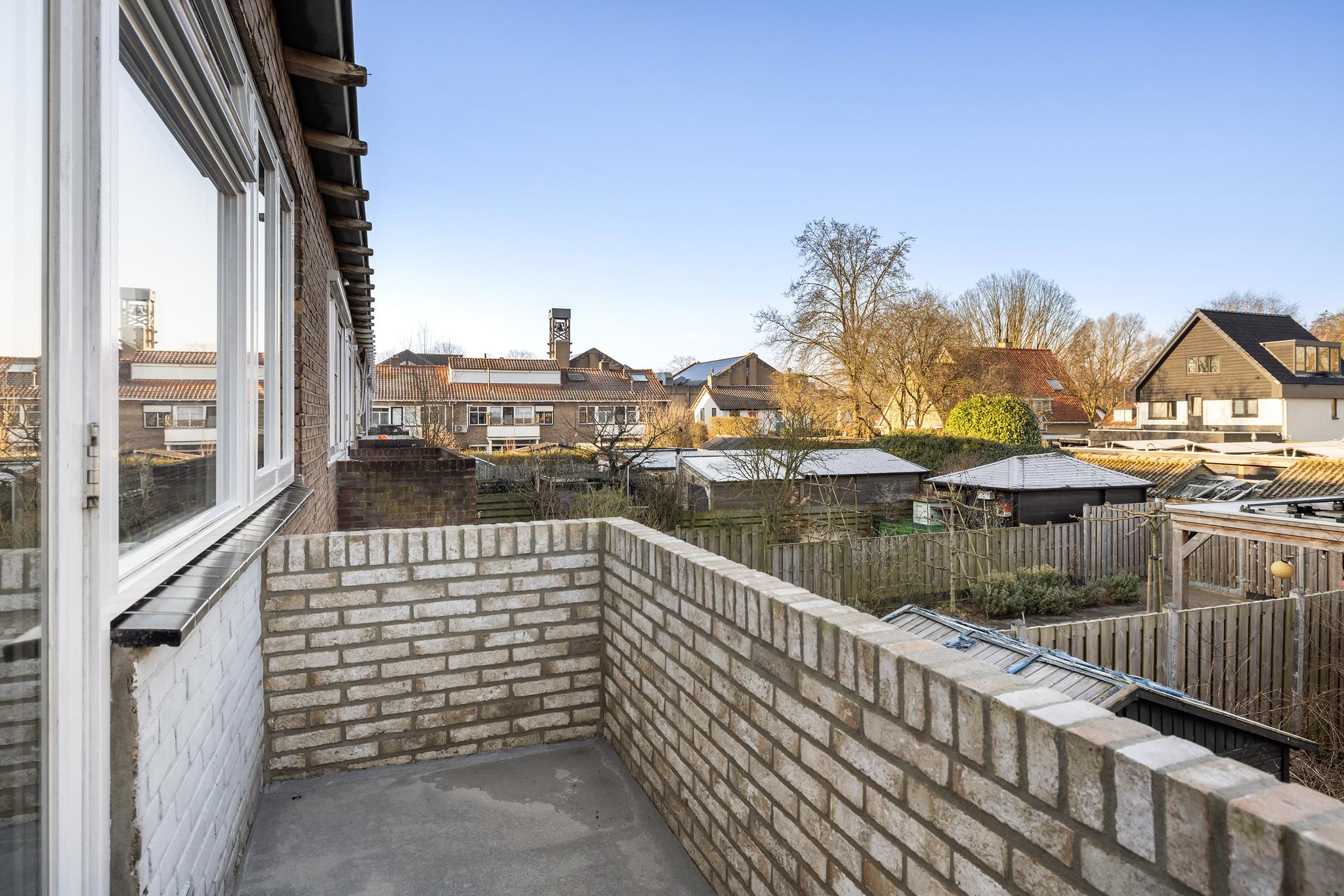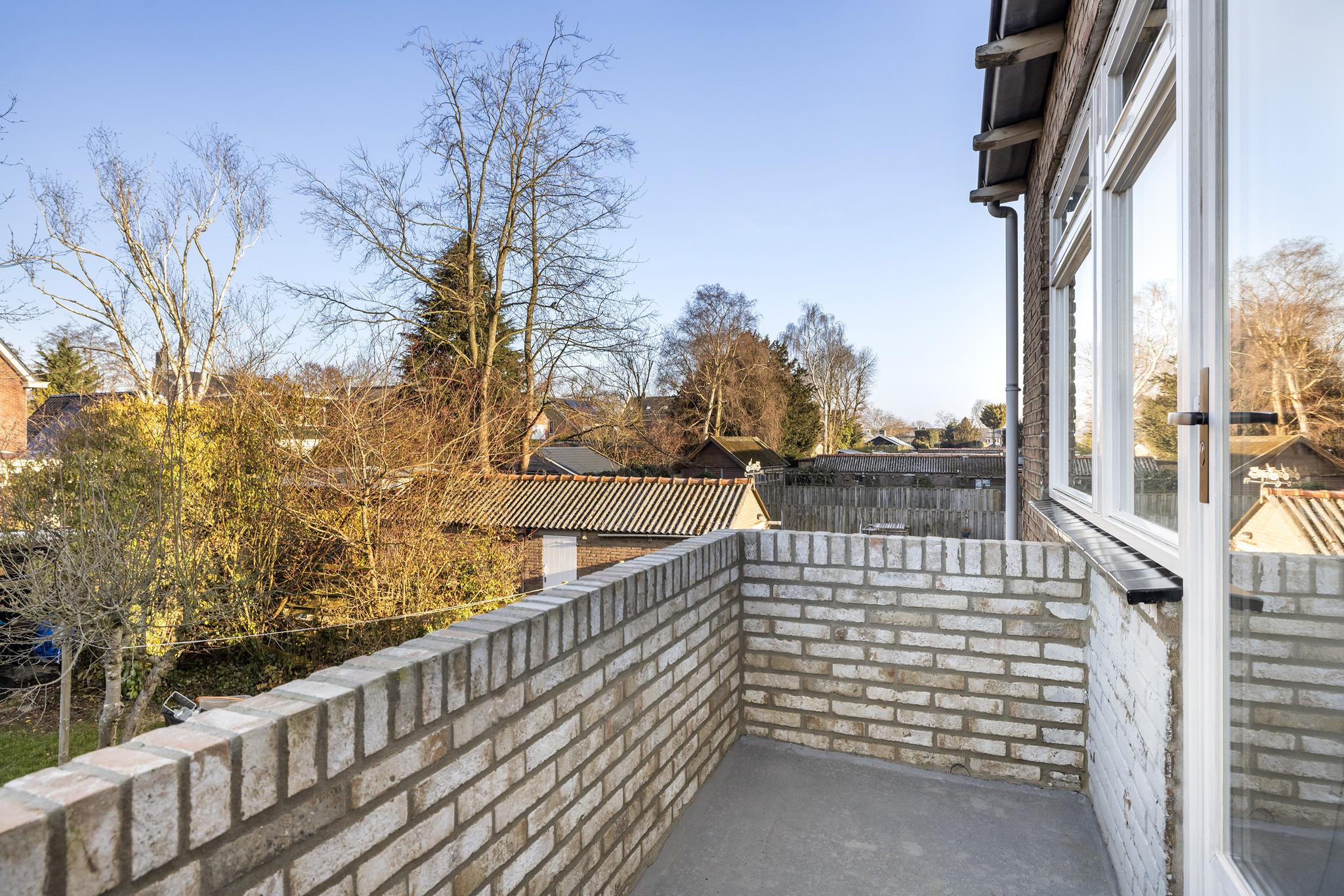 Het balkon kijkt heerlijk vrij uit over het groen, waarop je in de zomer de laatste zonnestralen vangt.