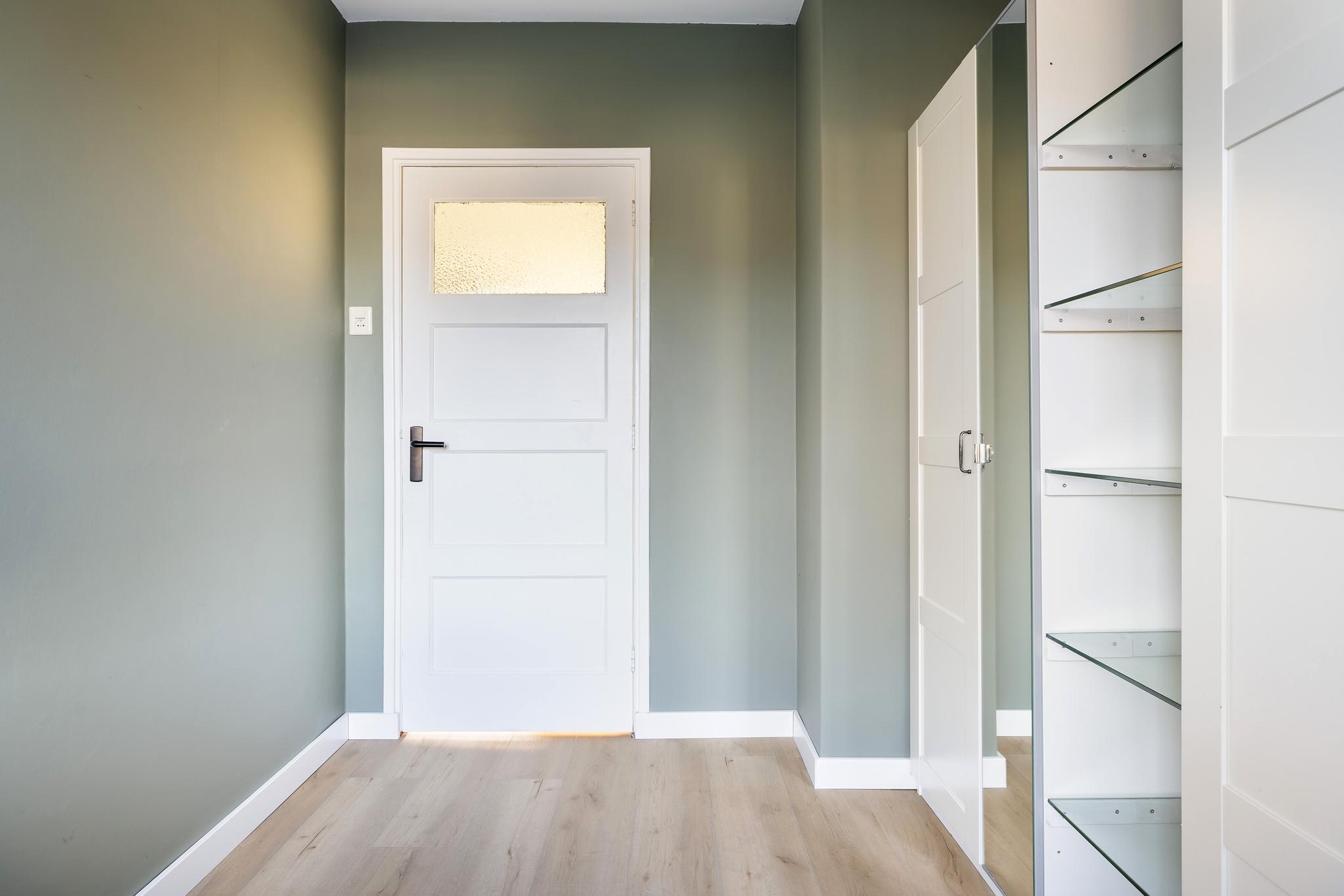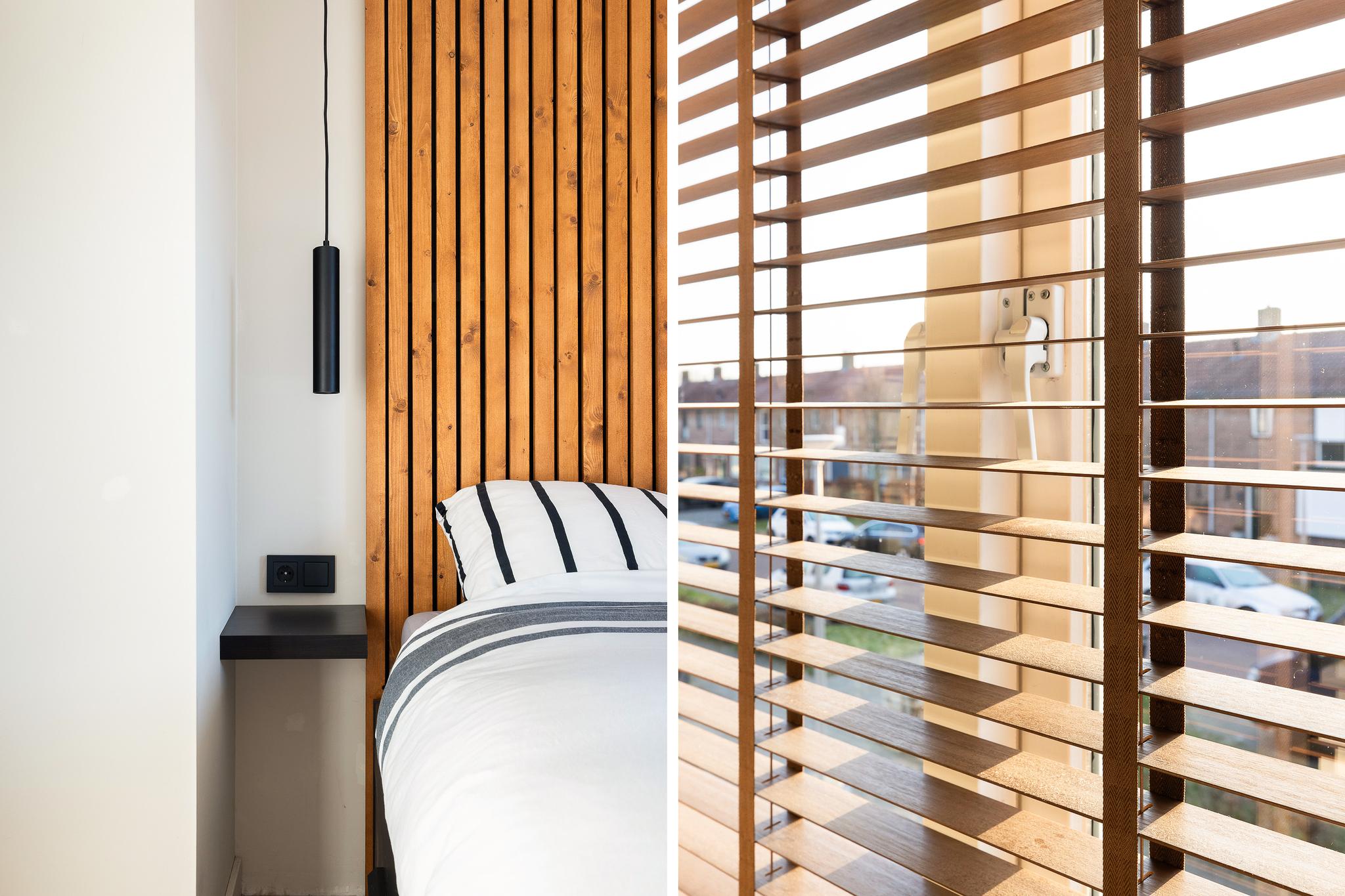 Slaapkamer 1 is gelegen aan de achterzijde met vaste kast en stuc wanden.