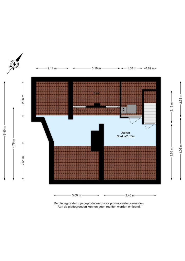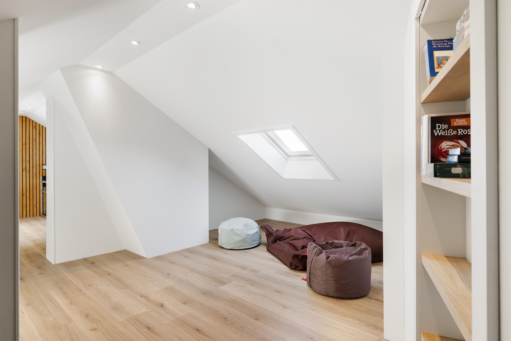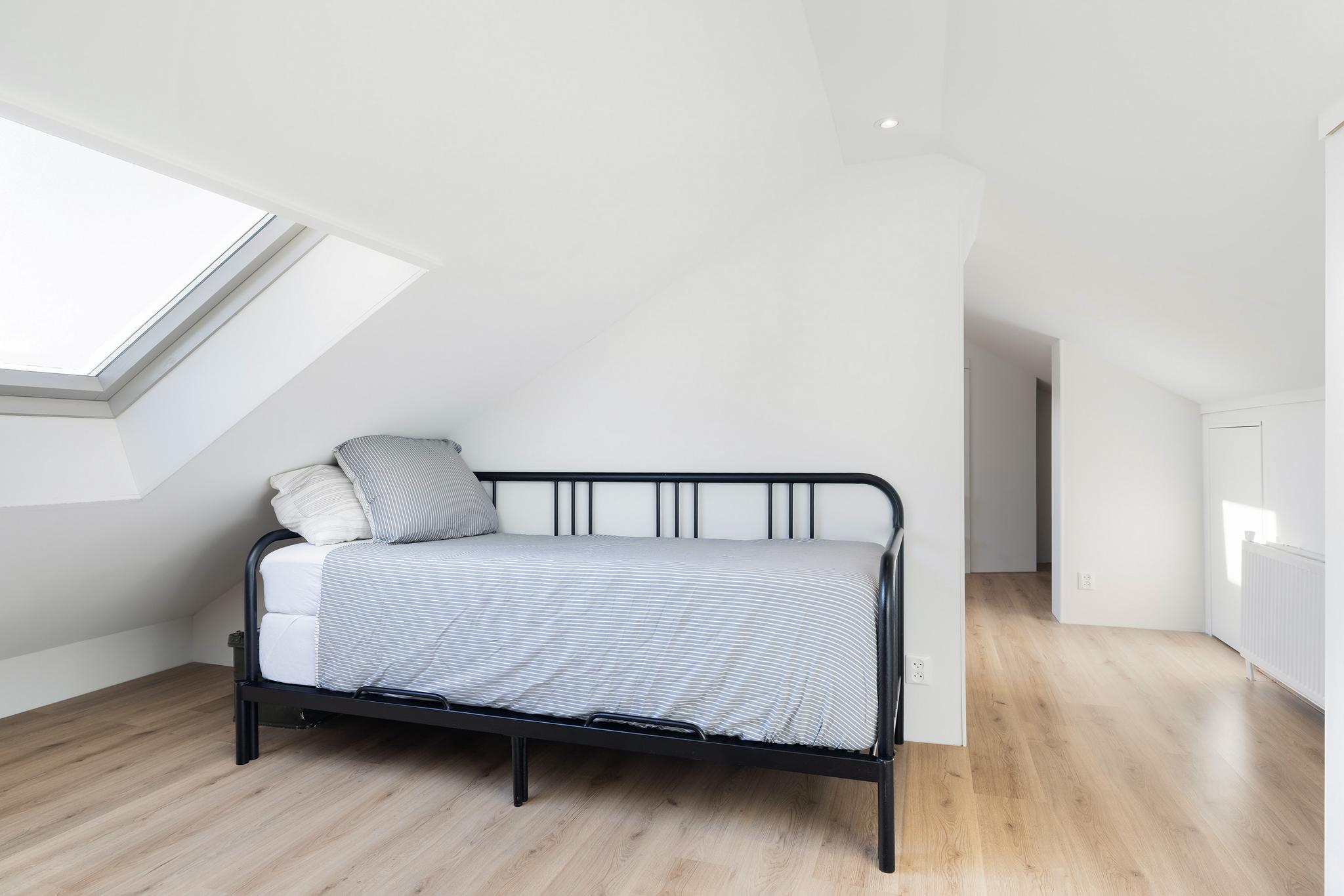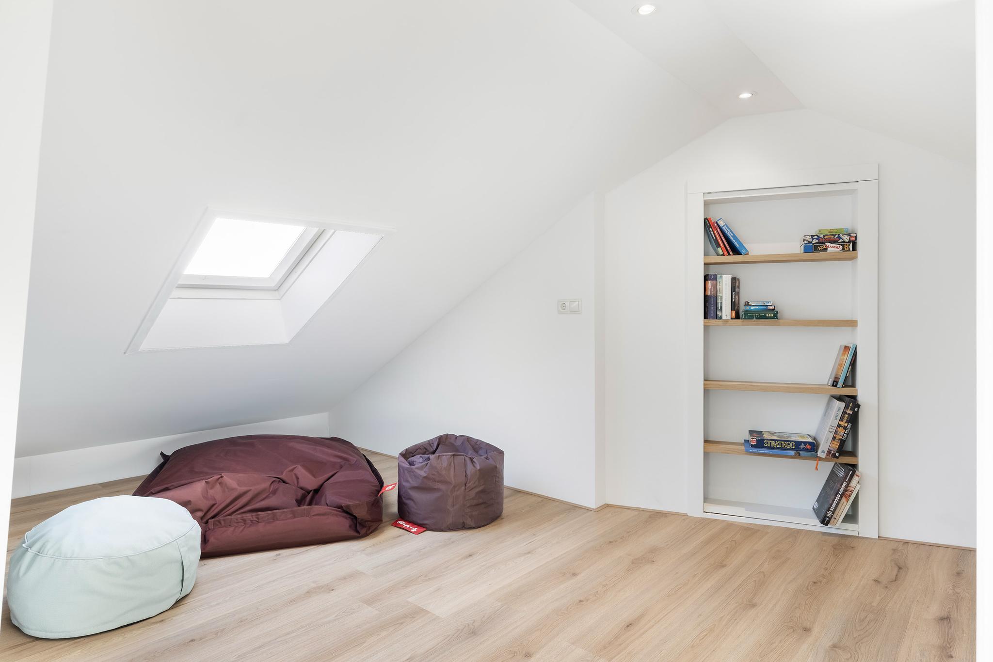 De ruimte onder het schuine dak op deze verdieping is aanzienlijk en is daarnaast een extraatje omdat dit niet in de woonoppervlakte mag worden meegerekend. De ruimte voelt dus erg groot, dat is een bonus!
