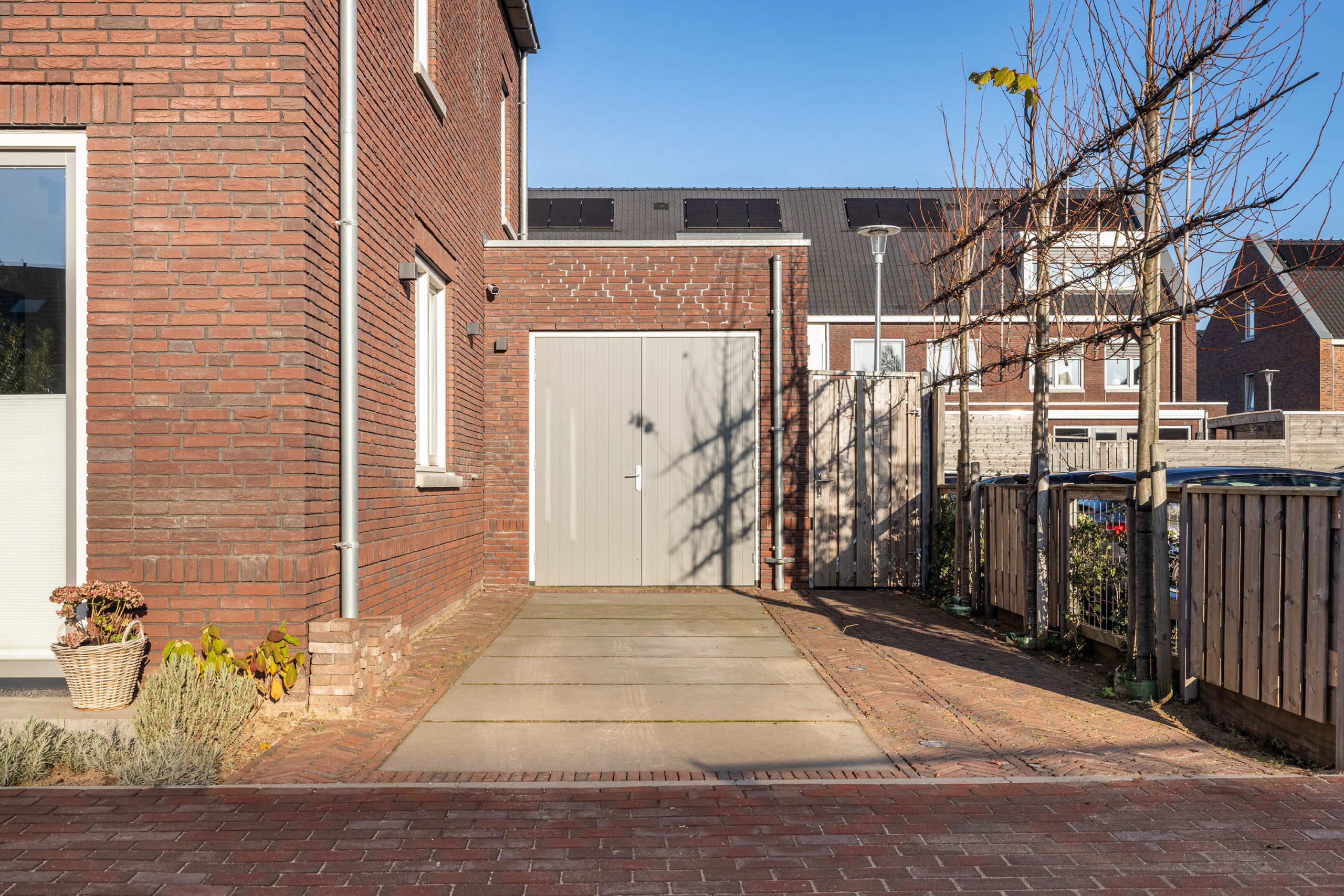Aan de voorzijde beschikt de woning over een eigen oprit, keurige bestrating en een aangebouwde stenen berging, voorzien van elektra. Via de berging is de achtertuin eveneens te bereiken.