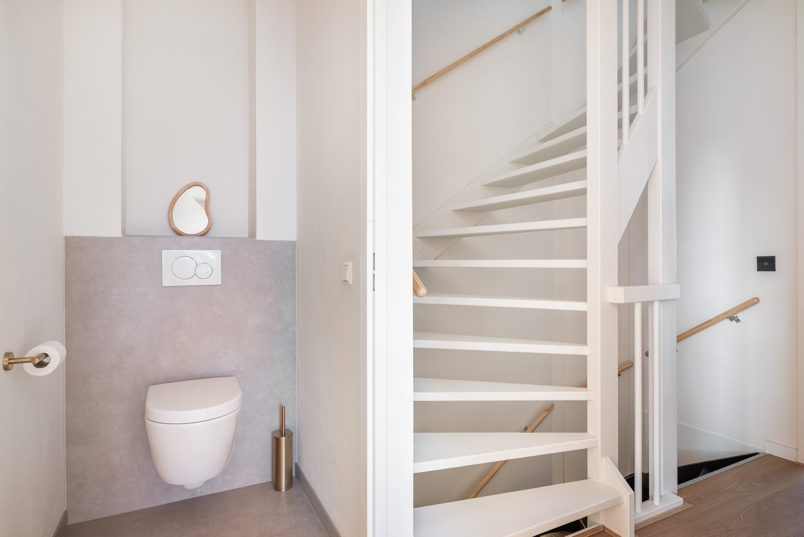 Hal met toilet, meterkast, garderobe, trapopgang en toegang tot woonkamer.