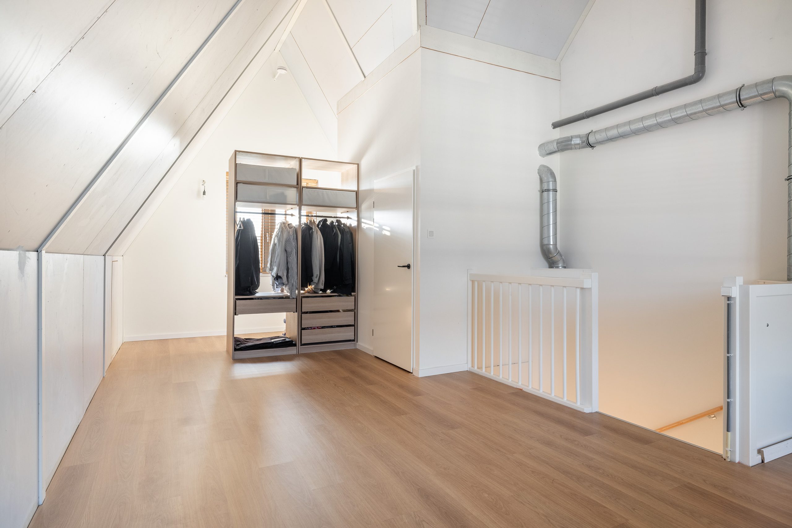 De 2e verdieping van deze woning is thans in gebruik als zeer grote logeerruimte/bergruimte, maar biedt veel potentie. Zo creëer je hier met gemak 2 slaapkamers, eventueel in combinatie met een dakkapel aan de zijkant.