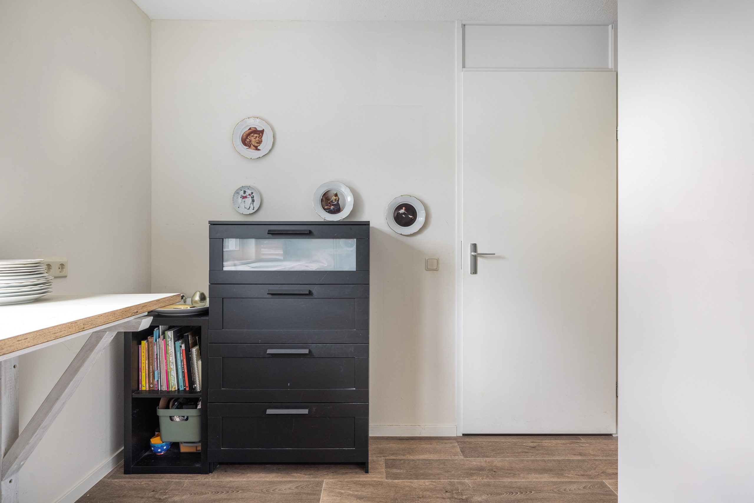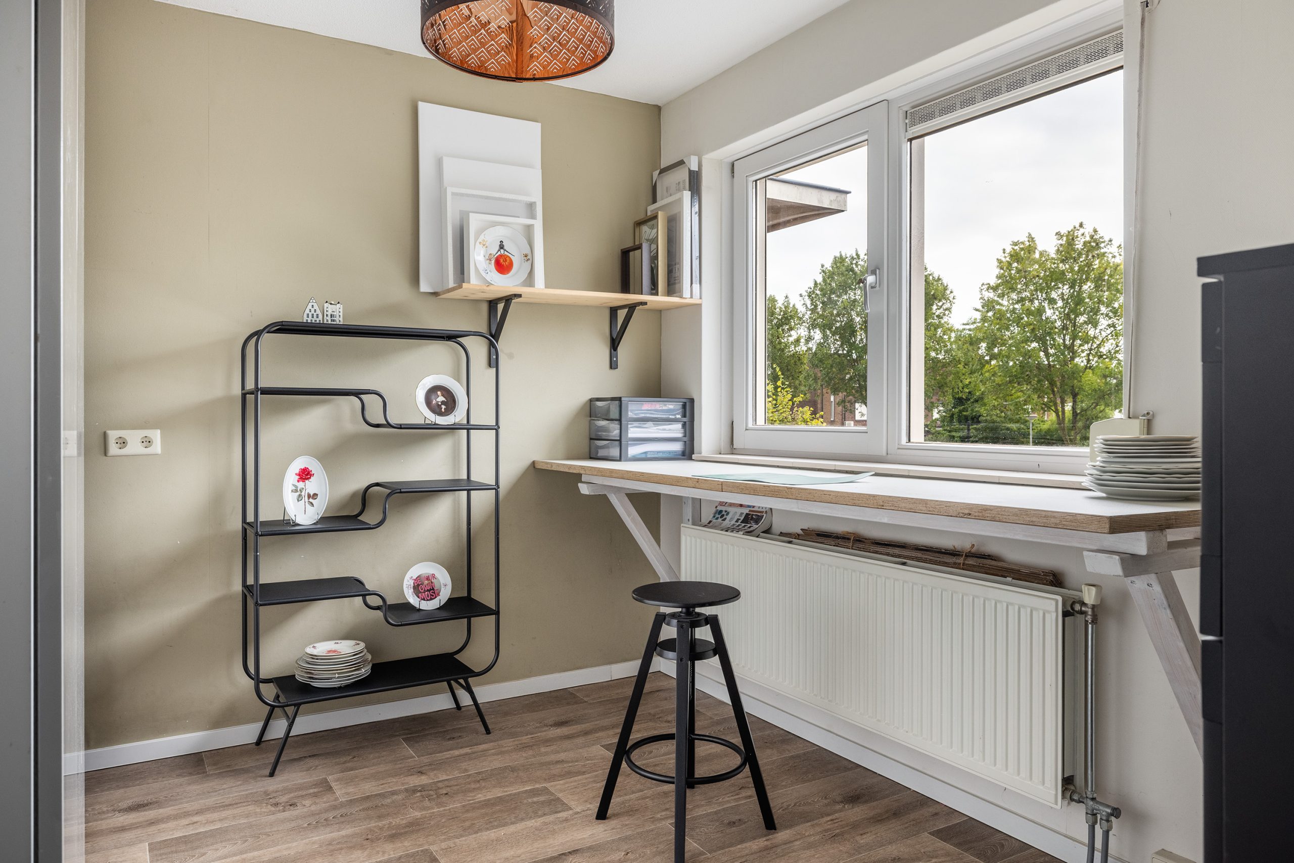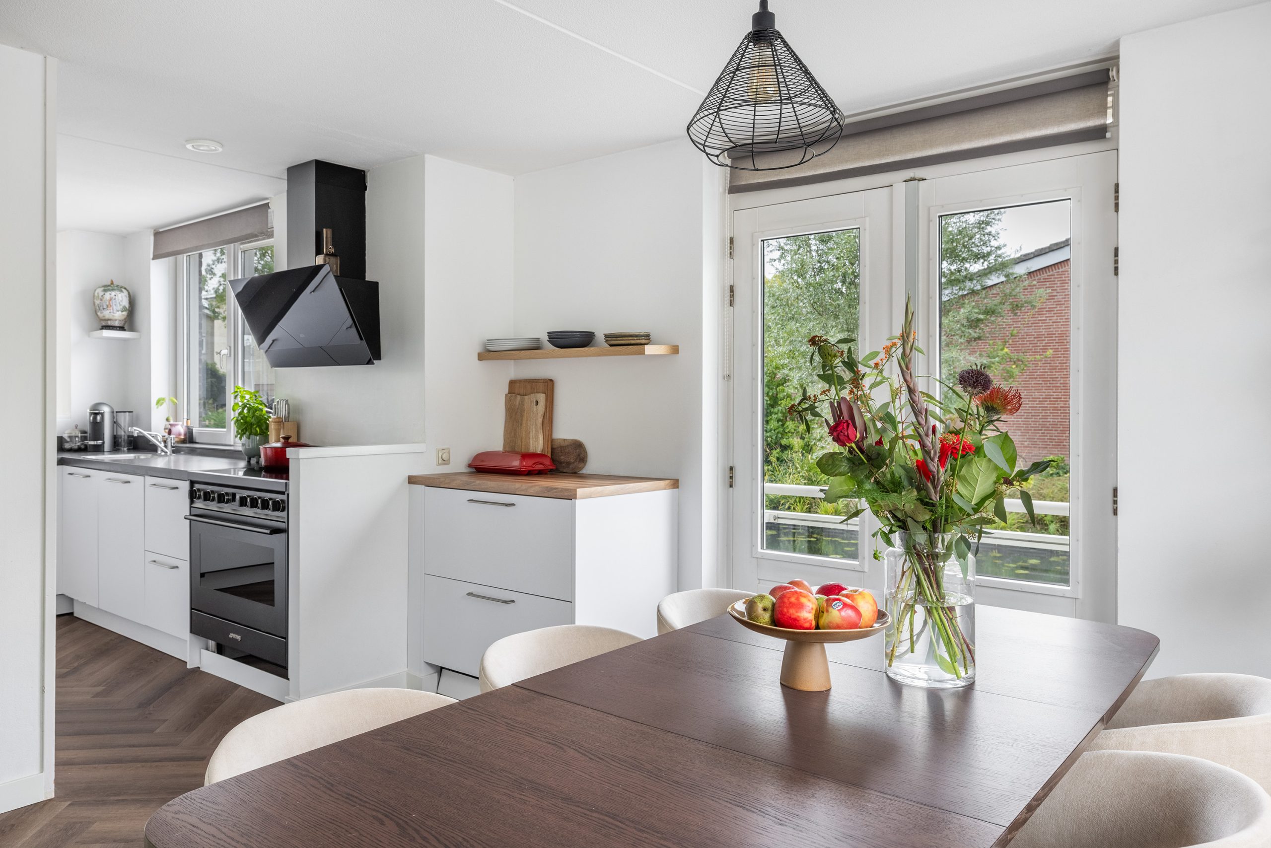 De keuken is door de split-level indeling iets hoger gelegen, waardoor je een goed overzicht hebt over de woonkamer. De keuken in hoekopstelling is in 2016 geplaatst en voorzien van Smeg inductie fornuis met oven (in 2023 vernieuwd), afzuigkap, vaatwasser, kleine koelkast, magnetron, Quooker kraan, close-in boiler en praktische bergruimte.