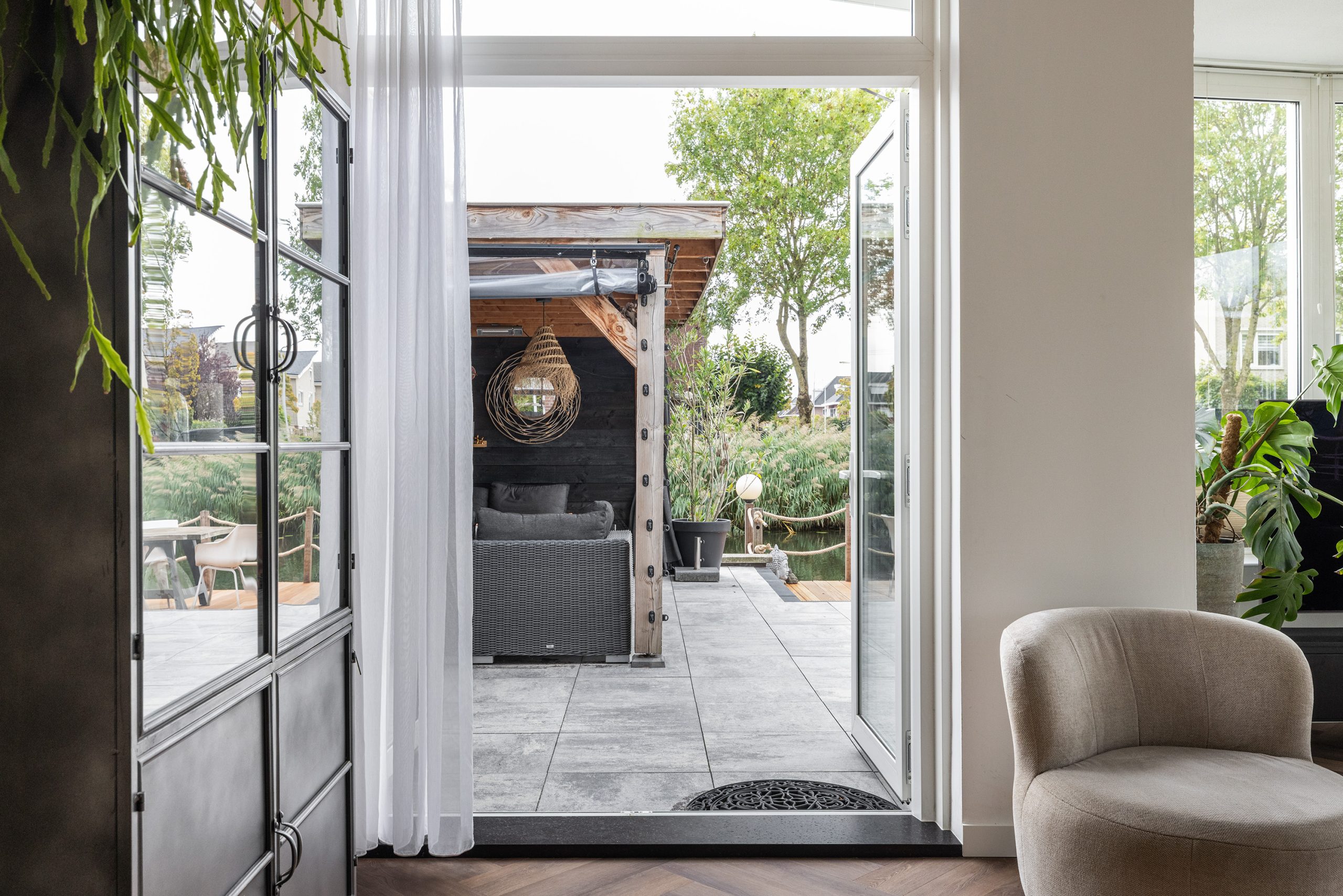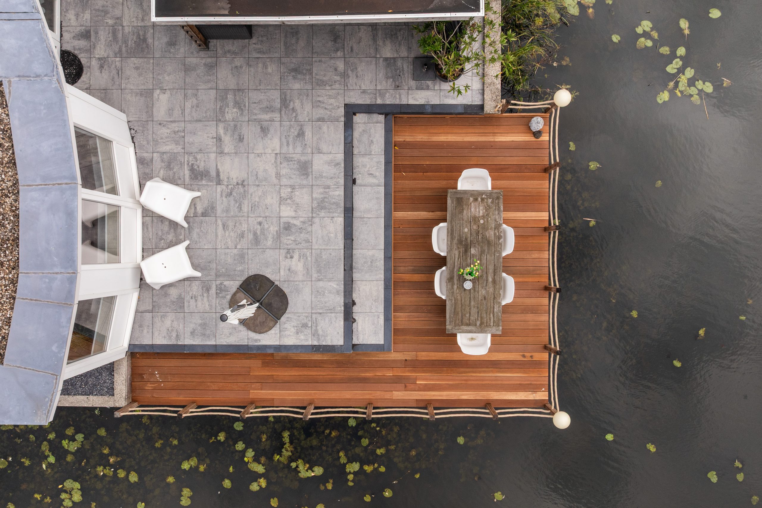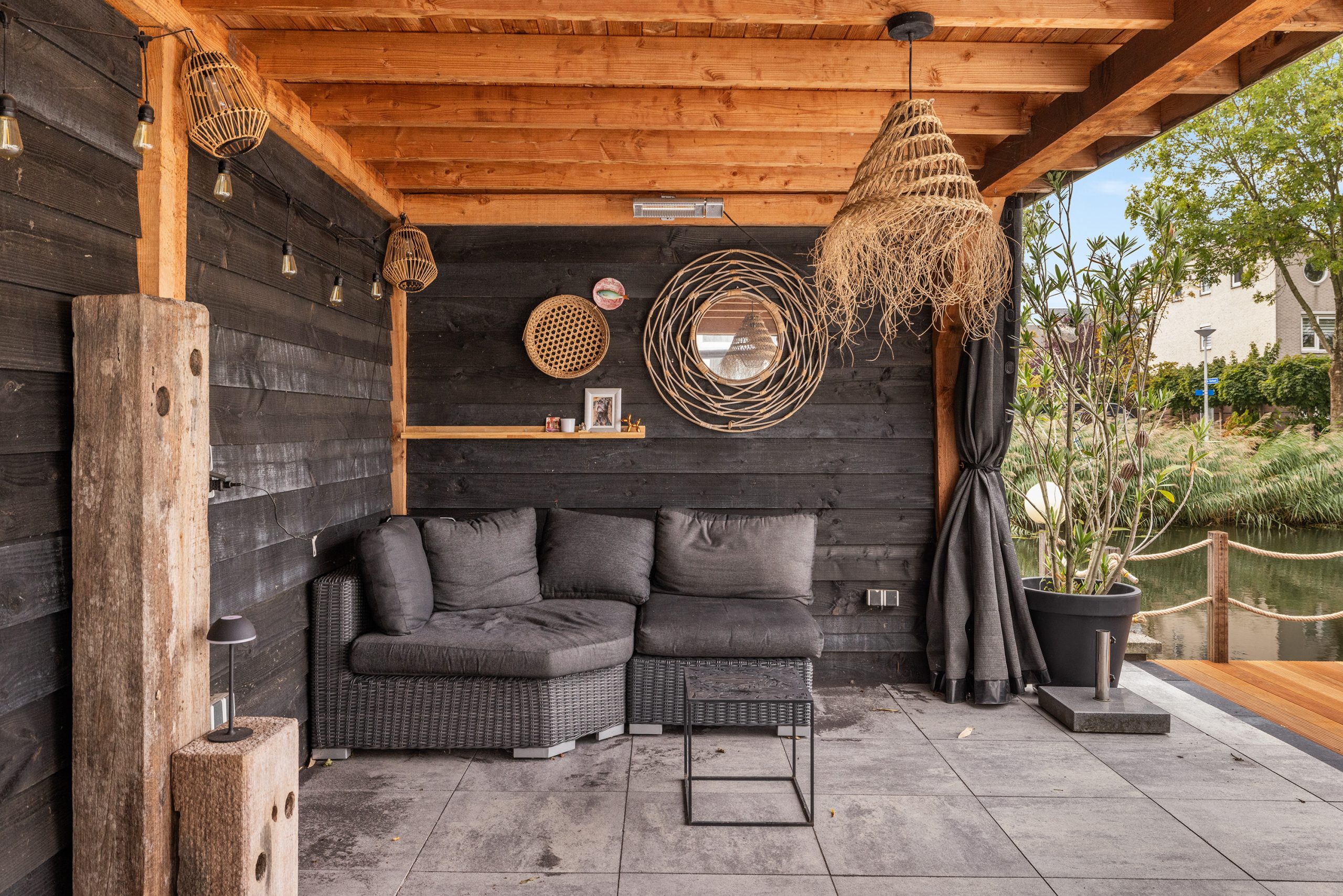De tuin is recent aangepakt, zowel aan voor- als aan achterzijde. Het tegelwerk is strak aangelegd en de vlonderdelen langs de waterkant zijn vernieuwd. Het resultaat is een prachtige tuin aan het water, met wijds uitzicht maar ook veel privacy. Door de ligging op het zuiden kan je hier al vroeg in het jaar buiten zitten en geniet je optimaal van deze royale buitenruimte. In 2020 is een overkapping geplaatst inclusief heater en zeildoeken rondom, waardoor je ook gedurende de koudere dagen naar buiten kunt. Aan de zijkant van de woning beschikt de tuin over een achterom. Hier bevindt zich tevens de opstelplaats voor gasflessen voor de gashaard in woonkamer.