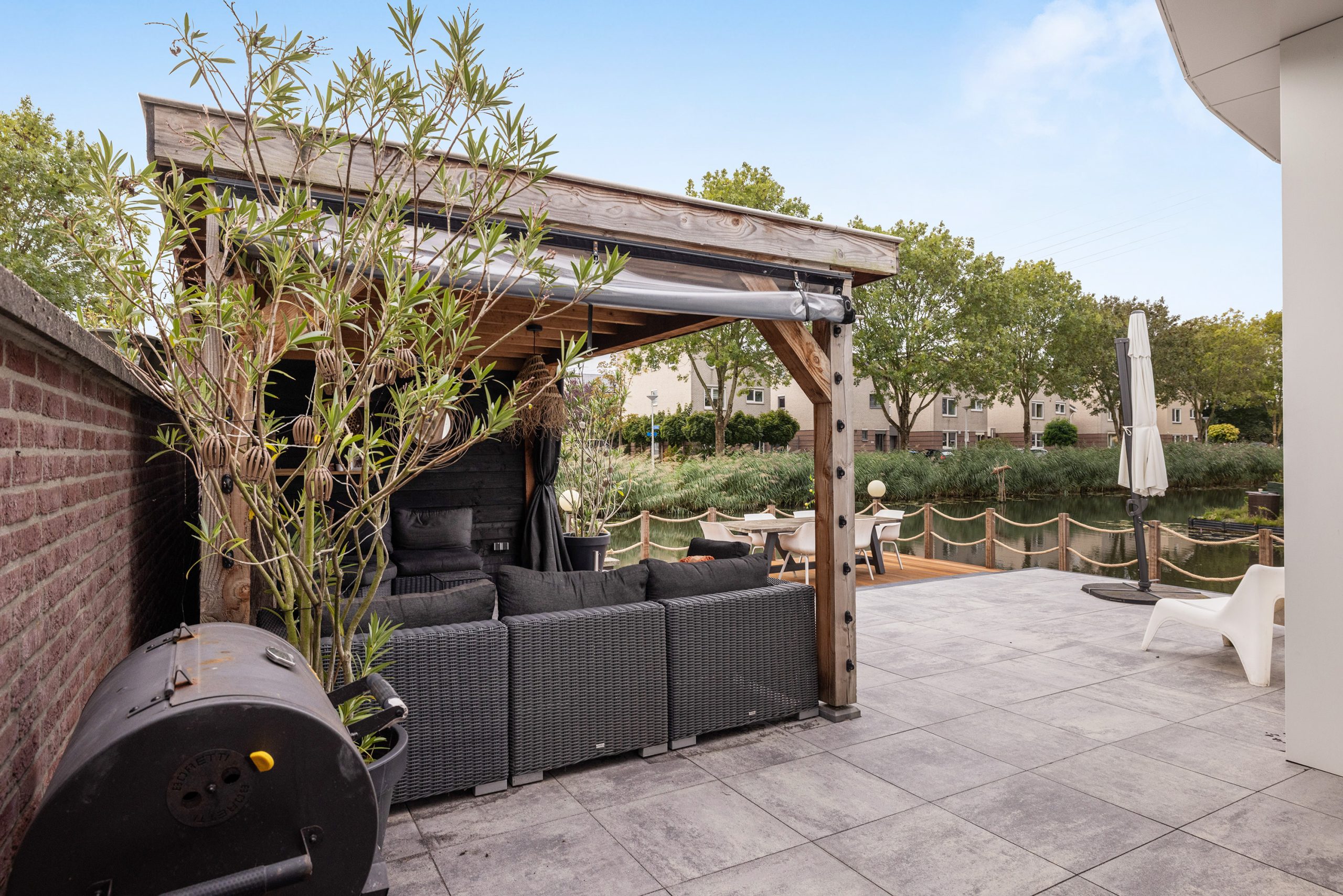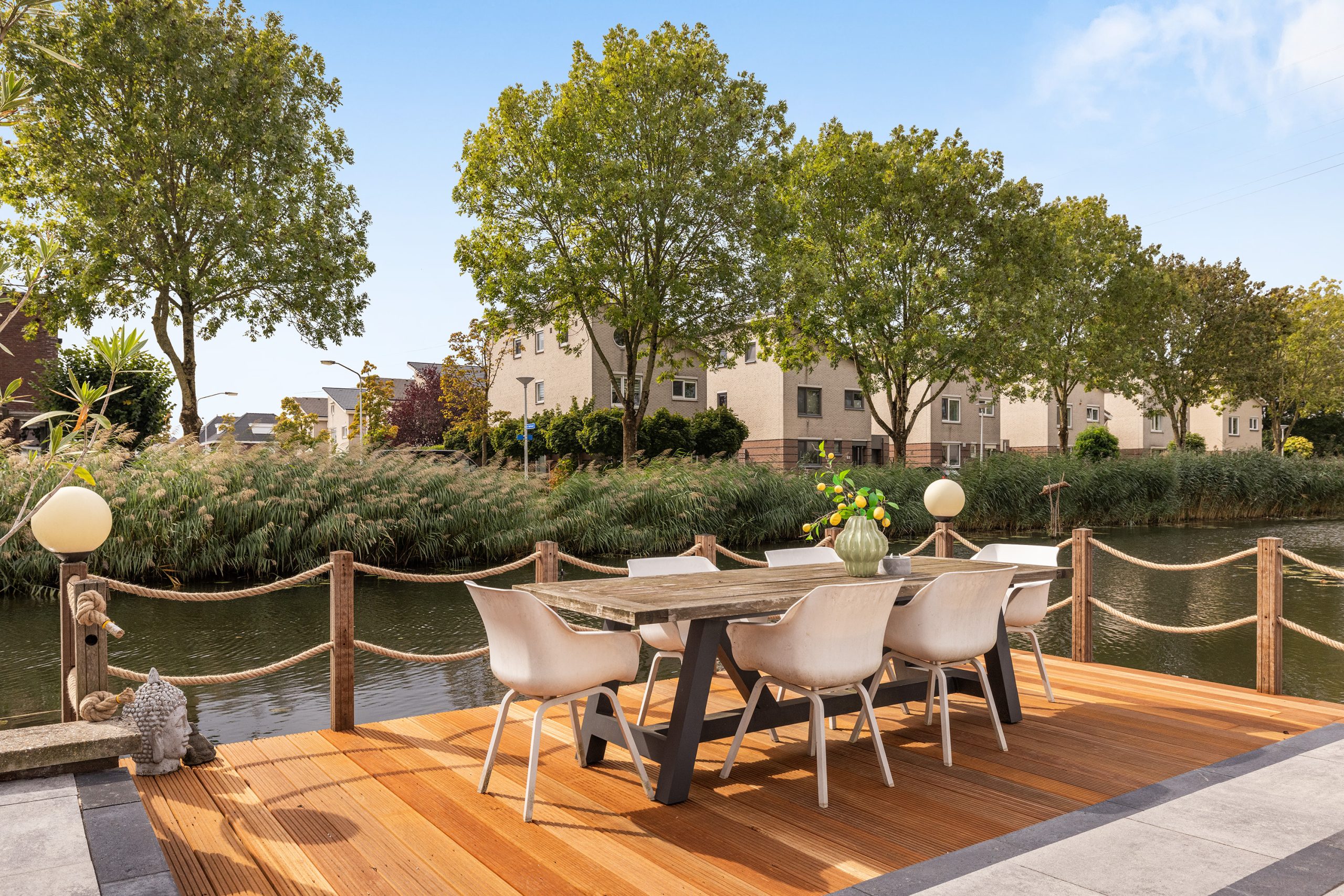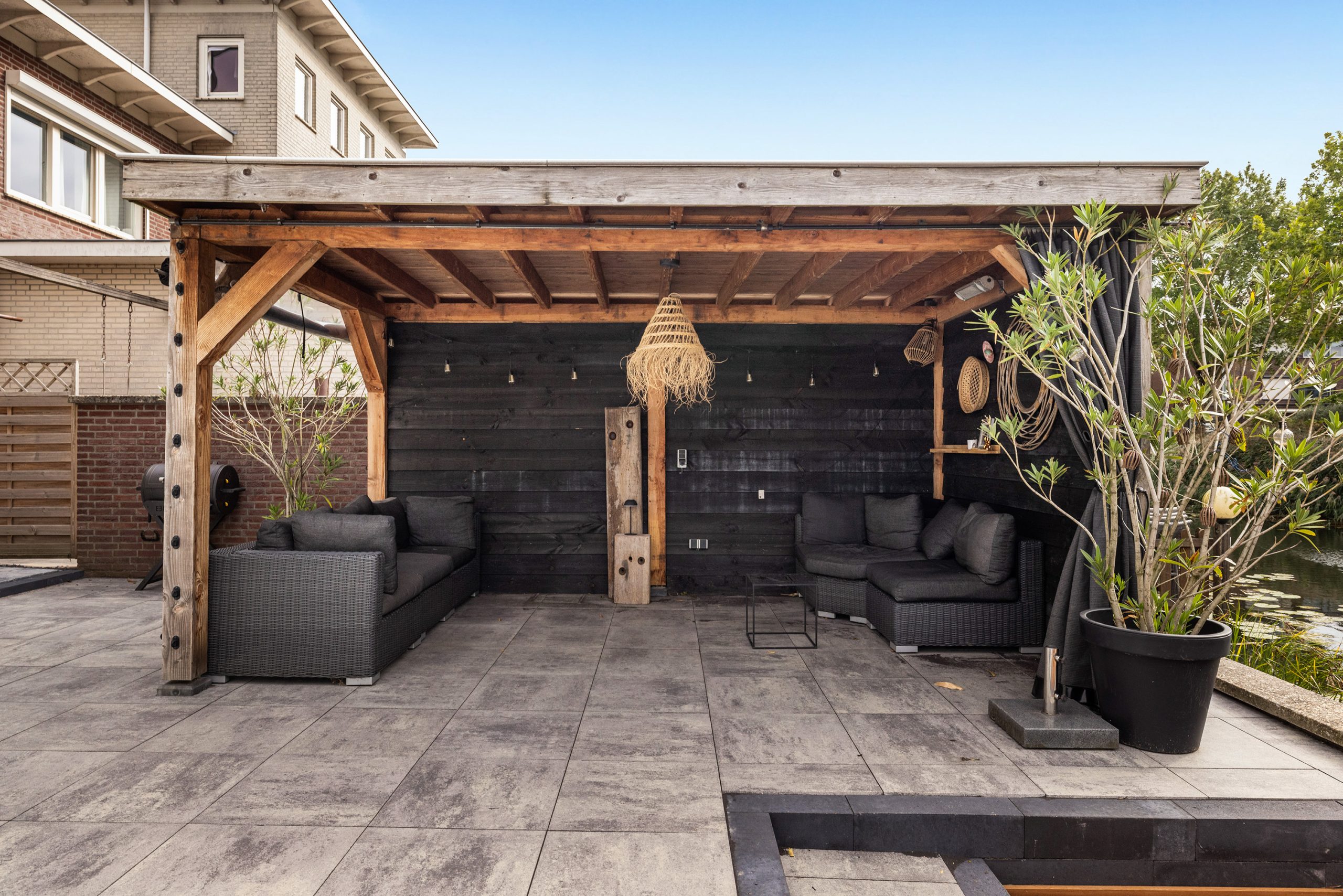 De tuin is recent aangepakt, zowel aan voor- als aan achterzijde. Het tegelwerk is strak aangelegd en de vlonderdelen langs de waterkant zijn vernieuwd. Het resultaat is een prachtige tuin aan het water, met wijds uitzicht maar ook veel privacy. Door de ligging op het zuiden kan je hier al vroeg in het jaar buiten zitten en geniet je optimaal van deze royale buitenruimte. In 2020 is een overkapping geplaatst inclusief heater en zeildoeken rondom, waardoor je ook gedurende de koudere dagen naar buiten kunt. Aan de zijkant van de woning beschikt de tuin over een achterom. Hier bevindt zich tevens de opstelplaats voor gasflessen voor de gashaard in woonkamer.