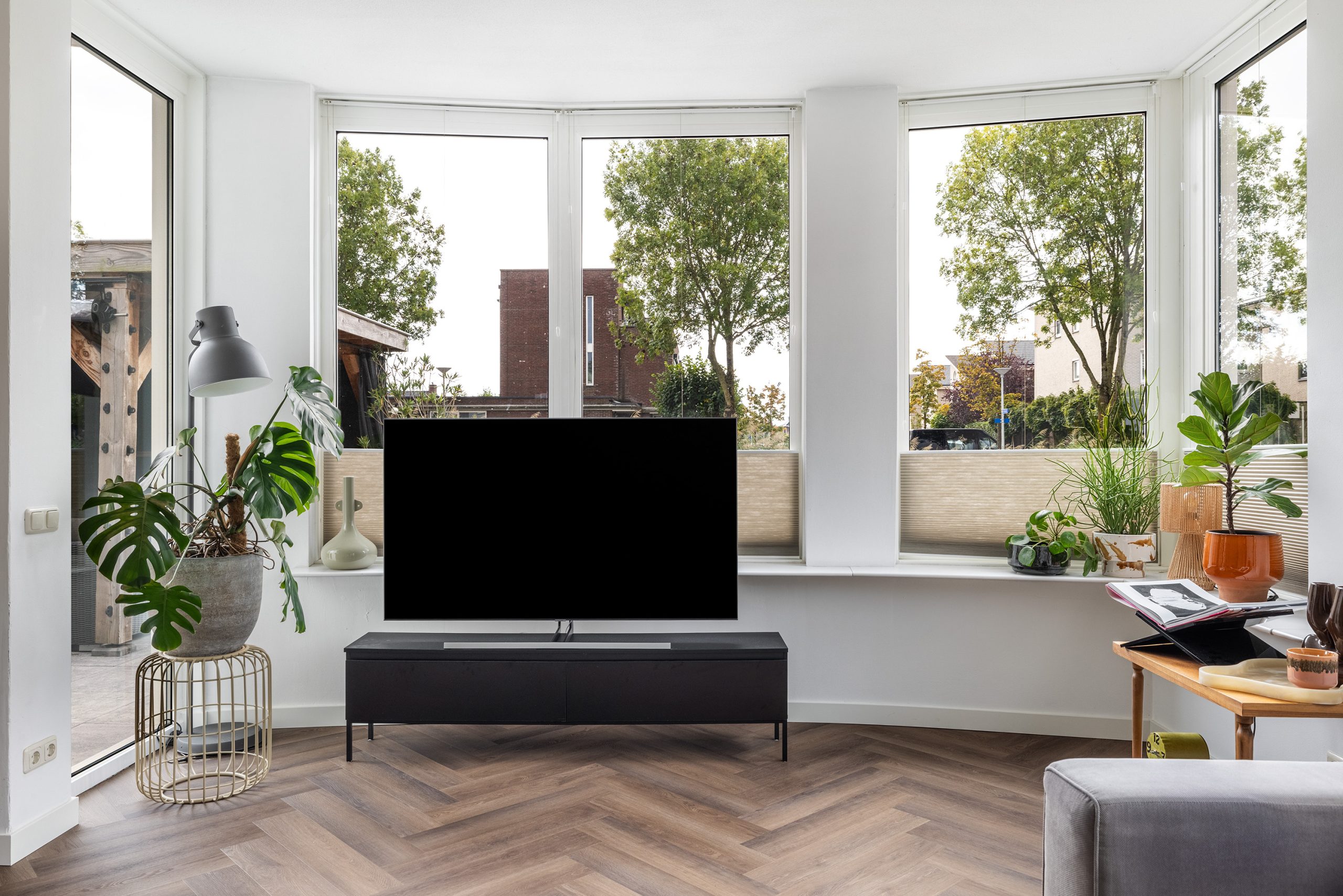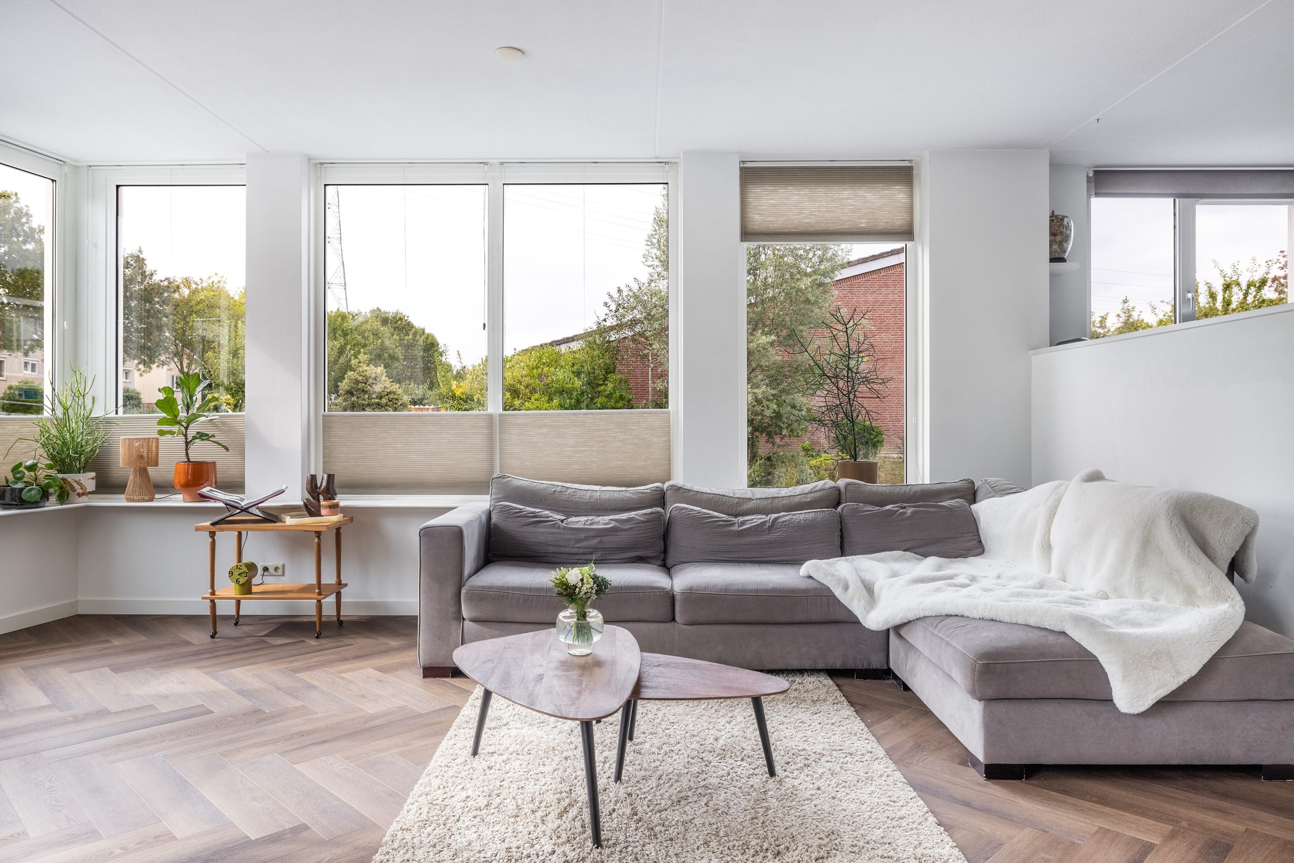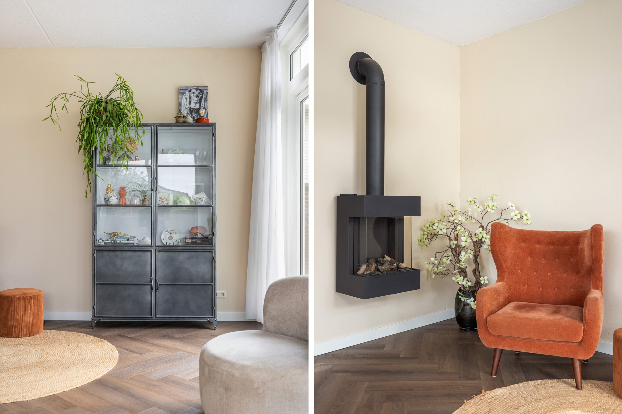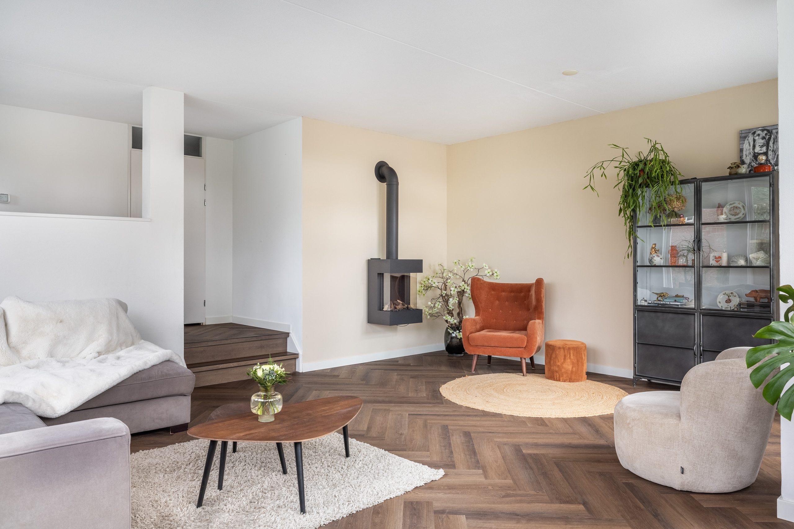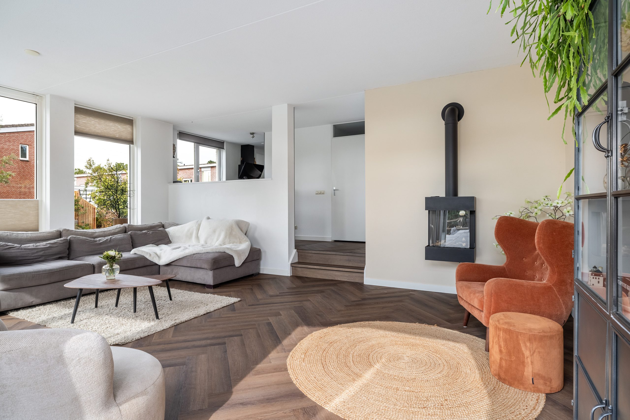 Wanneer je de woonruimte betreedt, is de ruimtelijkheid het eerste wat opvalt. De woonkamer is door de split-level indeling lager gelegen en heeft daardoor een goede plafondhoogte. Door de vele raampartijen heeft deze ruimte een prachtige lichtinval. Verder is de woonkamer voorzien van een PVC-visgraatvloer met vloerverwarming, stucwerk wandafwerking, een moderne gashaard (2023) en dubbele deuren naar de achtertuin (pui in 2022 geplaatst).