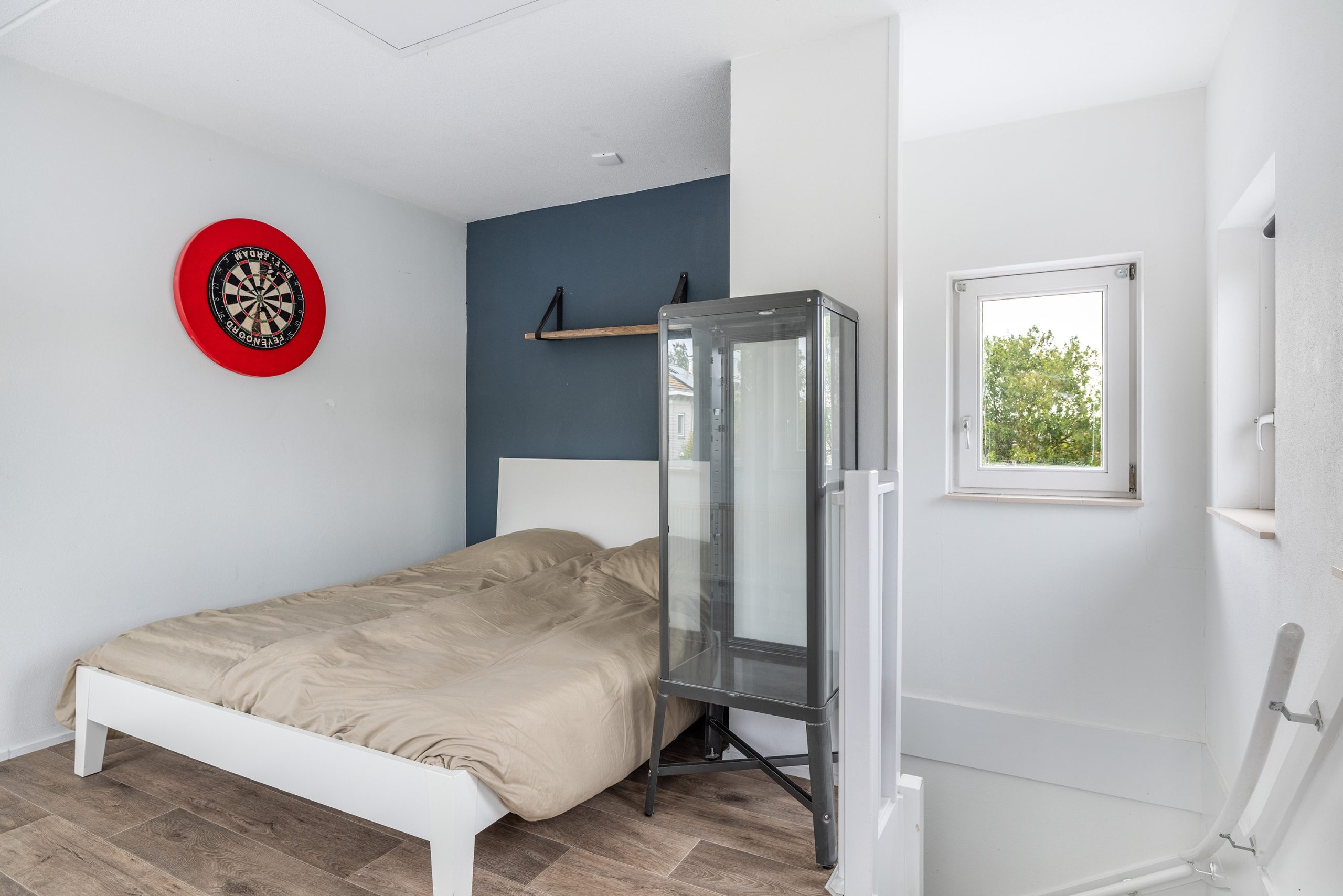 De tweede verdieping is geheel in gebruik als slaapkamer, deze kamer beschikt rondom over draai-kiep ramen en een vinylvloer. Via een Vlizotrap biedt deze kamer toegang tot de praktische bergvliering.