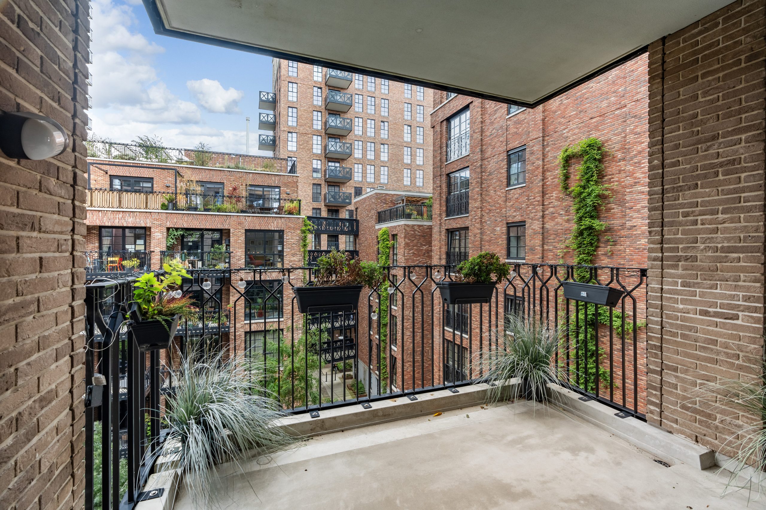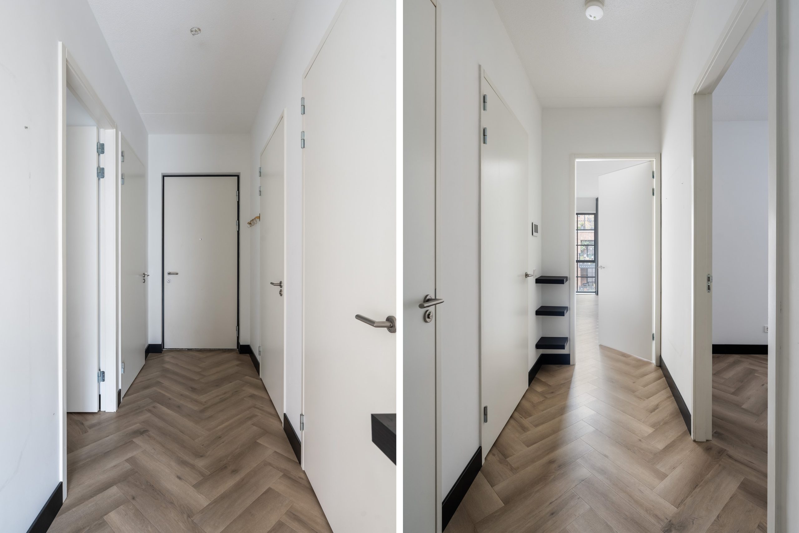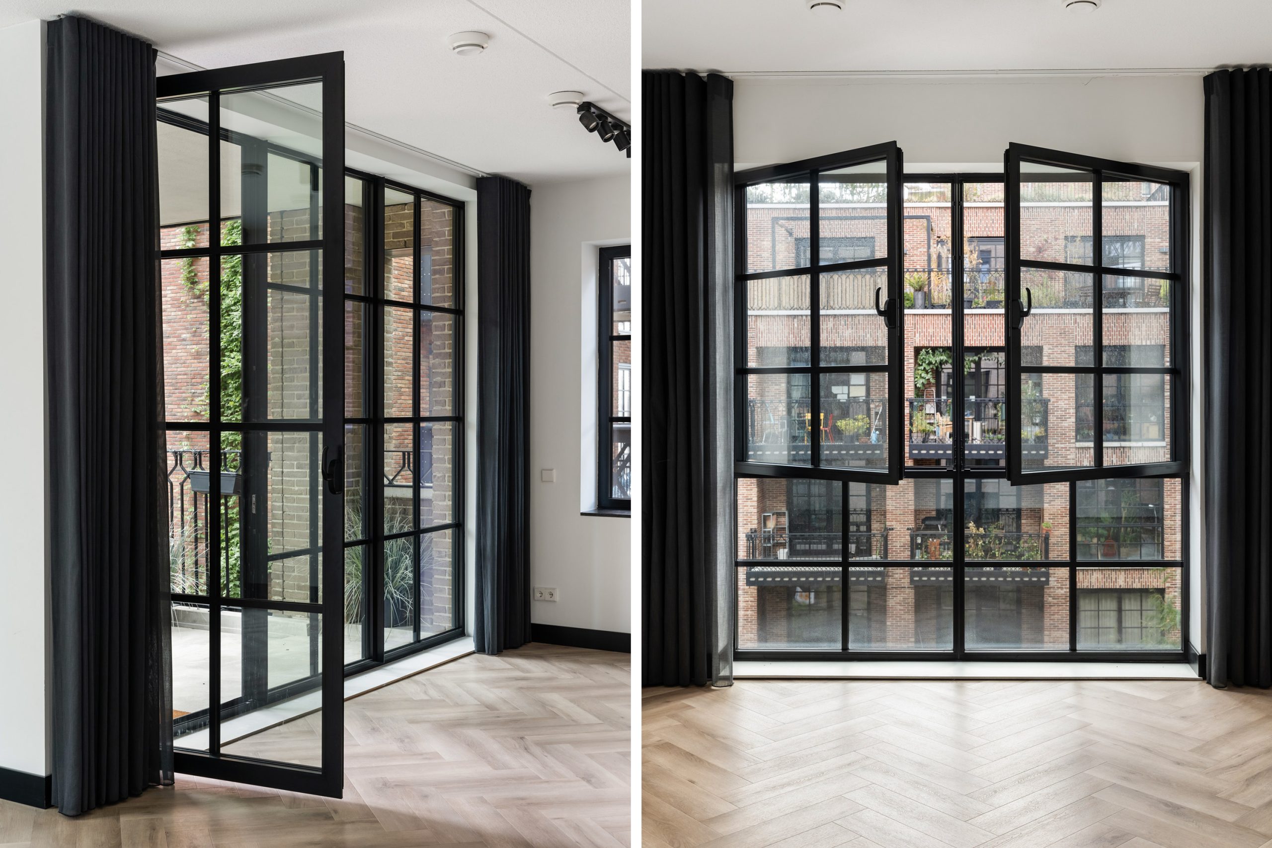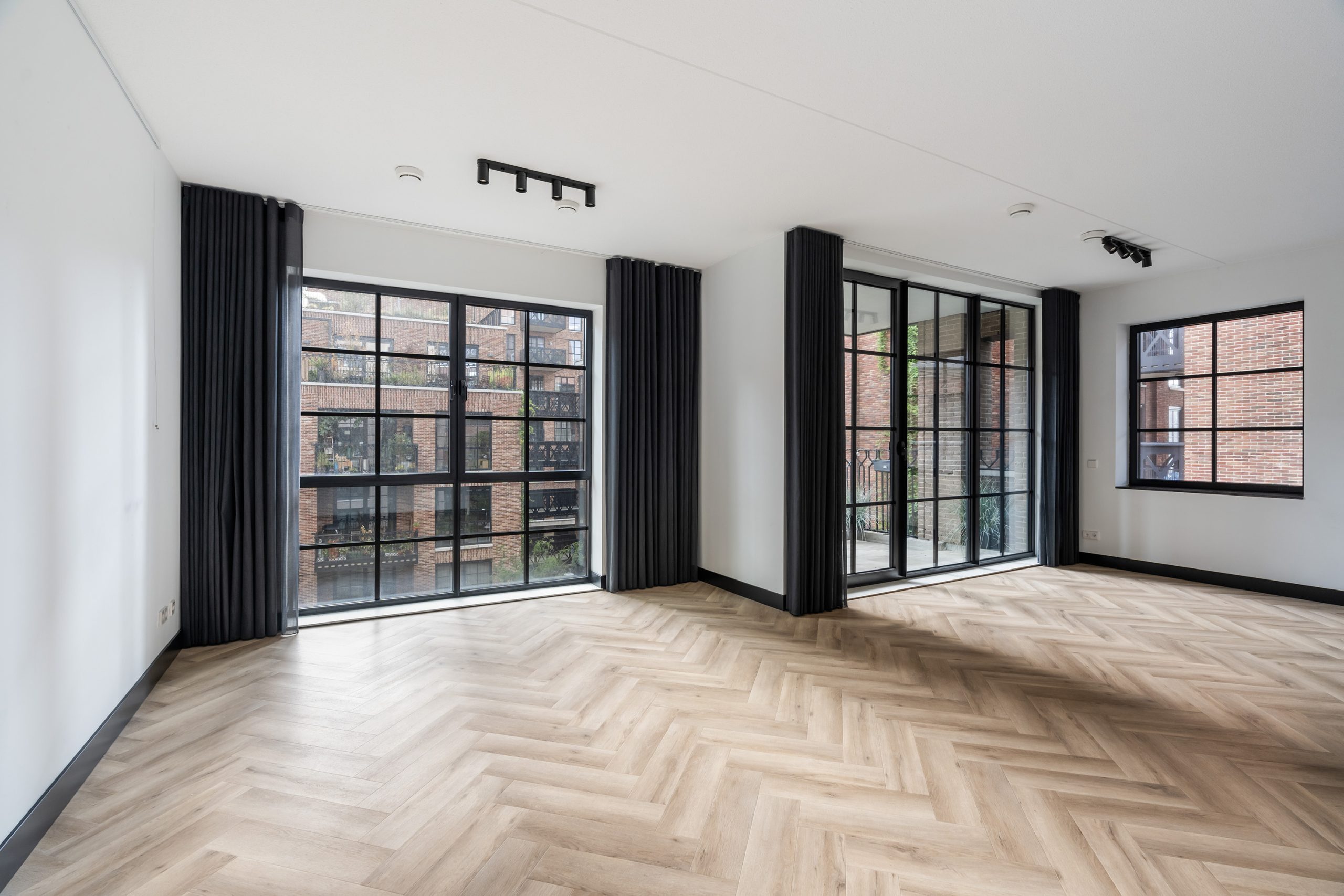 Via de hal heb je toegang tot alle vertrekken. De ruime woonkamer is een echte eyecatcher met grote typische loft-stijl raampartijen, een moderne matzwarte keuken en toegang tot het zonnige balkon op het zuiden. Hier kun je heerlijk genieten van het uitzicht over het hippe Little C en de groene omgeving. De keuken is voorzien van een koelkast met vriezer, inductiekookplaat, afzuigkap, oven en vaatwasser. De speelse witte tegeltjes als achterwand geven het geheel een trendy uitstraling.