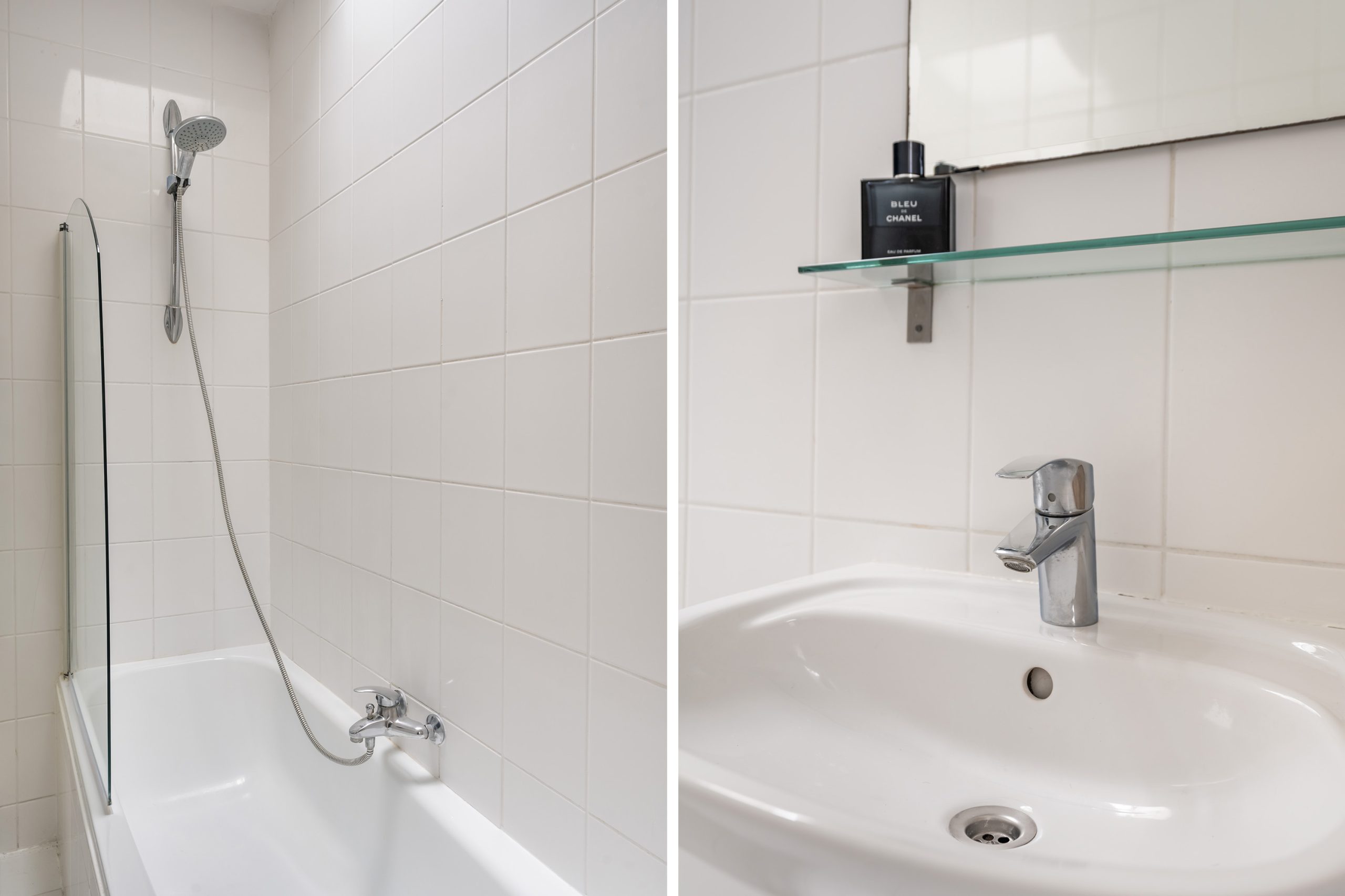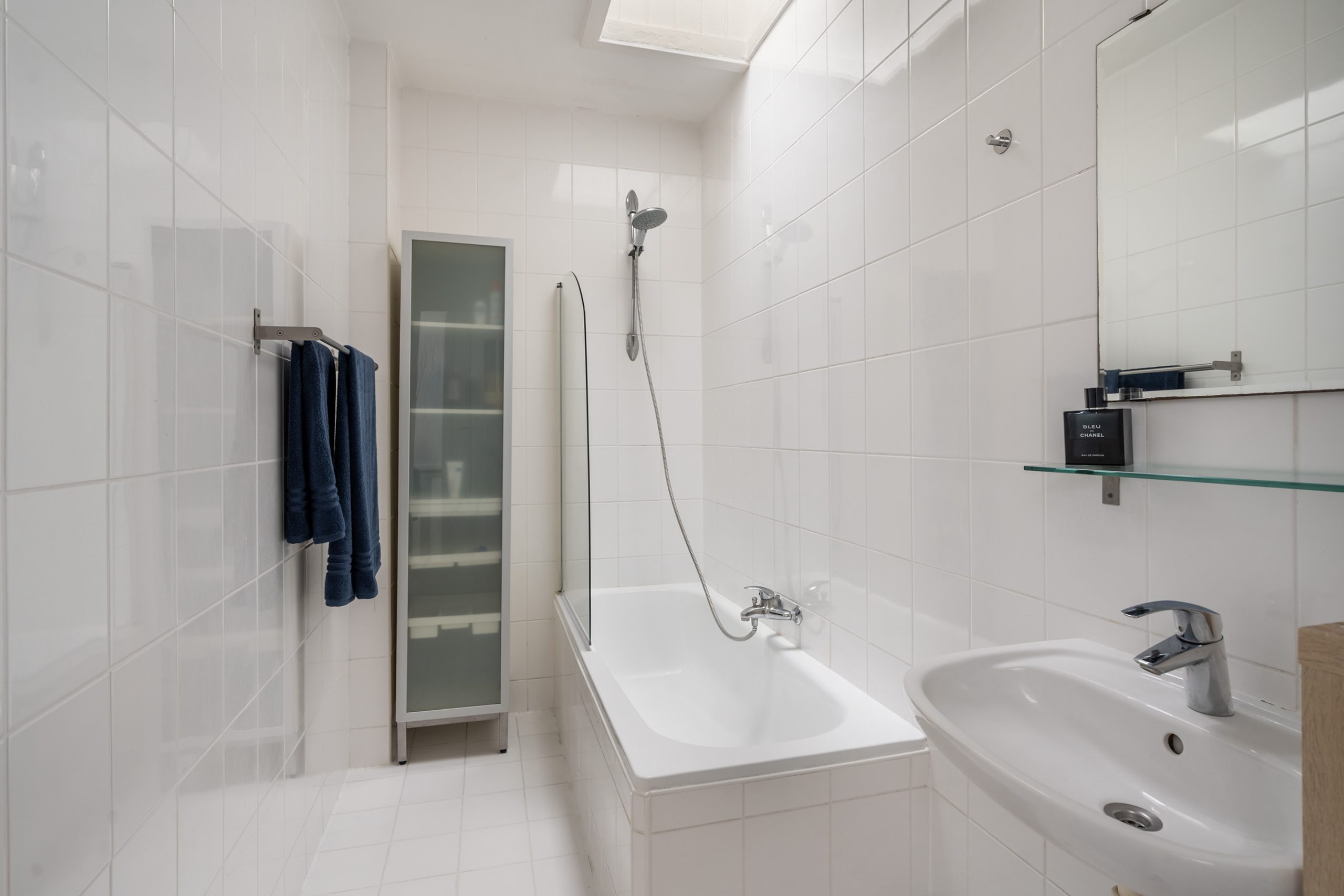 De badkamer is uitgerust met een wastafel en een bad-douchecombinatie, waarbij het natuurlijke licht door het dakraam prachtig naar binnen valt. Daarnaast vind je op de overloop ook de wasmachineaansluiting en de cv-ketel.