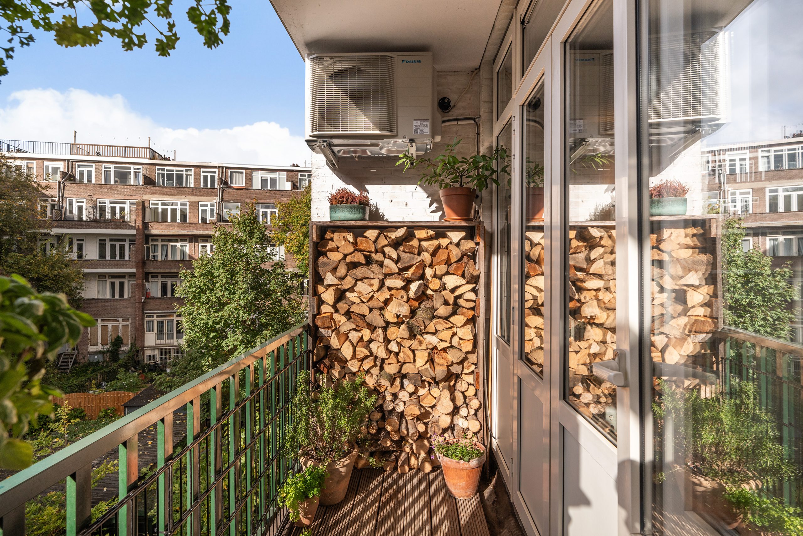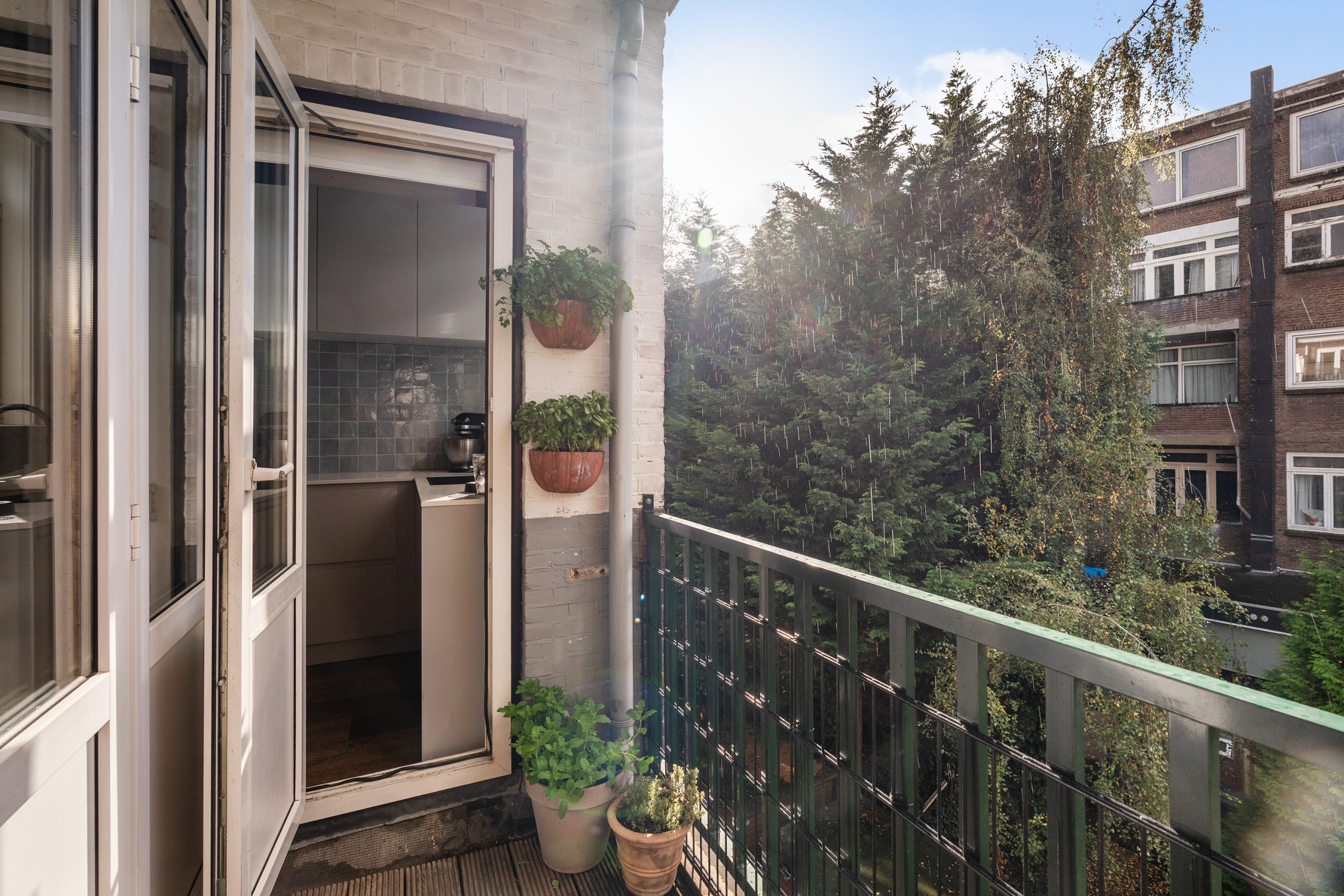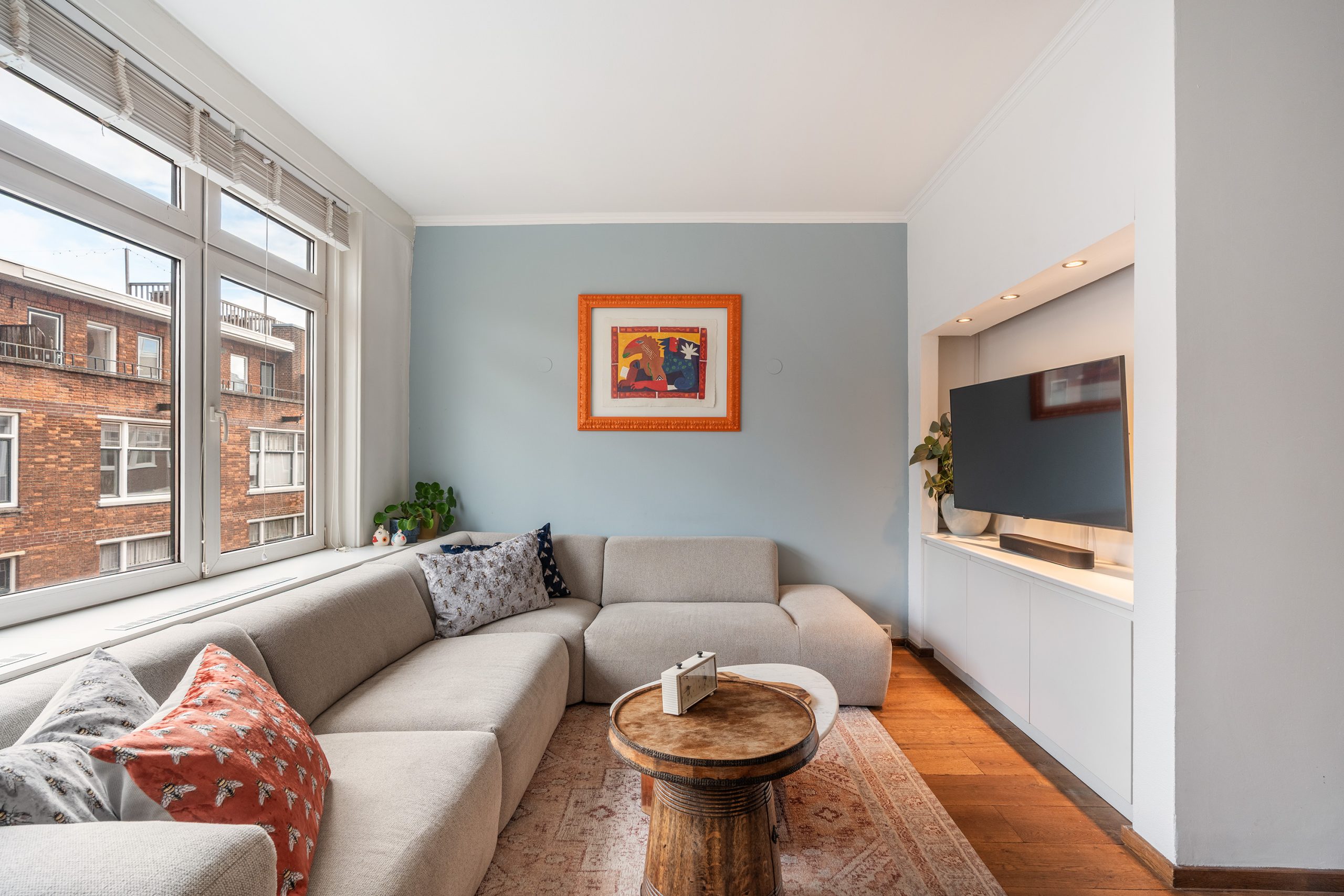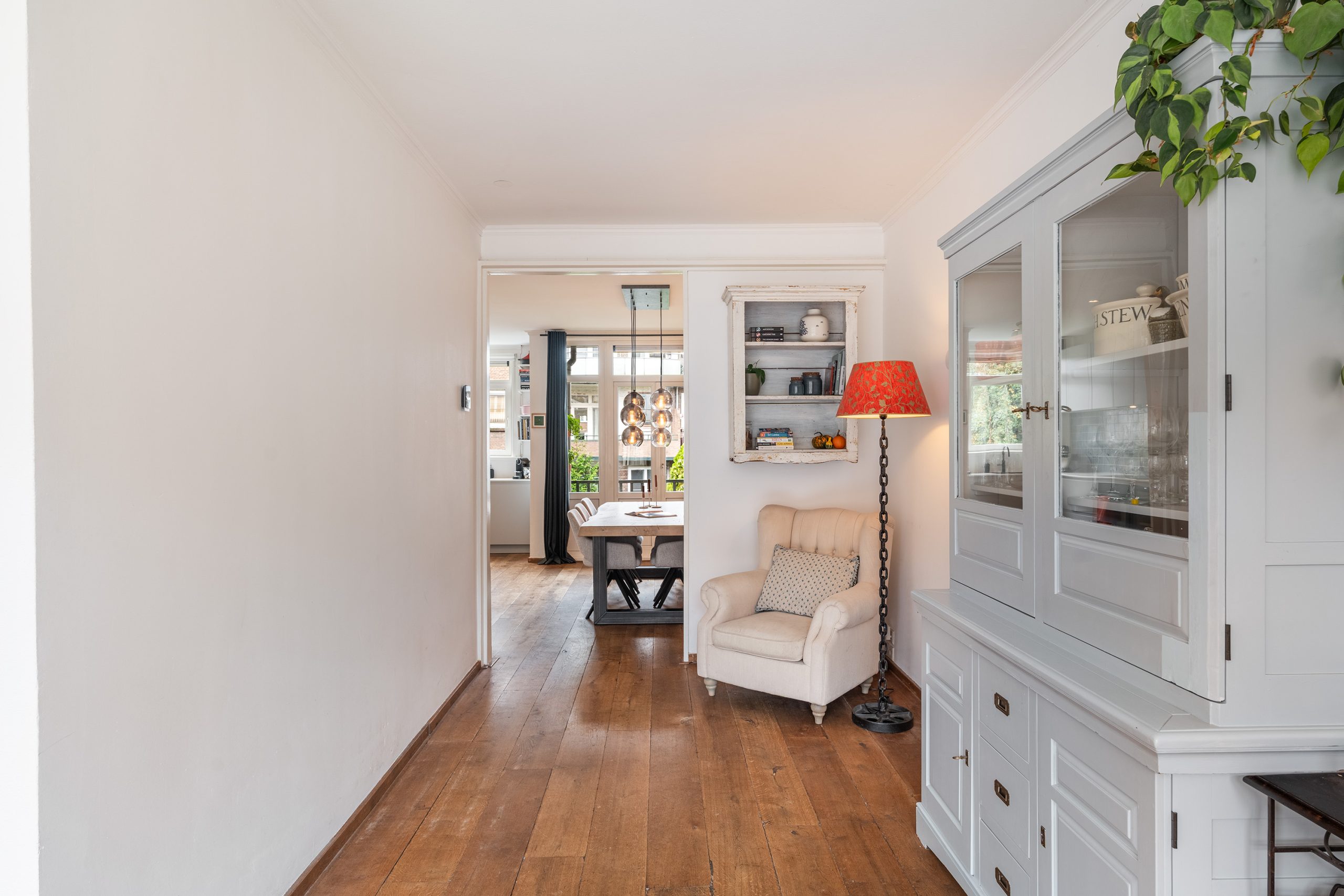 Via de overloop stap je het royale leefgedeelte binnen. Dit bevindt zich over de volle woonlengte en is opgedeeld in een zitgedeelte en een woonkeuken. Op deze manier gaan rust en gezelligheid hand in hand! Het geheel is bijzonder smaakvol afgewerkt met strak gestuukte wanden en een eikenhouten vloer: de perfecte combinatie van comfort en sfeer. Het zitgedeelte aan de voorzijde is voorzien van een nis met luxe inbouwspots, waarbij de (werkende) open haard met stenen schouw een karakteristieke stijl toevoegt en een warme, knusse ruimte creëert. Dankzij de open doorgang blijft het ruimtelijke gevoel behouden, terwijl de grote raampartijen volop natuurlijk licht binnenlaten, waardoor de ruimte uitnodigend aanvoelt. Aan de andere zijde bevindt zich de woonkeuken met genoeg plek voor een grote eettafel. De keuken is uit 2022 en heeft hippe wandtegels. Verder is de keuken uitgerust met een inductiekookplaat, ingebouwde afzuigkap, koel-vriescombinatie, combi-oven, wijnkoelkast en Quooker. De vaste kast biedt extra ruimte om bijvoorbeeld voorraad op te slaan. De openslaande deuren geven direct toegang tot het balkon, waardoor je hier in nauw contact met buiten staat. Door de ligging op het westen is dit de ideale plek om te genieten van de middag- en avondzon. In de hal bevinden zich het separate toilet en de trap naar de derde verdieping.