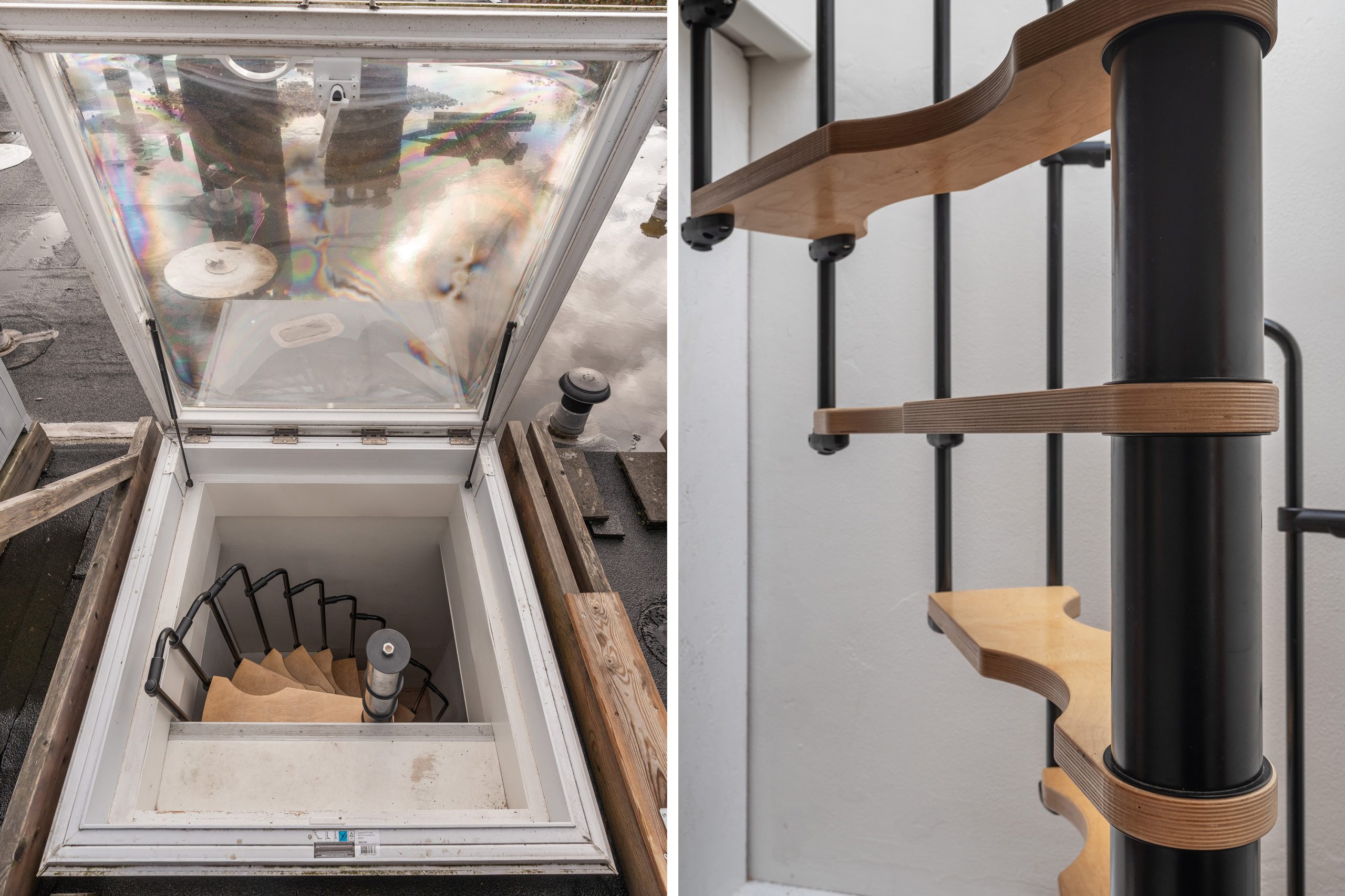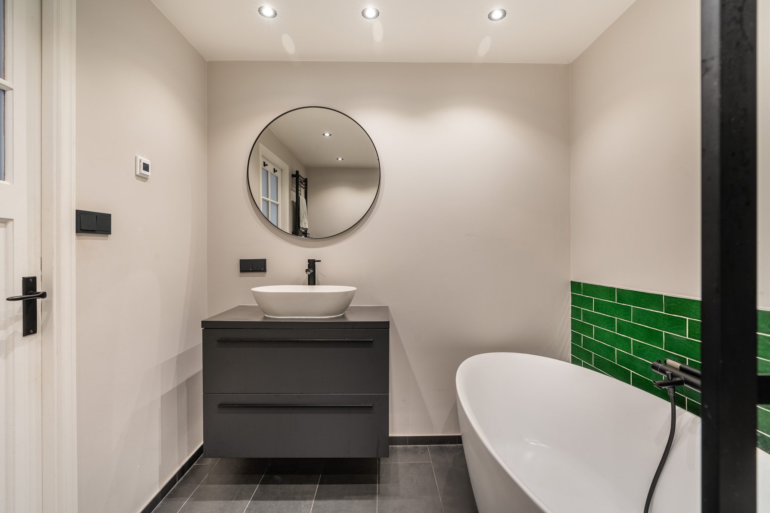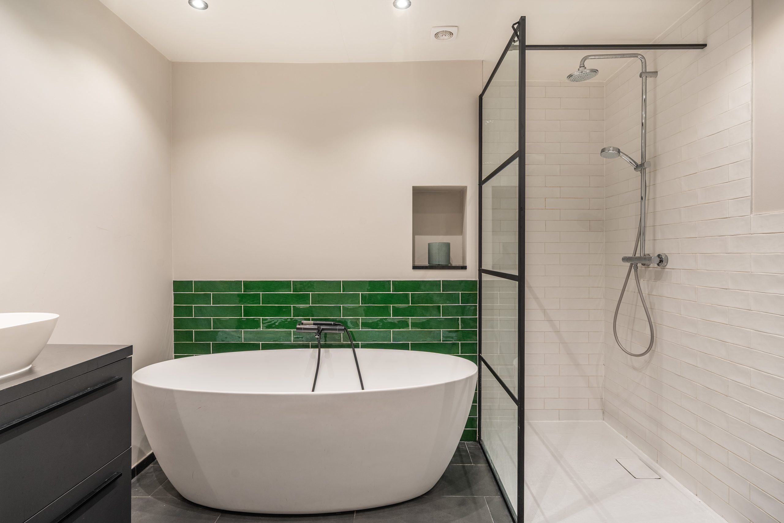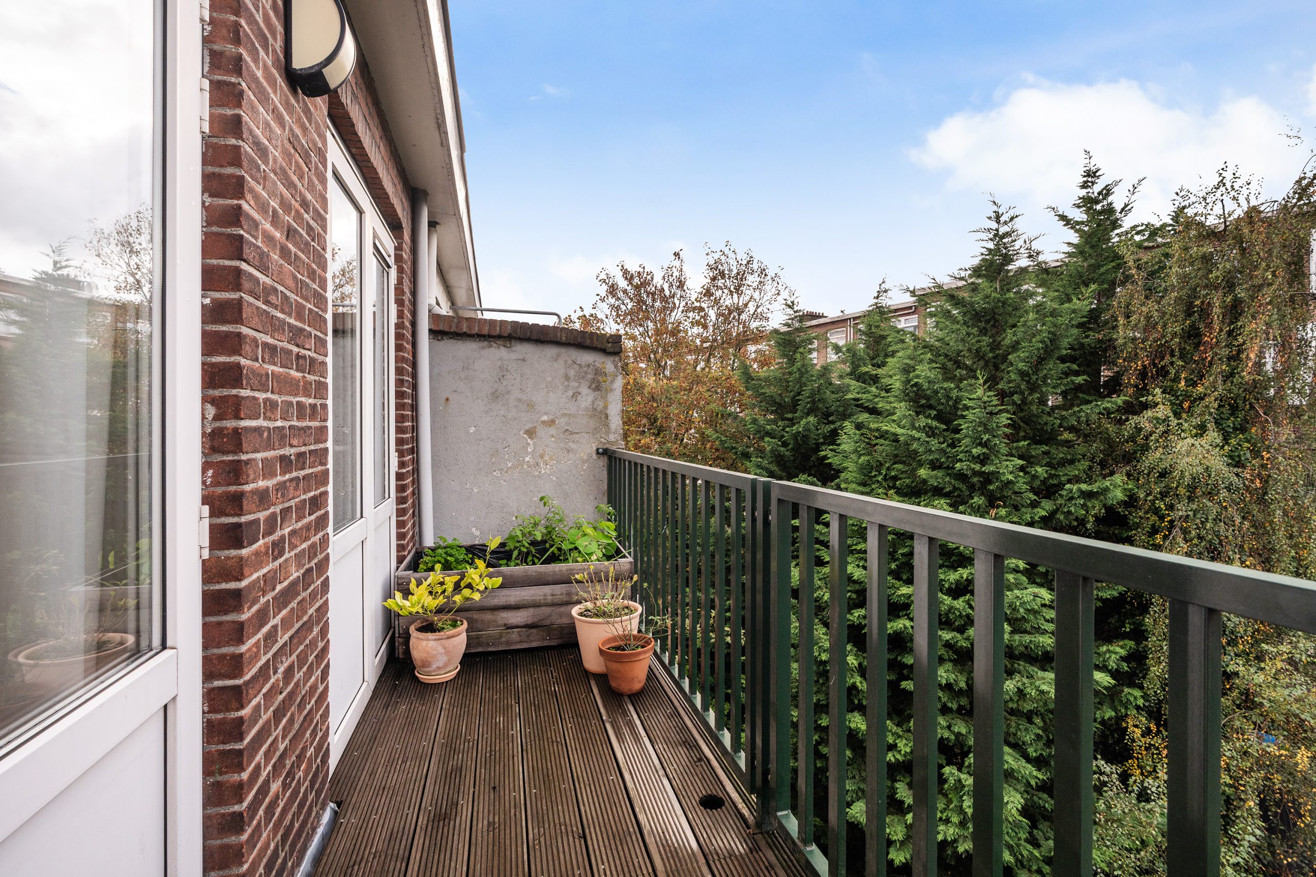 Met de trap kom je op de derde verdieping, waar een lange overloop toegang biedt tot de verschillende vertrekken. Aan de voorzijde liggen twee fijne slaapkamers, beide met toegang tot het pandbrede balkon dat is gelegen op het oosten. Deze kamers bieden volop mogelijkheden en kun je helemaal naar eigen wens inrichten. De hoofdslaapkamer bevindt zich aan de achterzijde van de woning en is een perfecte plek om helemaal tot rust te komen. Vanuit deze kamer stap je zo het balkon op, dat is gelegen op het westen, waardoor je optimaal van de buitenlucht en zon kunt genieten. Aan buitenruimtes heb je dus zeker geen tekort! De badkamer (2021) is tot in de puntjes afgewerkt met stijlvolle spots in het plafond, een wastafel met zwevend meubel, een vrijstaand bad, een ruime inloopdouche, een toilet en een handdoekradiator. Op de overloop, achter de kast met schuifdeuren, bevinden zich de aansluitingen voor wasmachine en droger, evenals de cv-opstelling. Via de vaste trap omhoog is het dakterras te bereiken.