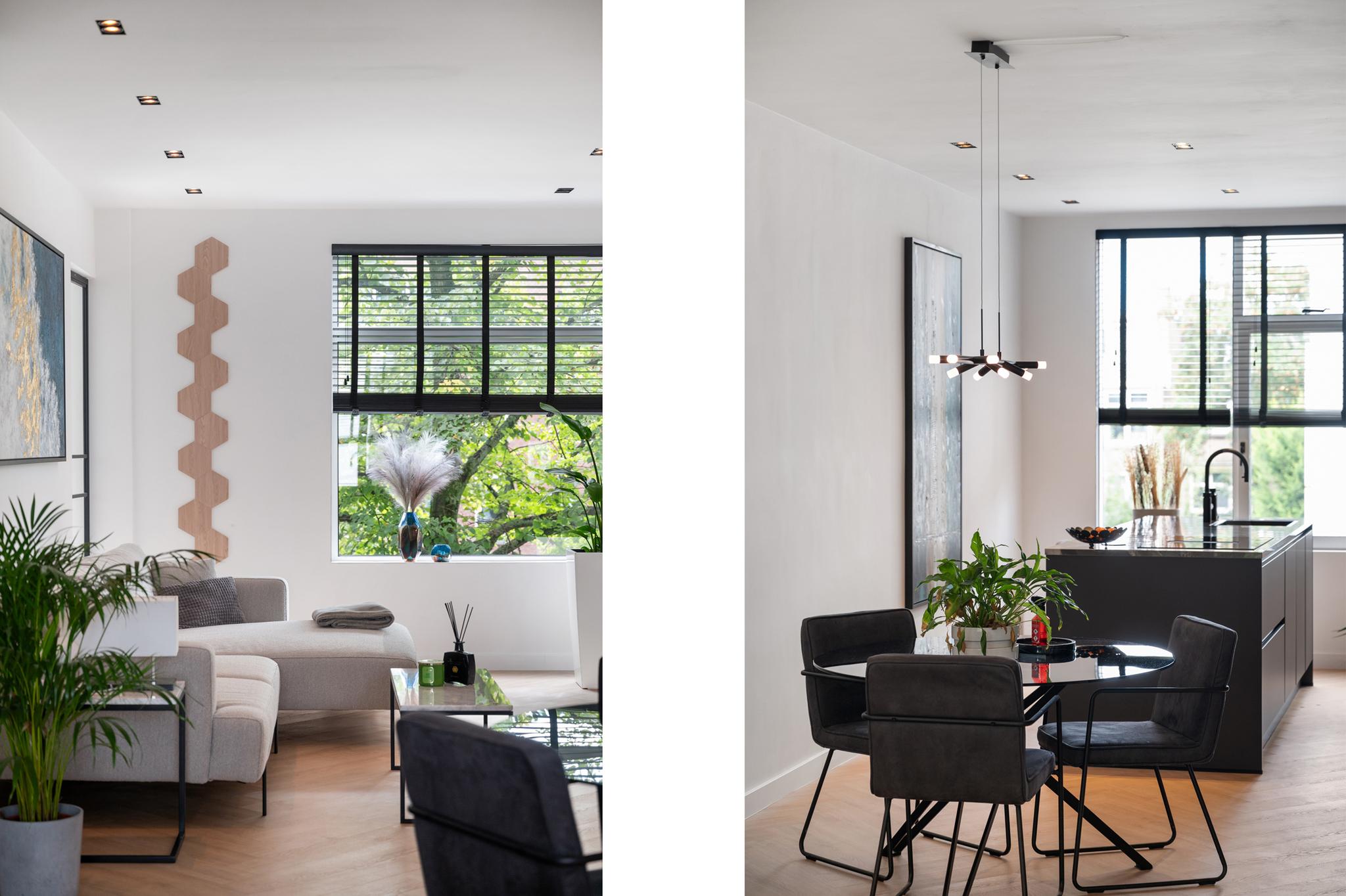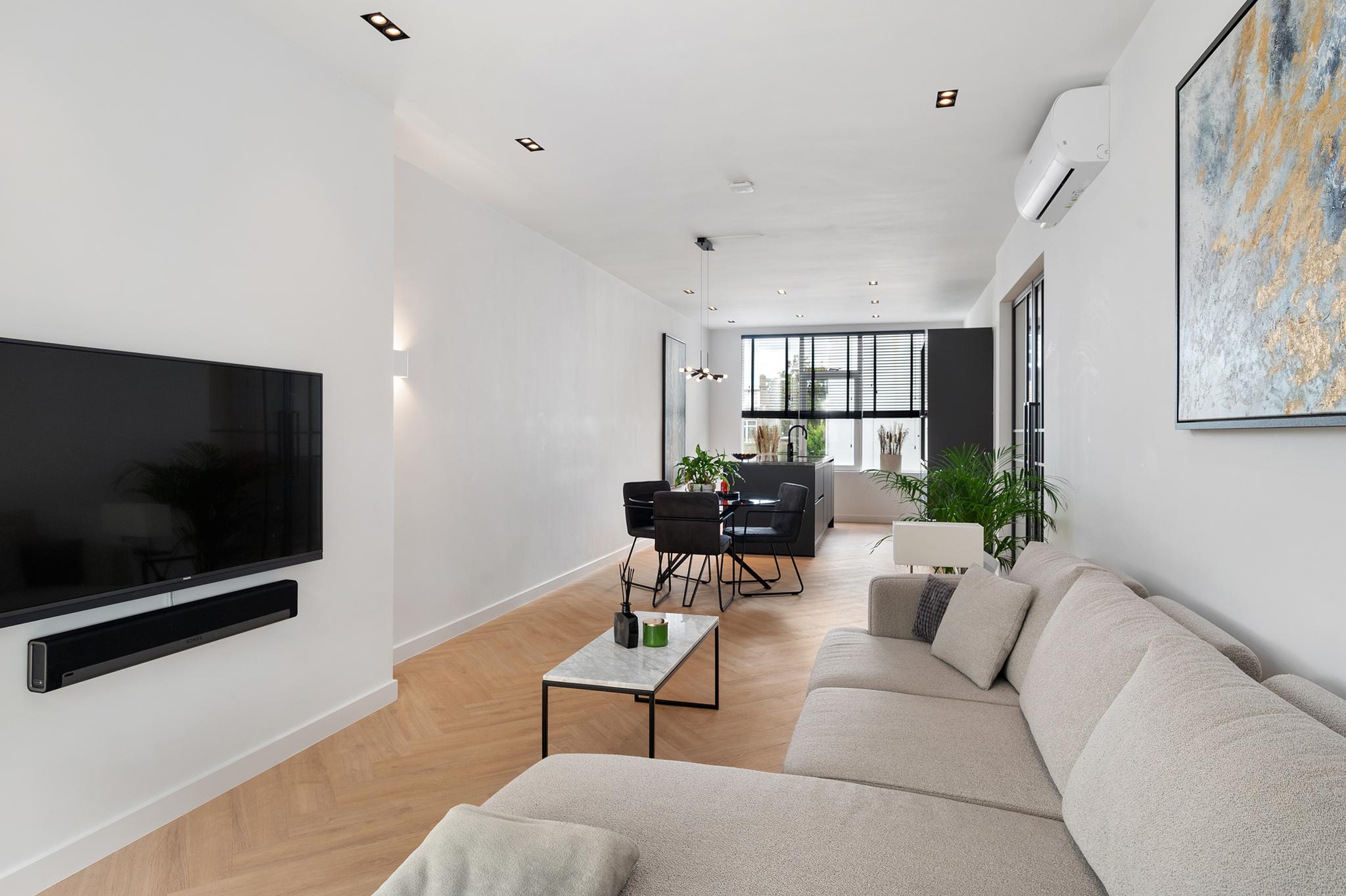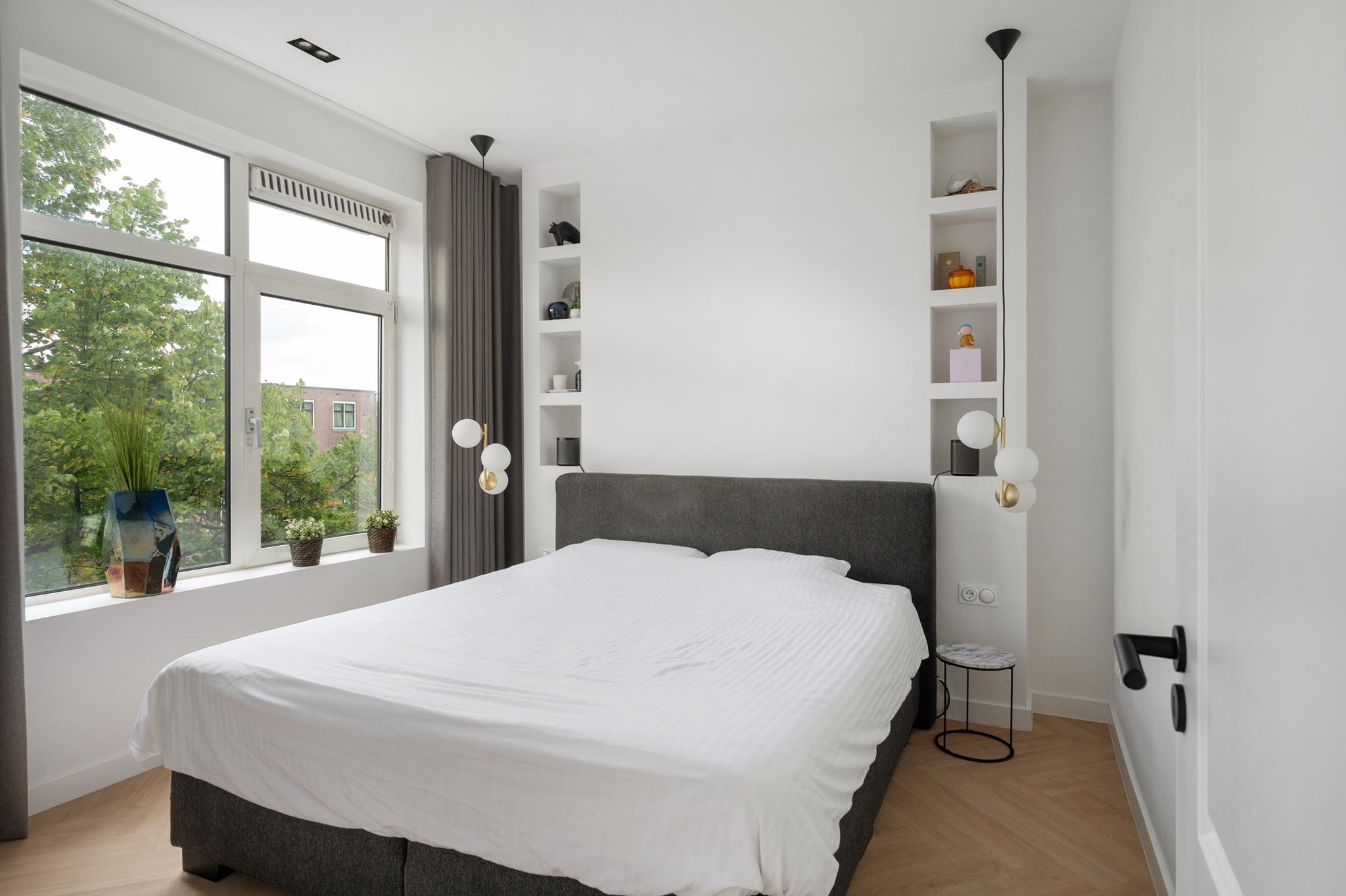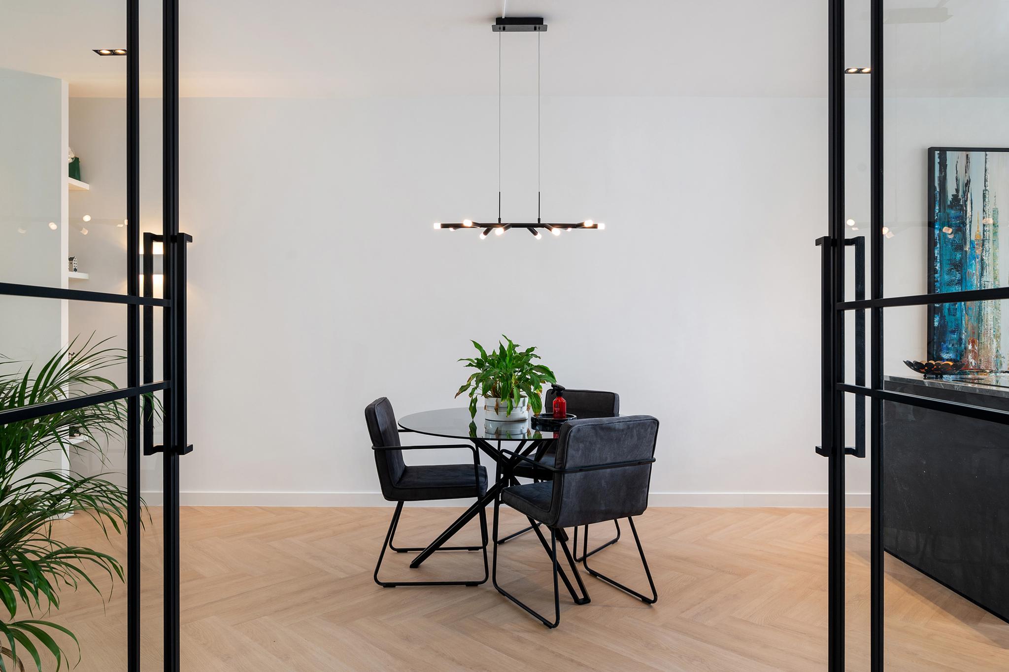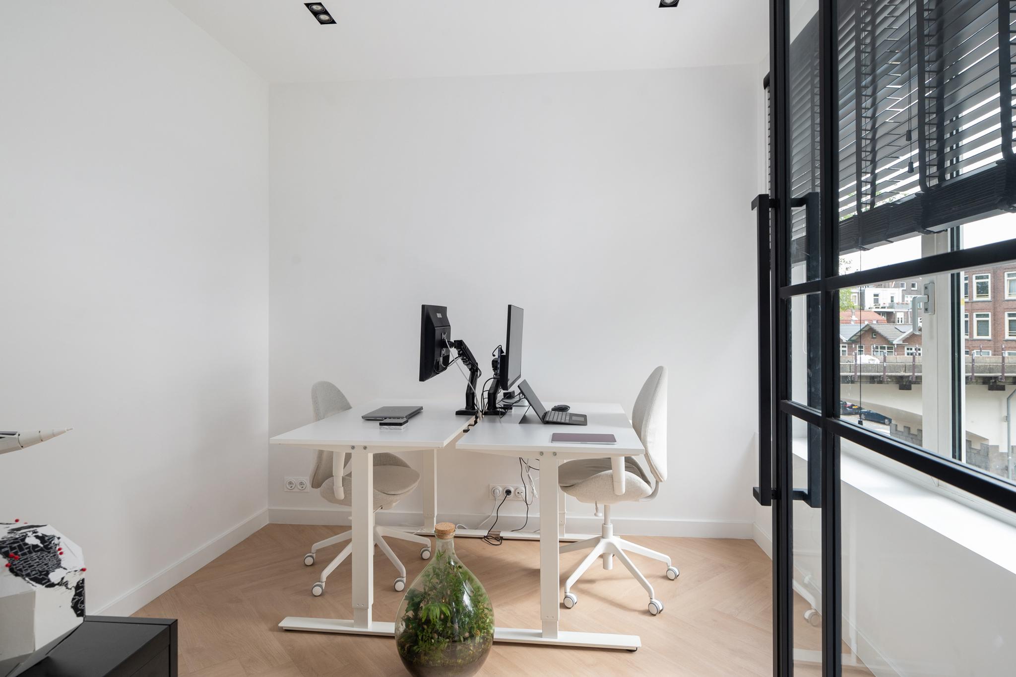 Bij binnenkomst op de tweede verdieping word je direct verwelkomd door de lichte doorzonkamer, waar de sfeervolle woonkamer en de moderne keuken met een indrukwekkend kookeiland meteen in het oog springen. De keuken is niet alleen een echte eyecatcher, maar ook uitgerust met de nieuwste apparatuur, waaronder een inductiekookplaat met geïntegreerde afzuiging, vaatwasser, combi-oven, koelkast, vriezer en een kokend waterkraan. Het strakke, zwarte design in combinatie met hoogwaardige materialen, zoals het keramieken werkblad, geven de keuken een luxe uitstraling. Op deze verdieping bevinden zich ook een slaapkamer en een extra kamer, die naar wens kan worden gebruikt als slaap- of werkkamer. Daarnaast is er een balkon op het noordwesten, waar je kunt genieten van de buitenlucht, en een separaat toilet met fonteintje. Via de trap bereik je de derde en tevens bovenste verdieping van de woning.