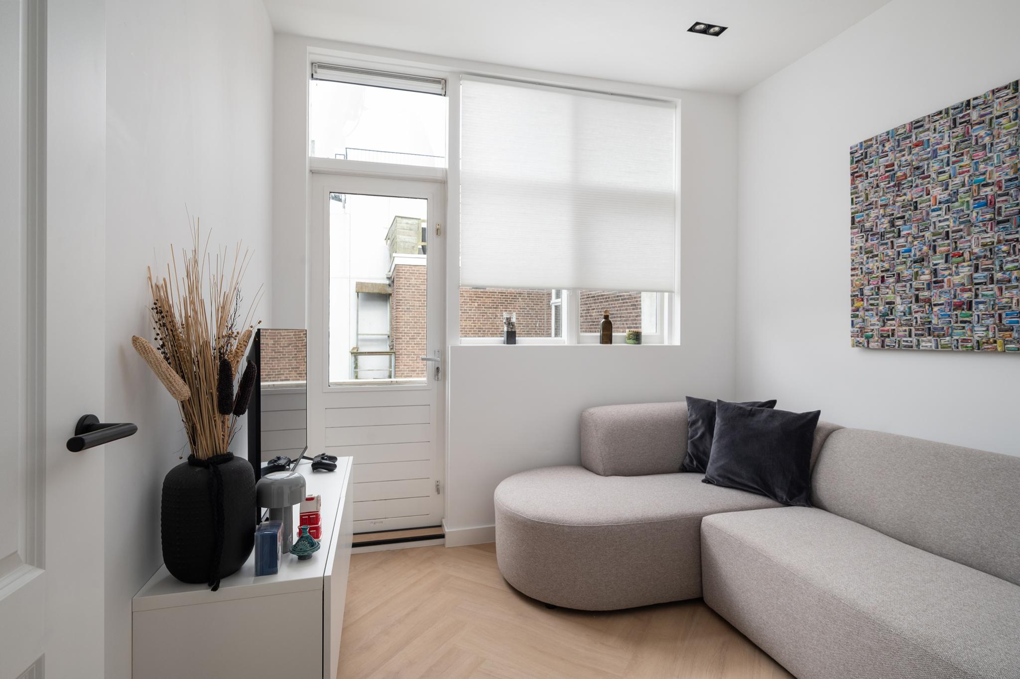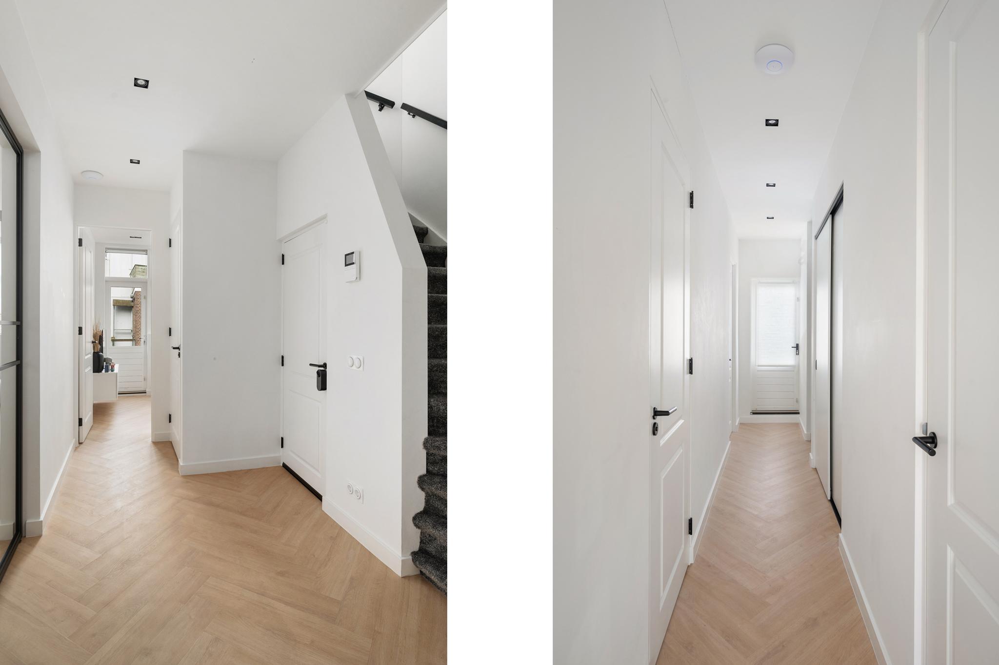De voordeur van de woning bevindt zich aan de straatzijde op de begane grond en beschikt over een eigen opgang, wat extra privacy en comfort biedt. Via een trap bereik je de tweede en derde verdieping, waar de woning is gesitueerd.