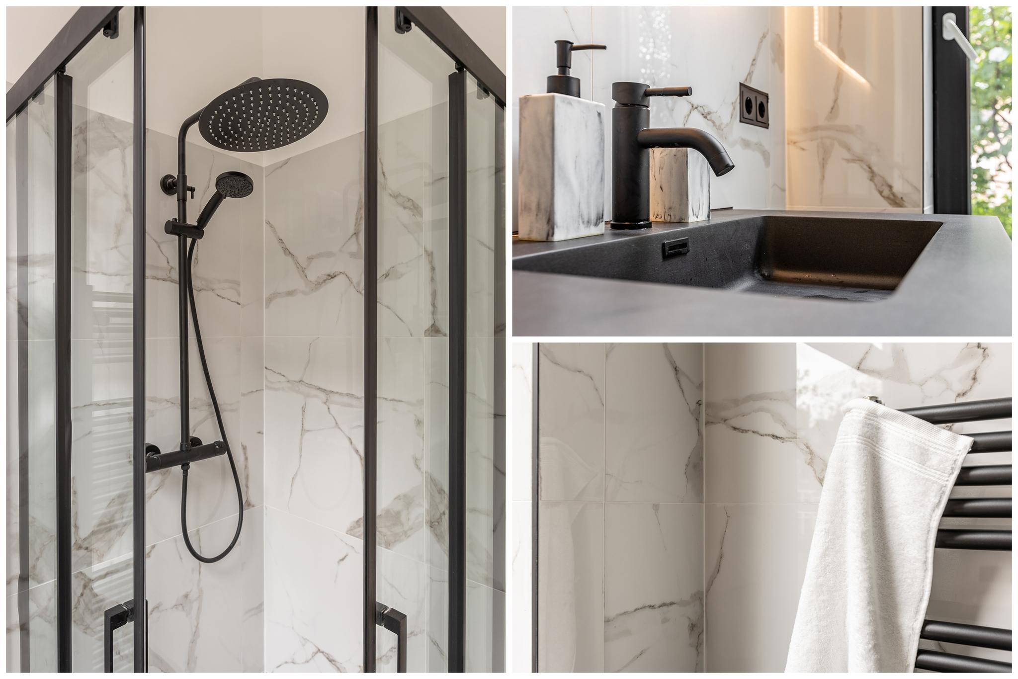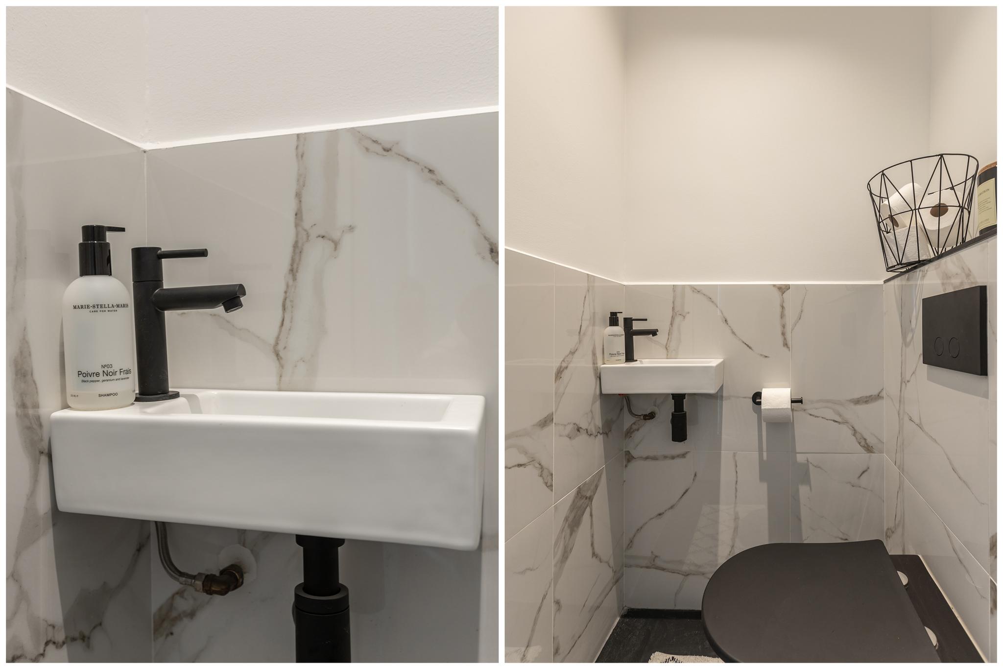 Op de overloop is een separaat toilet aanwezig met dezelfde marmerlook als in de badkamer en een vaste kast waar de cv-ketel in is gevestigd.